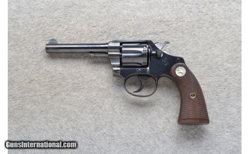 Description: This Colt Model Police Positive is a 6 shot double action revolver in .32 Long Colt Cal. It has a 4 inch barrel. A blade front and integral notch rear sight. The grip is a diamond checkered walnut with silver Colt horse logo medallions. The hammer spur is checkered. Serial Number 225844. This revolver is in overall very good condition and would make a great add to any collection. .32 Long Colt SOLD Chambers: 6 shot fluted cylinder. Metal Condition: Very good. Some very minor surface blemishes. Wood Condition: Very good. Minor wear. Bore Condition: Excellent. Barrels: 4 inch. Triggers: Single Action / Double Action Weight: 18 oz. Sights: Blade front. Integral notch rear. Item Location: Richfield, WI |