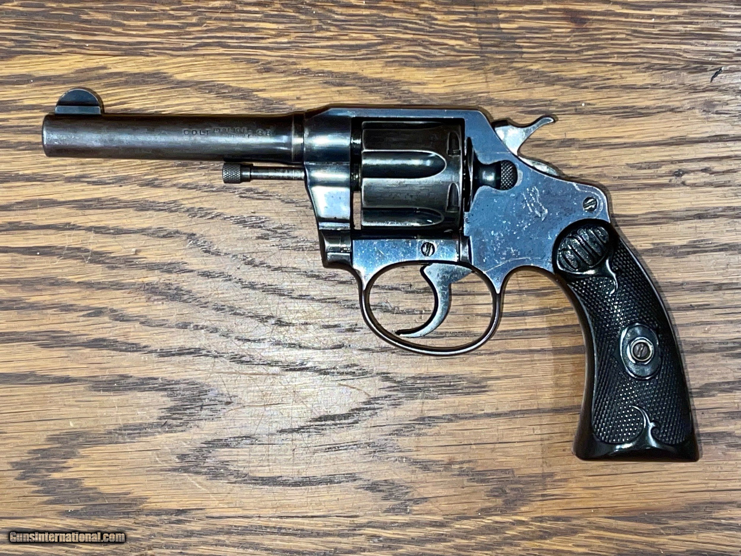 Description: Colt Police Positive .38 S&W "Erie Railroad Police" Markings A nice piece of history with this Colt pistol. It was issued to policemen of the Erie Railroad Company as marked on the butt. The pistol was made in 1916 and shows some wear and scratches in a few places but overall is in good condtion and functions perfectly. We have seen these "railroad guns" steadily increasing in value and becoming highly valuable. Everything on the gun is original with the grips being in noticably fine condition. Sourced from the collection of a well known local historian and collector, this weapon has been well maintained and cared for. ****WE ARE ALWAYS BUYING AND ARE VERY EXPERIENCED IN ESTATE SALES TOO. LET US KNOW HOW WE CAN HELP!**** PAYMENT: -Payment must be recieved within 10 days of purchase. 3% additional charge for credit card processing. SHIPPING & HANDLING: -$30 for handguns and $45 for long guns SHIPPING FIREARMS: -Firearms shipped to FFL dealer only -We will ship upon receipt of payment and signed legible copy of dealer's FFL via Fax, Mail or E-mail. SALES TAX: -Florida residents add 7.5% sales tax. PRODUCT: -We operate a gun shop which means that every item is for sale in our store and it may have already been sold when you contact us. NEW GUNS: -On new Firearms we may use file photos instead of the actual gun. CONTACT: -Contact me with any and all questions. We want you to be happy with your purchase. PHONE #: (904) 271-5270 STORE HOURS: Mon-Fri: 11p-6pm Sat: 9a-3p BUYER: -It is Buyer's responsibility to ensure that the weapon is LEGAL to own in your city/state. SOLD Curio/Relic: Yes Handgun Caliber: .38 S&W (.38 Colt New Police, .38 Super Police) Manufacturer: Colt |