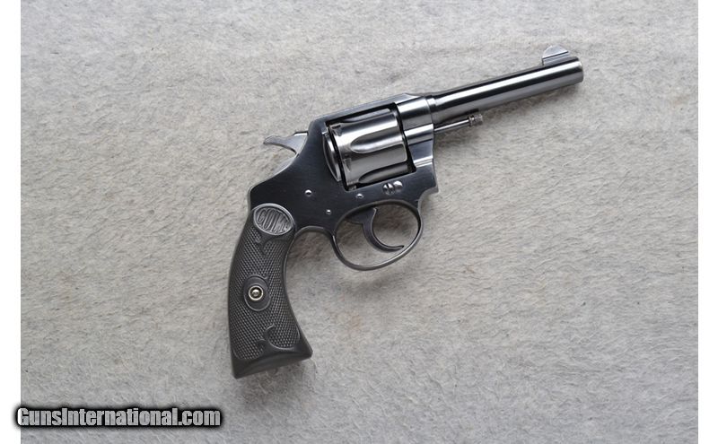 Description: This Colt Model Police Positive is a 6 shot double action revolver in .38 S&W Cal. It has a 4 inch barrel. A blade front sight and an integral notch rear sight. The grip is checkered with Colt at the top. The hammer spur is checkered. S/N 159905. .38 S&W SOLD Chambers: 6 shot fluted cylinder. Metal Condition: Excellent. Minor blue wear at the bore. Bore Condition: Very good. Barrels: 4 inch. Triggers: Single Action / Double Action Weight: 22 oz. Sights: Blade front. Integral notch rear. Item Location: Bristol, TN |