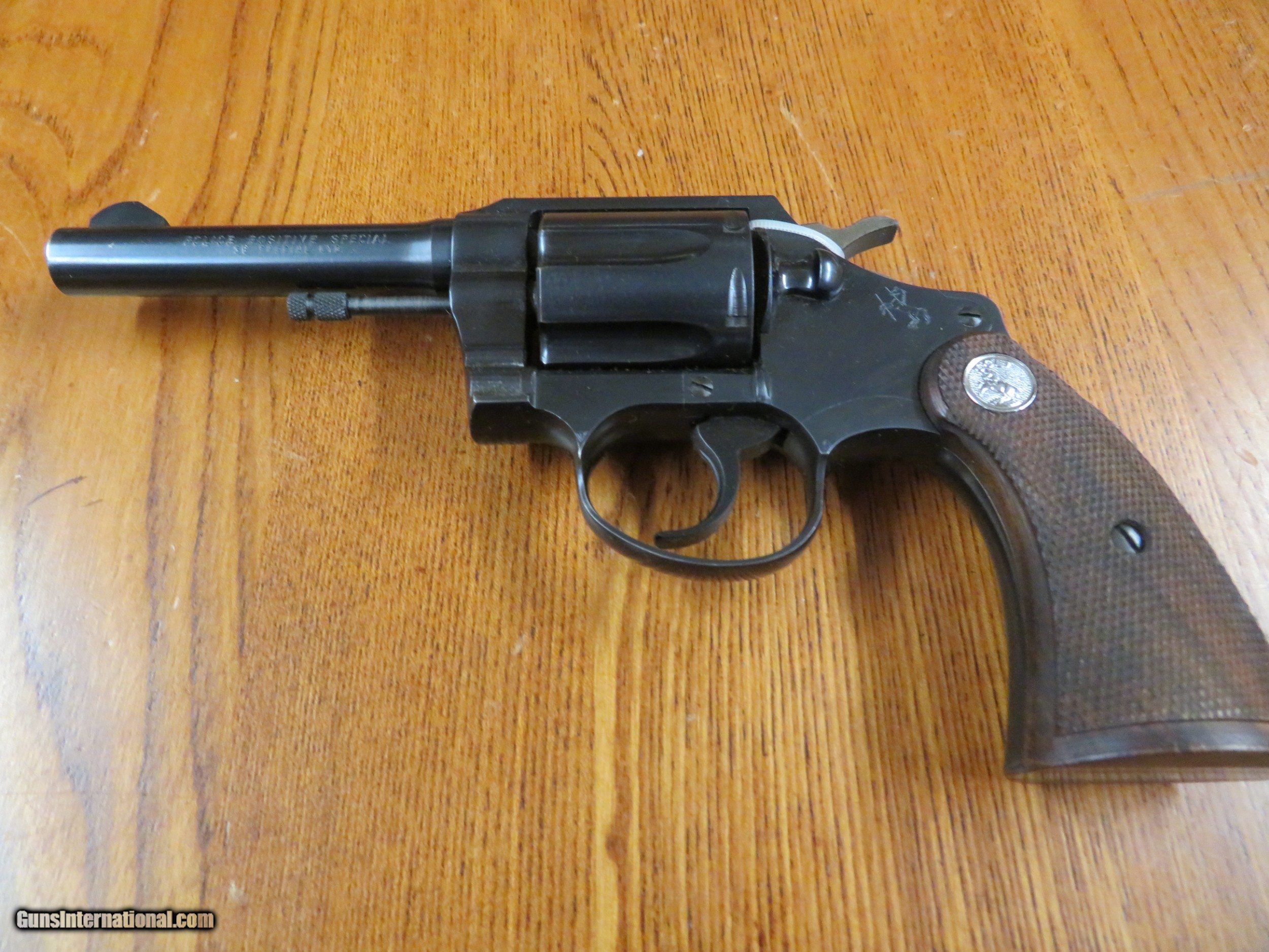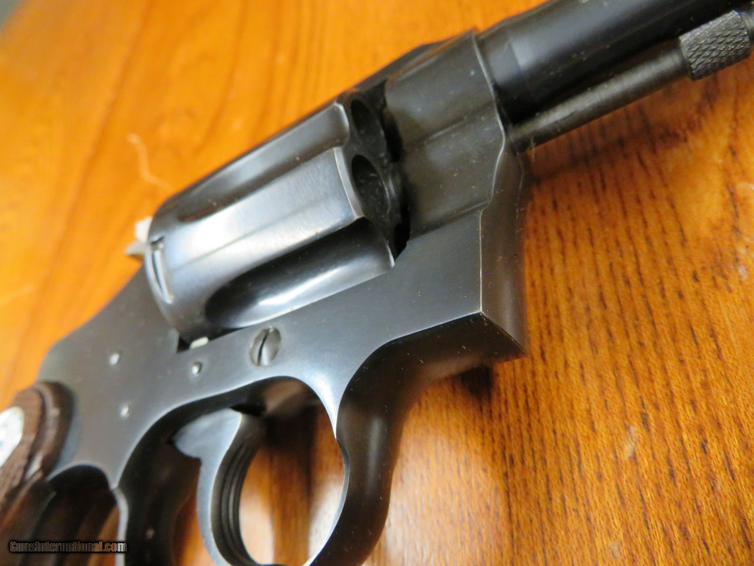 Description: GREAT LITTLE COLT REVOLVER 38 SPECIAL POLICE POSITIVE UN FIRED 1964 WEAPON SOLD Handgun Caliber: .38 Special Manufacturer: COLT Model: POLICE POSITIVE Barrel Length: 4 Bore: MINT Chambers: 6 Condition: UNFIRED Metal Condition: EXCELLENT Wood Condition: MINT Bore Condition: MINT Action: DA Stock: WOOD |