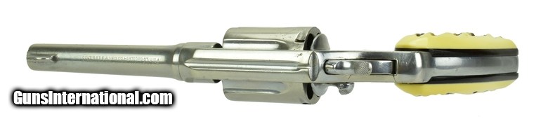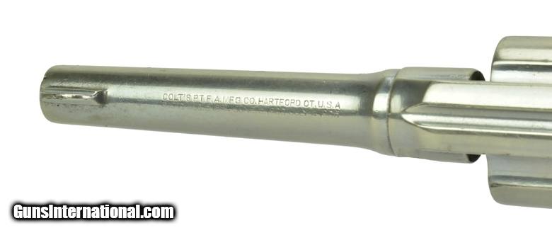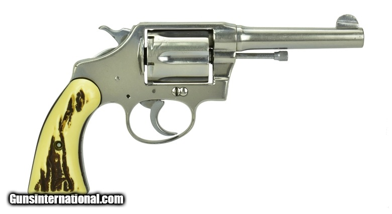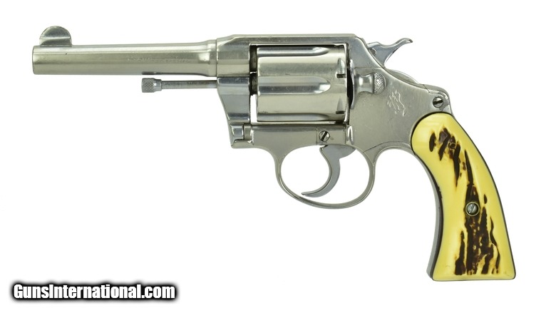 Description: Colt Police Positive .38 Special caliber revolver. Pre-war revolver. Has been chrome plated and has faux stag grips. Bore and action are good. A vintage Colt revolver.