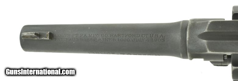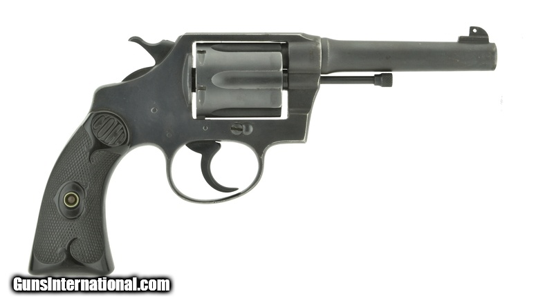 Colt Police Positive .38 Special caliber revolver. Manufactured in 1912, has been refinished. Bore has strong rifling with some frosting. Front sight is a replacement. 4” barrel. Lock up is tight. Good overall condition.