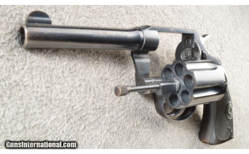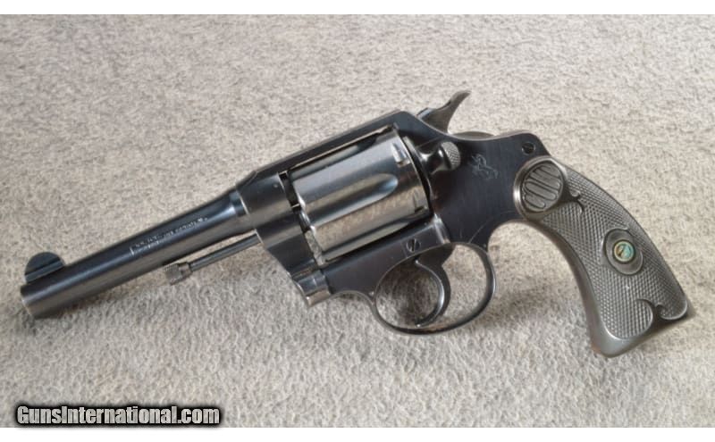 Description: Colt Police Positive chambered in .38 S&W Special with a 4" barrel. This is the 'First Issue' in with the "July 4th 1905 Patent Date" on the top of the barrel. The hard rubber grips are in excellent condition with no cracks or chips. Overall, the non-original condition rates at 70%-75%. Based on the serial number "255143" it was made in 1922 (per the Colt site). .38 Special SOLD Chambers: 6 shot revolver. Metal Condition: "70%-75%, Refinished with scattered surface pitting, finish thinning, edge wear and patina. Bore Condition: Very strong bright bore. Barrels: 4" barrel. Triggers: SA/DA. Weight: 1.5 lbs Sights: Fixed. Item Location: Owatonna, MN |