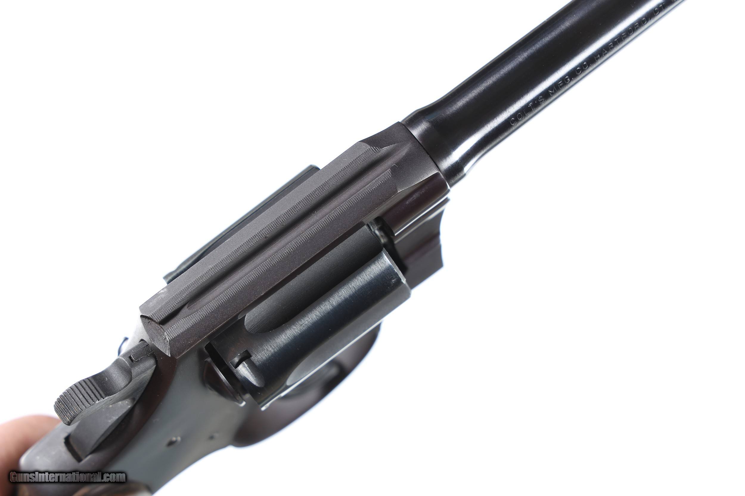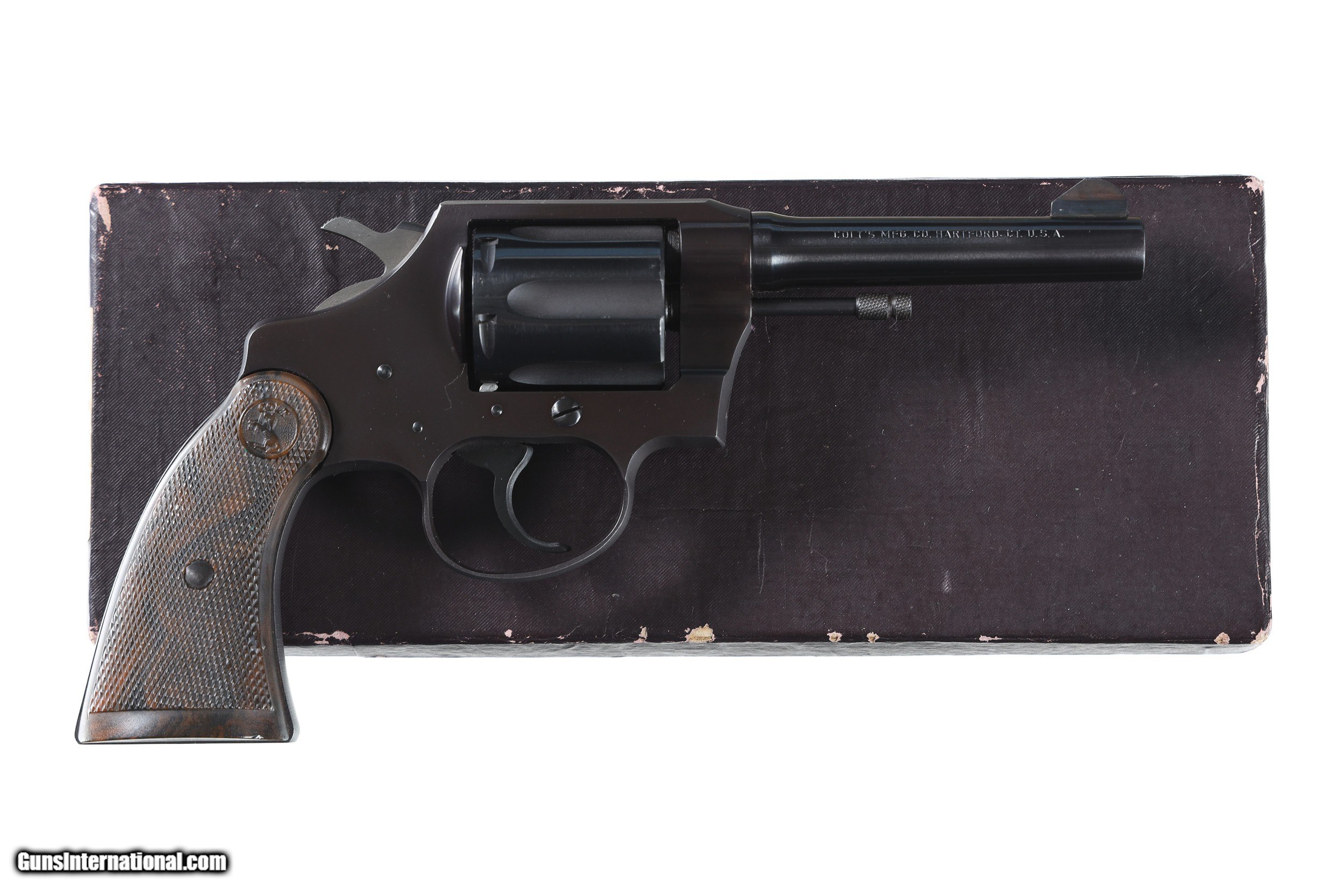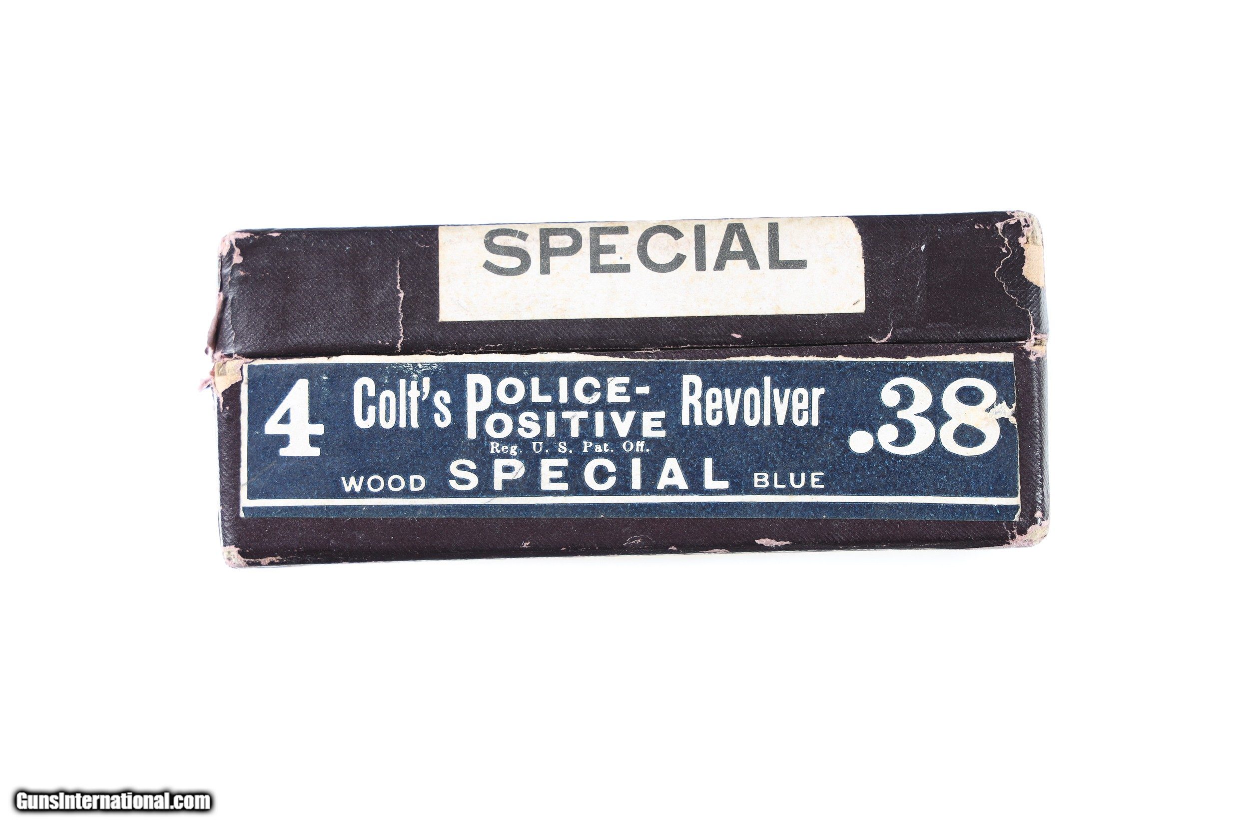 Description: Minty with plastic Colt wood grips. Includes correct factory box hand numbered to gun. Free Shipping, No Credit Card Fees! SOLD Curio/Relic: Yes Manufacturer: Colt Model: Police Positive Serial Number: 578300 Barrel Length: 4 Caliber Info: .38 spl |