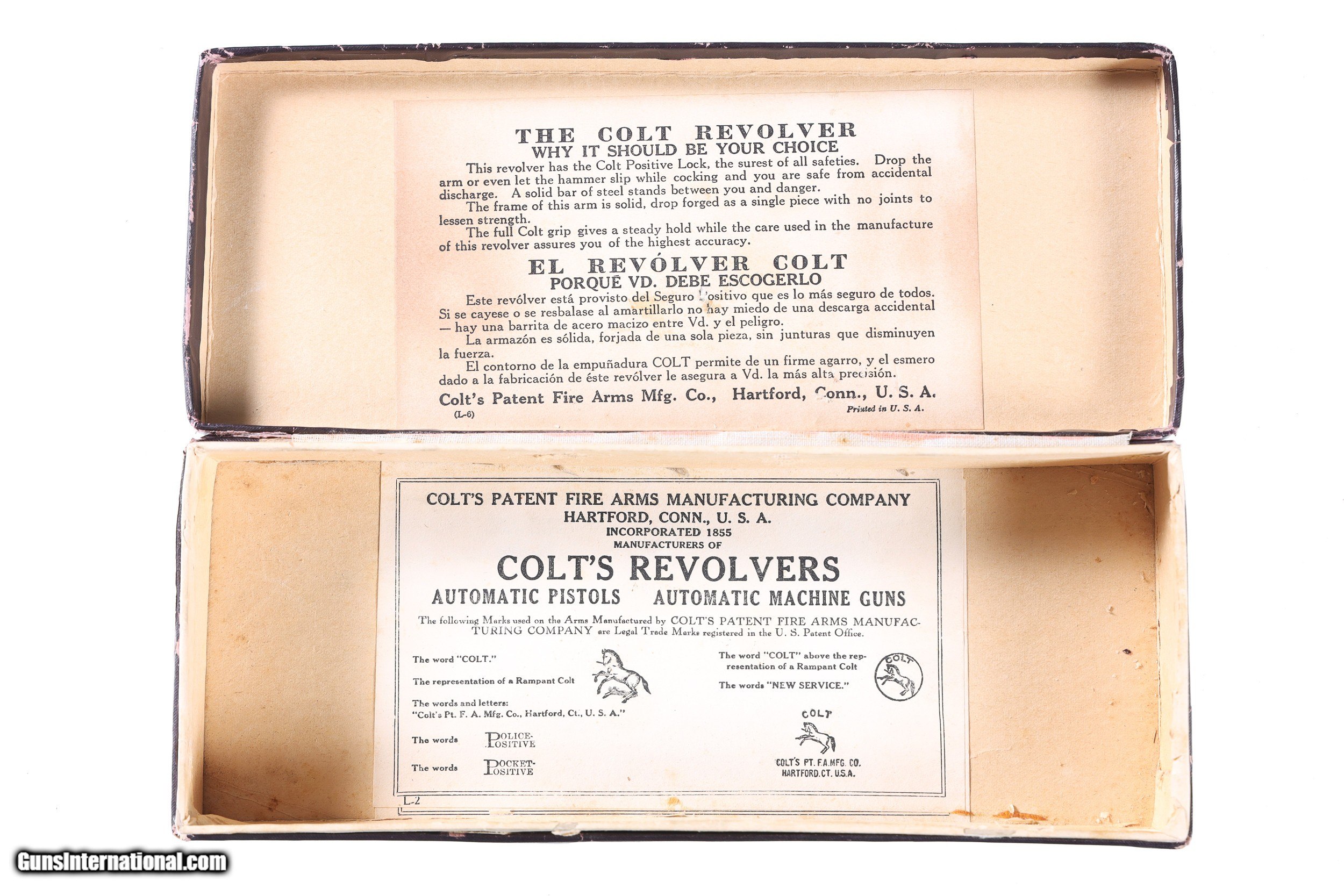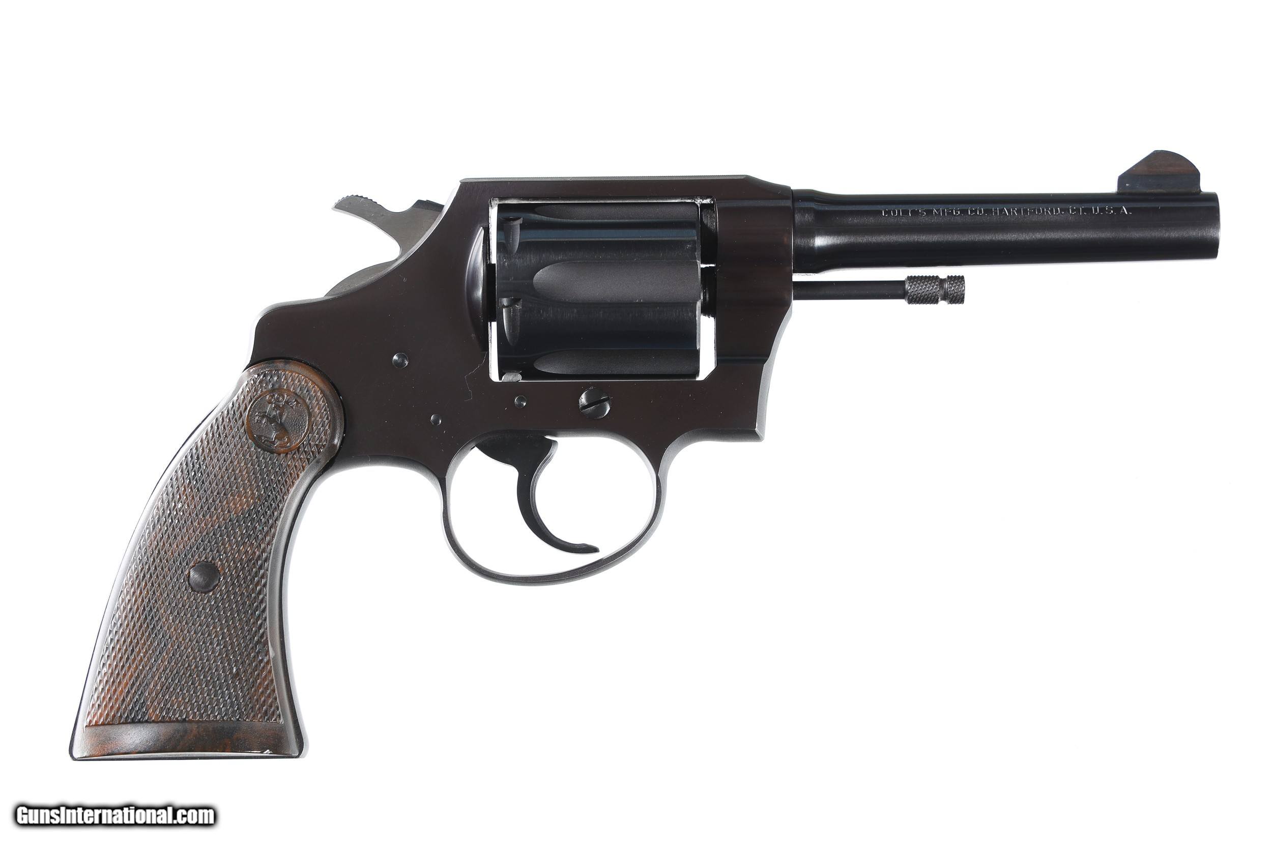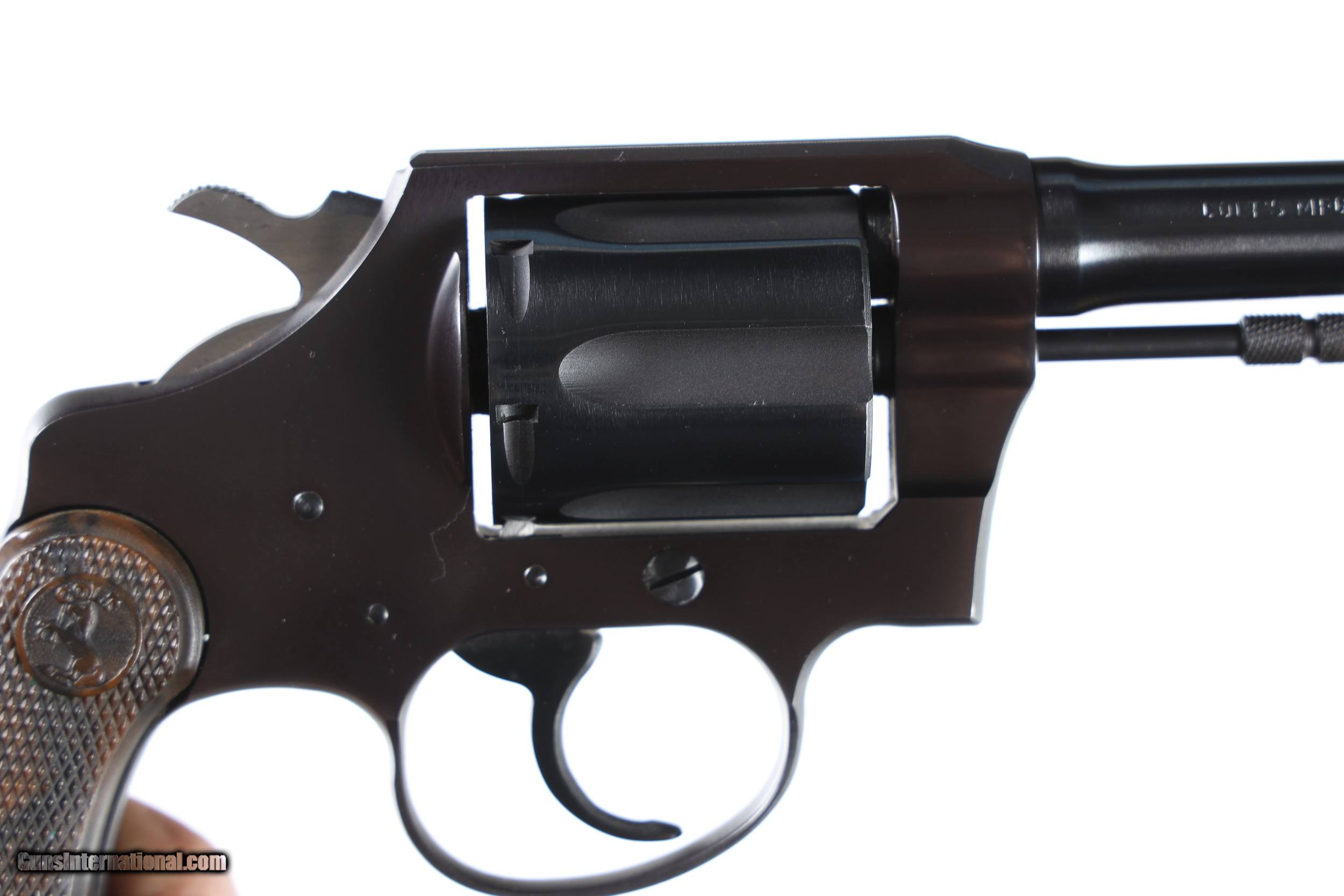 Description: Minty with plastic Colt wood grips. Includes correct factory box hand numbered to gun. Free Shipping, No Credit Card Fees! SOLD Curio/Relic: Yes Manufacturer: Colt Model: Police Positive Serial Number: 578300 Barrel Length: 4 Caliber Info: .38 spl |