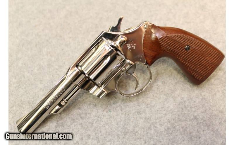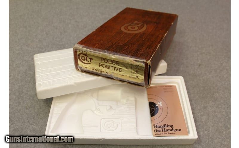 Description: This Colt Police Positive chambered in .38 SPL features, steel construction made in 1977, nickel finish, and Colt checkered wood grips. The Police Positive is in overall excellent shape besides the two minor scratches behind the rampant Colt on the left side frame. .38 Special SOLD Metal Condition: Excellent Wood Condition: Excellent Bore Condition: Bright Barrels: 4 Inches Weight: 1.5 lbs. Item Location: Hoffman Estates, IL |