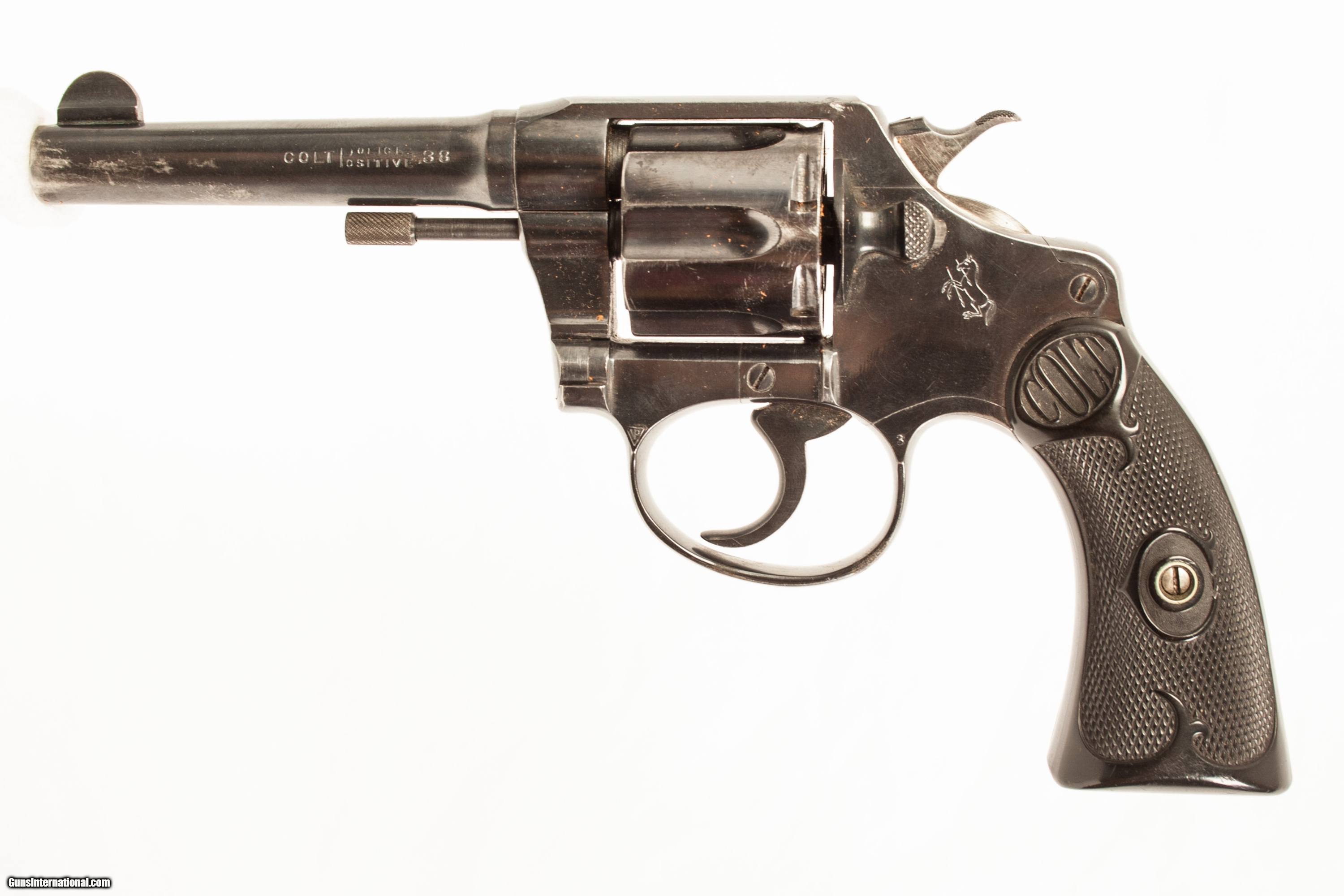 COLT POLICE POSTITIVE CHAMBERED IN 38SPL WITH A 4 INCH BARREL BRIGHT BORE GOOD GROOVES AND A LEATHER HOLSTER. THIS GUN IS IN EXCELLENT CONDITION AND IS COVERED BY DURY'S LIFETIME WARRANTY.
