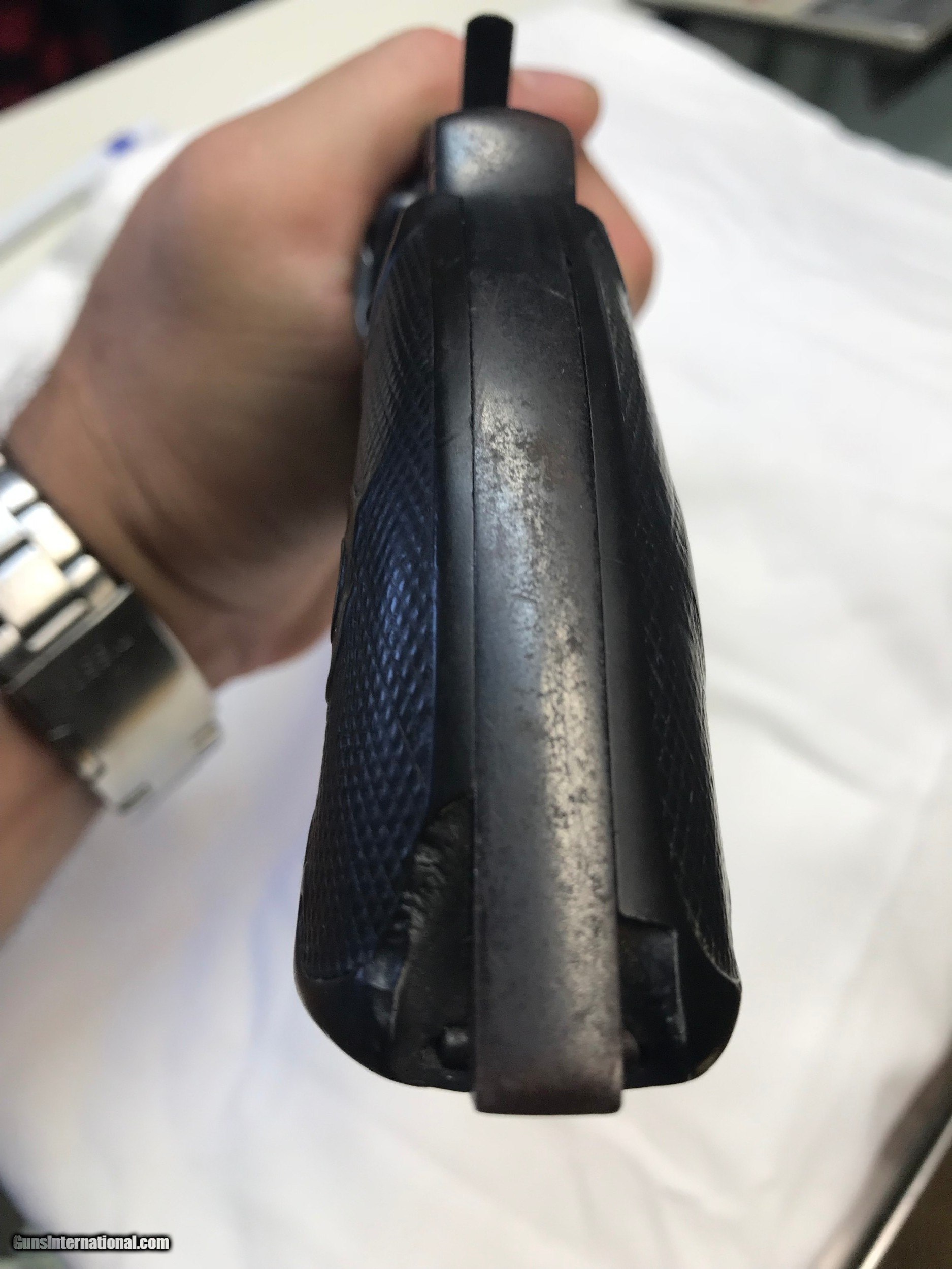 Description: ***SOLD*** We are offering a Colt Police Positive. This is the ‘First Issue’ in with the “July 4th 1905 Patent Date” on the top of the barrel and is in.38 New Police / .38 S&W. The hard rubber grips have two chips in the base as seen in the photos. There is some ware on the muzzle and some very light pitting (also visible in photos). Based on the serial number - 137046 - it was made in 1922 (per the Colt site). The butt is Marked “M.P.D. #7” presumably from the Masphee (Massachusetts) police department, but we do not have the provenance to support it. This pistol is NOT available in Mass unless you are a C&R FFL holder. Mike’s Gun Shop, Inc. accepts Visa, M/C, Discover, money orders, personal checks, and cash (for local pick up). Prices reflect a cash discount - 3% will be added for the use of credit/debit cards. Personal checks are held until cleared. Please note we do not accept any form of payment from Bank Of America. The buyer will have 7 days to forward payment and FFL from the ’s close. Buyer to pay $35 (handguns) or $10 + actual shipping and insurance (long guns). Know your state and local laws - please be sure this firearm is lawful to purchase! Items typically ship within 48 hours of receipt of payment. Sales tax will be collected for sales in Massachusetts. As we do have a retail storefront, listings may be removed prior to expiration. Please feel free to email us should you have any questions – our retail shop is open three days a week, but we regularly check email. Thanks for viewing our listing! Mike’s Gun Shop has been family-owned since 1968. We make every effort to post honest and accurate descriptions, and while new to Guns International, we are an A+ rated seller on Gun with over 750 ratings. Buy with confidence but know that used items are sold as-is with NO RETURNS SOLD Curio/Relic: Yes Manufacturer: Colt Model: Police Positive Serial Number: 137046 Caliber Info: .38SW / .38 New Police |