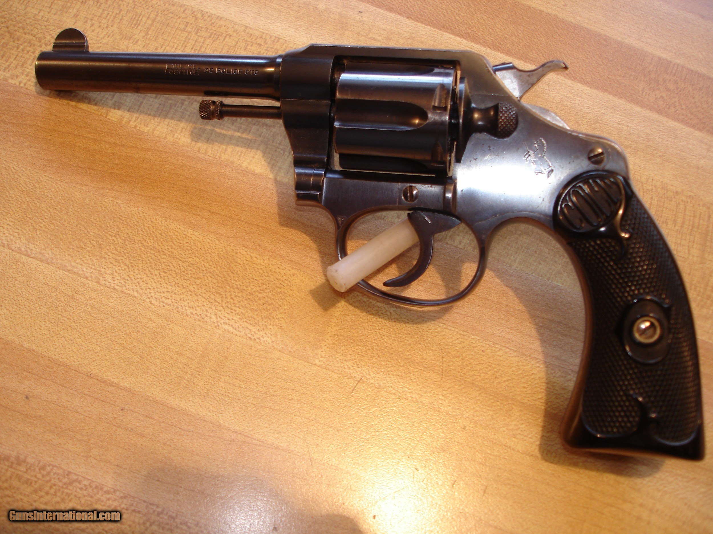 Description: Out of my Collection I have for sale a Beautful Little Colt Police Positive Pre-War Revolver. MFG in 1921 .32 Colt Police Cal. (.32 S&W Long) Near Mint little Colt 4" BBl. Mint Bore Tight lock up. Fixed Sights. Nice deep Bright Blue. SER#. 170338 What a great little Pre- War Colt revolver. Great for your Collection or to use and Enjoy. Wounderful Black Checkered Hard Rubber Stocks.Weight 18.2 oz. Price $875.00 Shipping is $35.00 SOLD! 4-21-22 SOLD Curio/Relic: Yes |