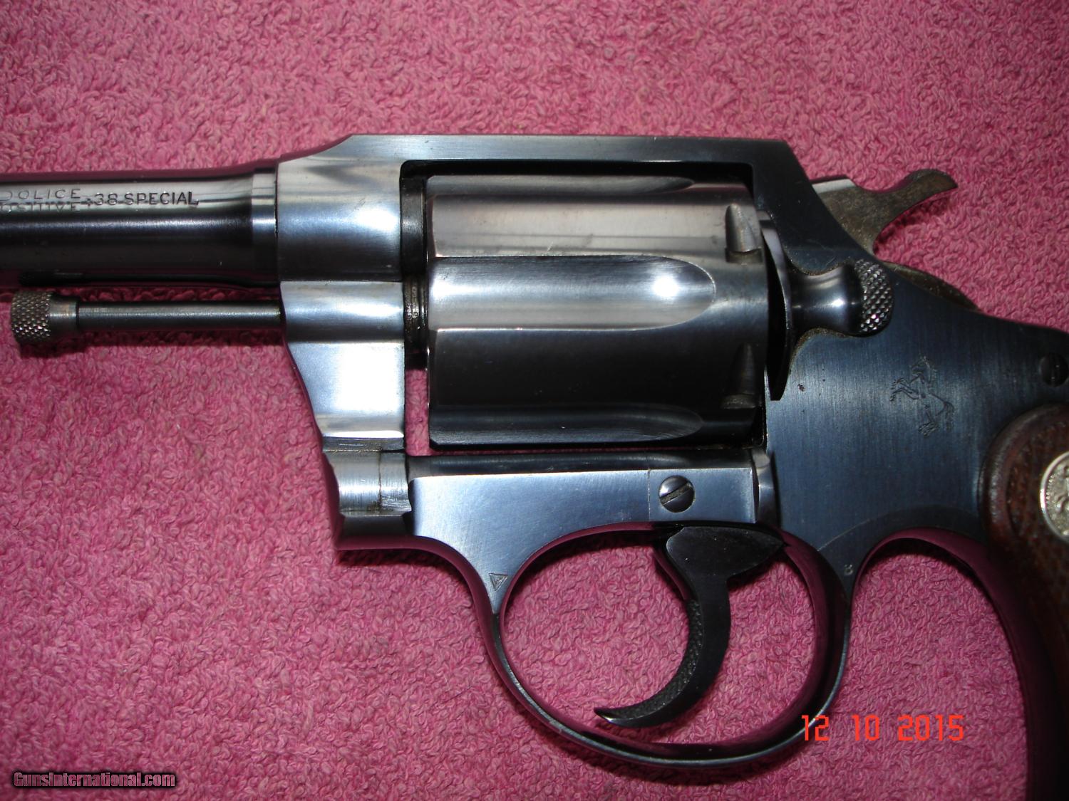 Description: Out of my collection I have for sale a Pre-War Colt Police Positive Special D/A Revolver. This little Gem was MFG in 1929 it has a 4" BBl. with a mirror bore. .38Special caliber, tight lock up fired very little. Beautiful Blue I would rate a good 98-99% over all. Checkered trigger, Square Butt with Checkered Walnut Grips and Silver Medalions. Weight is 22.4oz. Fixed sights, Near Mint Over all Original condition. SER#.381340. These Pre-war Colts were all hand fitted by real craftsmen. A great addition to your collection. It even comes with the pictured Vintage Colt patch. Ask about our free Layaway's $25.00 Shipping & Insurance to your FFL, C&R is also fine for this Colt. SOLD Curio/Relic: Yes |