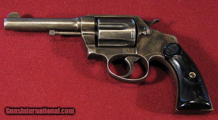 Description: Police Positive Special in .32-20 This is a 1st Issue gun with the last patent date of 1905. S.N. 164,9xx Manufactured in 1919. Smooth top strap and trigger. Small butt. Chips out of both grips at the butt. Some pitting in bore. Blue thin and turning an even patina. This gun has seen a lot of service in its 91 years but remains mechanically functional SOLD |