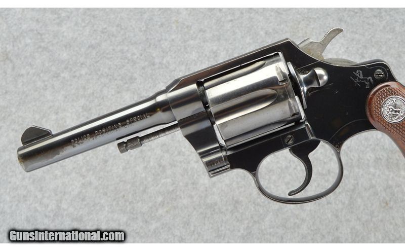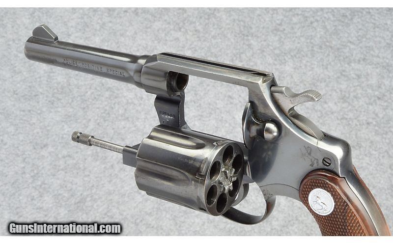 Description: Wear on the carry points, light scratches and patches of oxidation.1956 vintage Colt Positive Police Special shows a generous amount of original finish. Positive timing with solid lock-up. .38 Special SOLD Metal Condition: Blued Wood Condition: Checkered Walnut with Colt Medallion Bore Condition: "Bright, Sharp Barrels: 4 Inch Triggers: DA/SA Sights: "Notched Frame, Blade Front Item Location: Buda, TX |