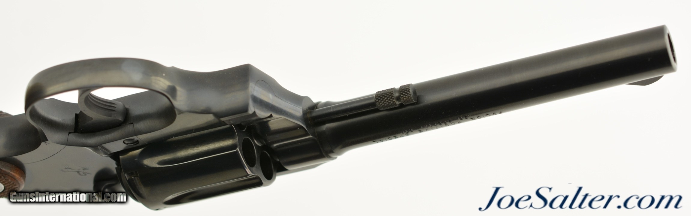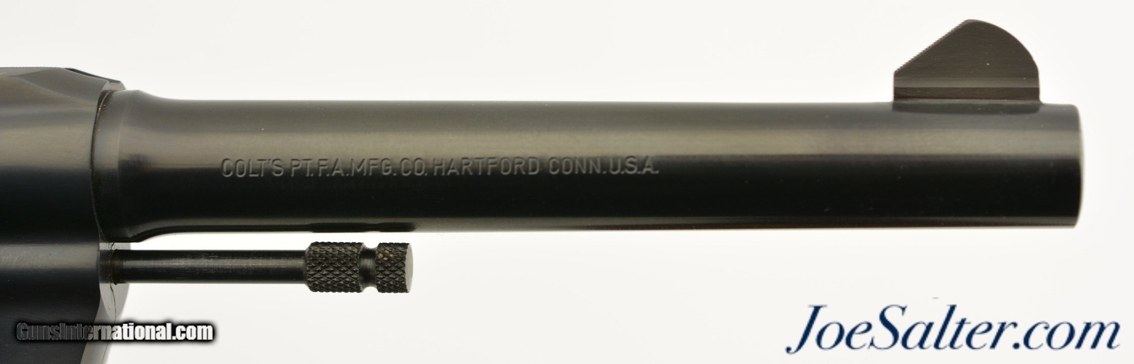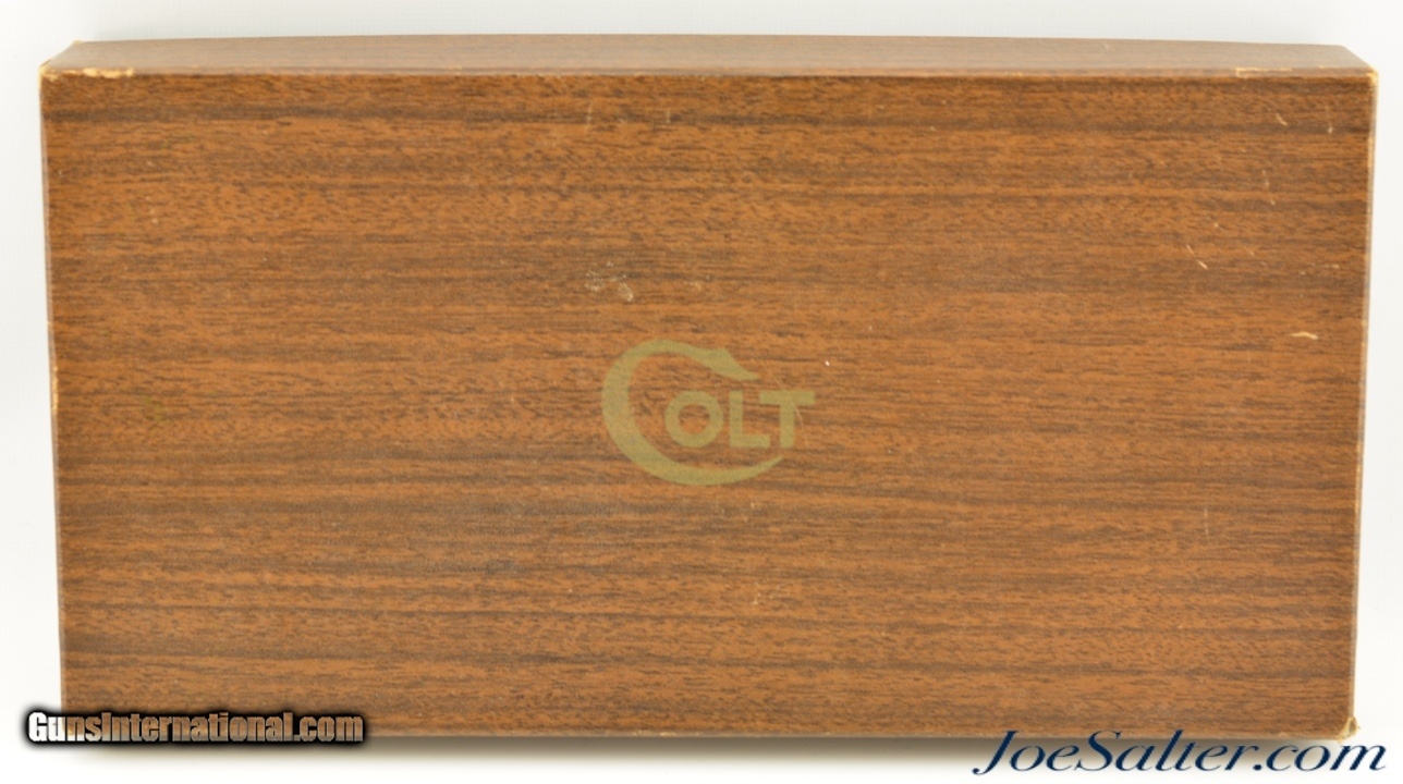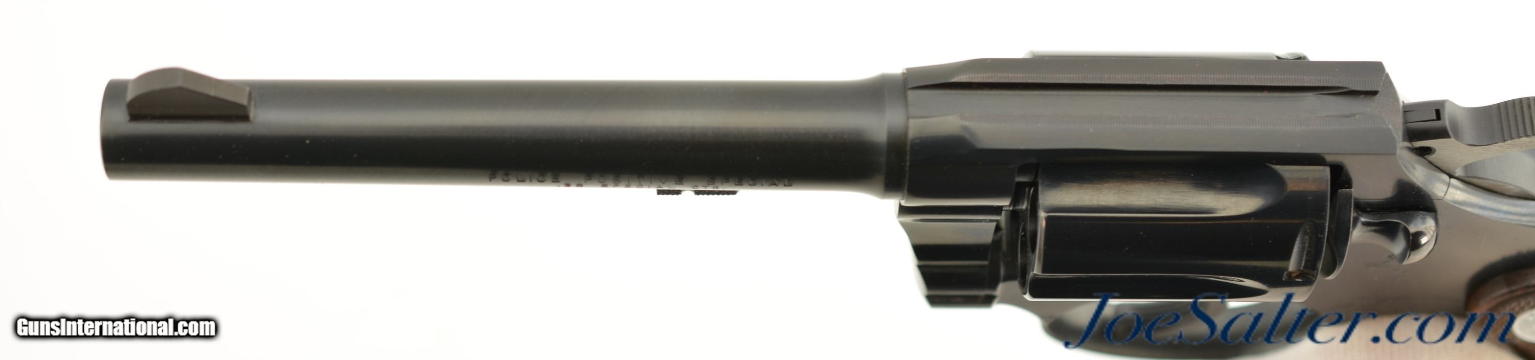 Description: Serial #928200, .38 Special, 5" barrel with an excellent, bright bore. This is a 1966-made revolver that is in virtually unused condition, retaining practically all of the original blue finish, save for traces of a turn-ring on the cylinder. The checkered walnut Colt medallion grips are also in excellent, almost unused condition without any noticeable handling marks, nor any flattening of the points. Both panels are marked with the last three digits of the serial number on the inside. The revolver is housed in the original two-piece Colt woodgrain box with intact end label, and numbered to the gun on the bottom. This is a splendid example of a late ‘60s Police Positive Special, and is in excellent condition overall. FFL or C&R; SOLD Curio/Relic: Yes |