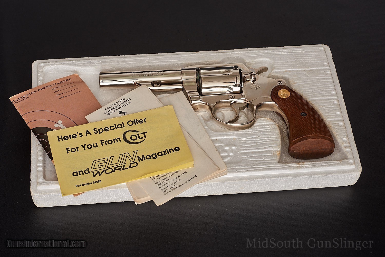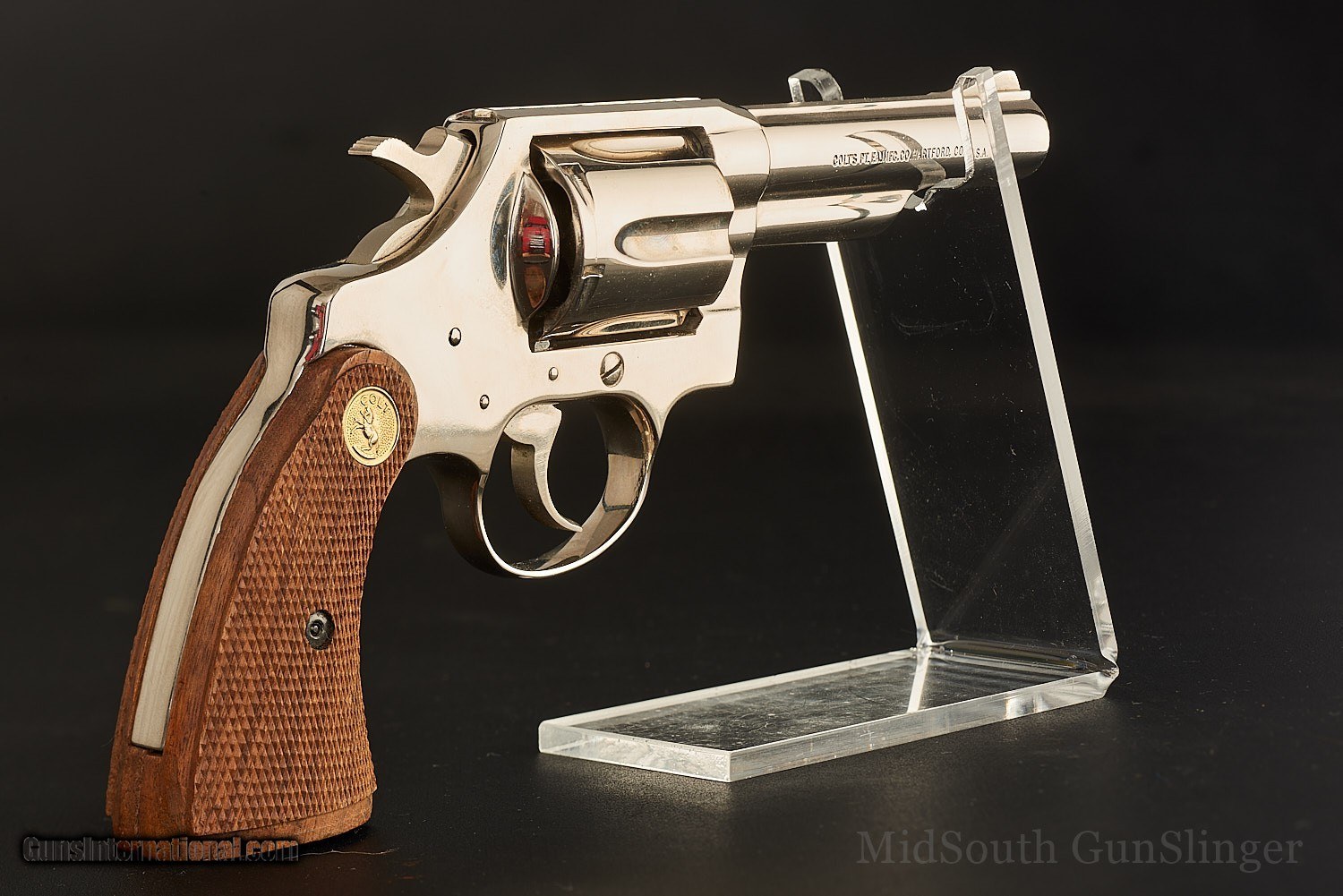 Description: Presented for sale, you will find a nickel Colt Police Positive Special chambered for 38 Special Ammunition with a 4” barrel. This Colt Police Positive Special built in 1979. The action is as smooth as glass and the trigger is nice. In my opinion, this Colt Police Positive Special warrants rates NRA Excellent. The images will illustrate this revolver much better than I can describe. I can tell you, it is gorgeous. It is so pretty your wife will like it. WE do have the original box; however, it has seen better days. Included in the listing is the pictured Colt Police Positive Special, OEM box and everything illustrated. Please tell us if you see and error in this listing or any other listing of ours. You will not hurt our feelings. We are human, according to some, and are capable of making a mistake. This revolver will ship to the lower 48 for $30. Thank you for looking. Our phones are answered 24/7 by a human that speaks English. SOLD Handgun Caliber: .38 Special Manufacturer: Colt Model: Police Positive Special Serial Number: 05734R Barrel Length: 4 Condition: NRA Excellent Metal Condition: See Images Wood Condition: See Images Bore Condition: As New Action: SA/DA Finish: Nickel Manufacture Date: 1979 Extras: OEM Box Item Location: Little Rock, Arkansas |