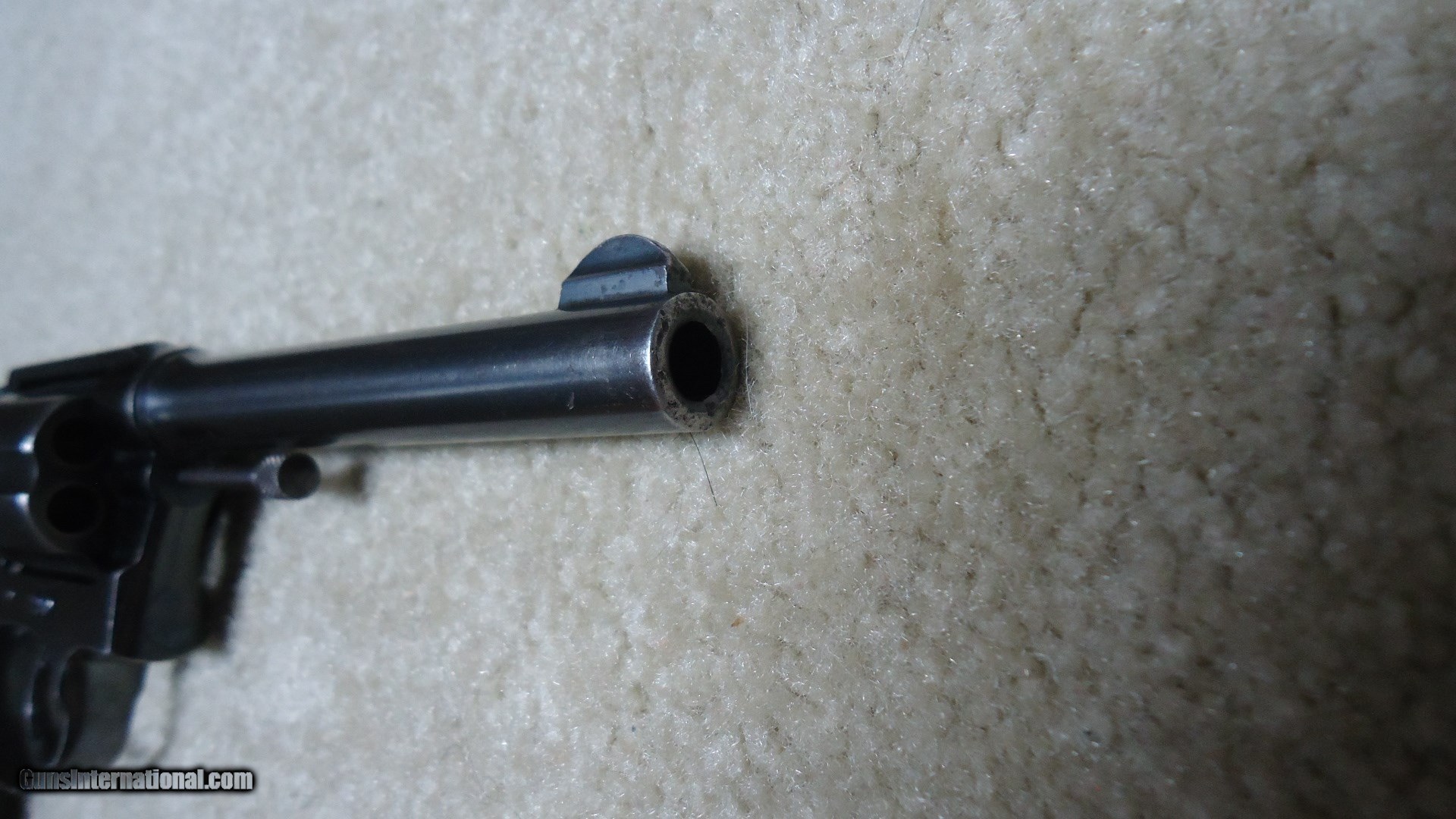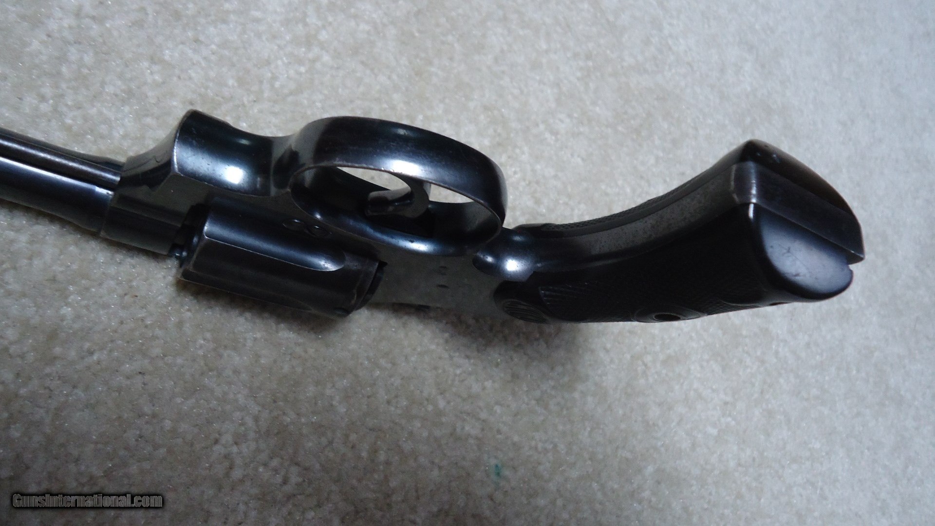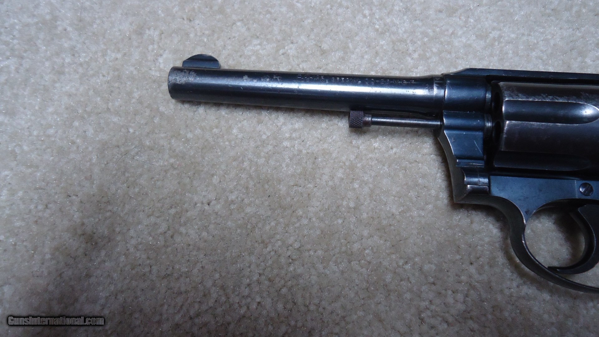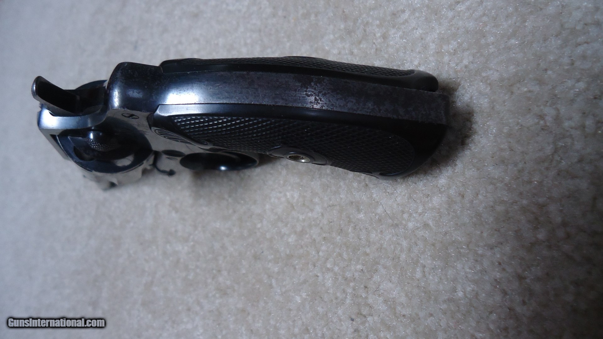 Description: POLICE POSITIVE SPECIAL IN SCARCE .32-20 CALIBER, LESS COMMON 5” BARREL, #284XXX, MADE 1924. Good example with excellent bore and very tight action, most of these were produced with 4" barrels. Retains most of the original high polish Colt blue with a small spot of corrosion at the muzzle on the left side, a little around the sharp edge of one cylinder flute (as seen in the photoS), and some surface spotting on the lower part of the back strap. Retains nice fire blue on the back of the hammer and on the trigger, exc. markings and grips with one very small chip on the right bottom rear corner. Lots of useful life left in this one. SOLD Curio/Relic: Yes Rifle Caliber: .32-20 Winchester Manufacturer: COLT Model: POLICE POSITIVE SPECIAL Serial Number: 284XXX Barrel Length: 5 Condition: FINE Bore Condition: EXC. |