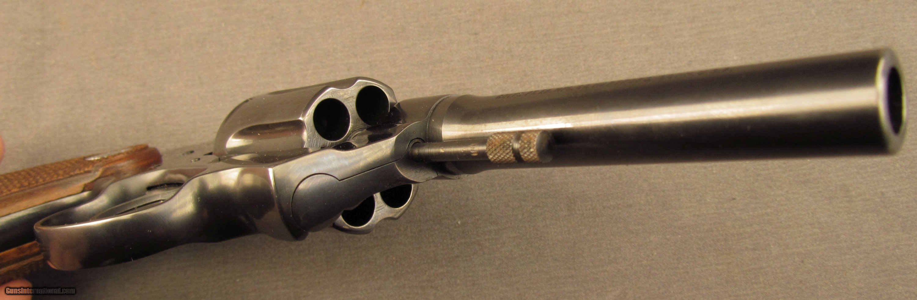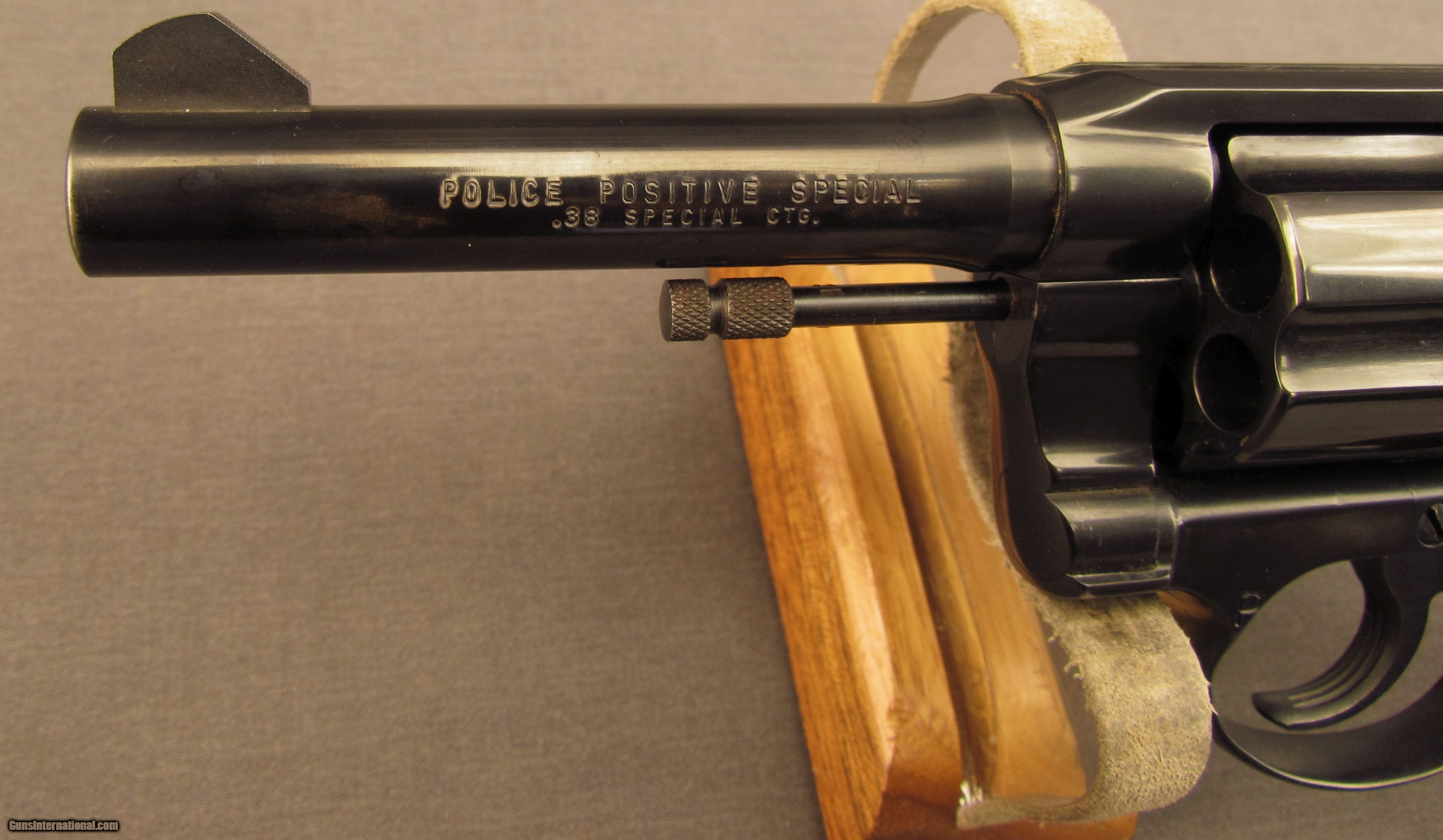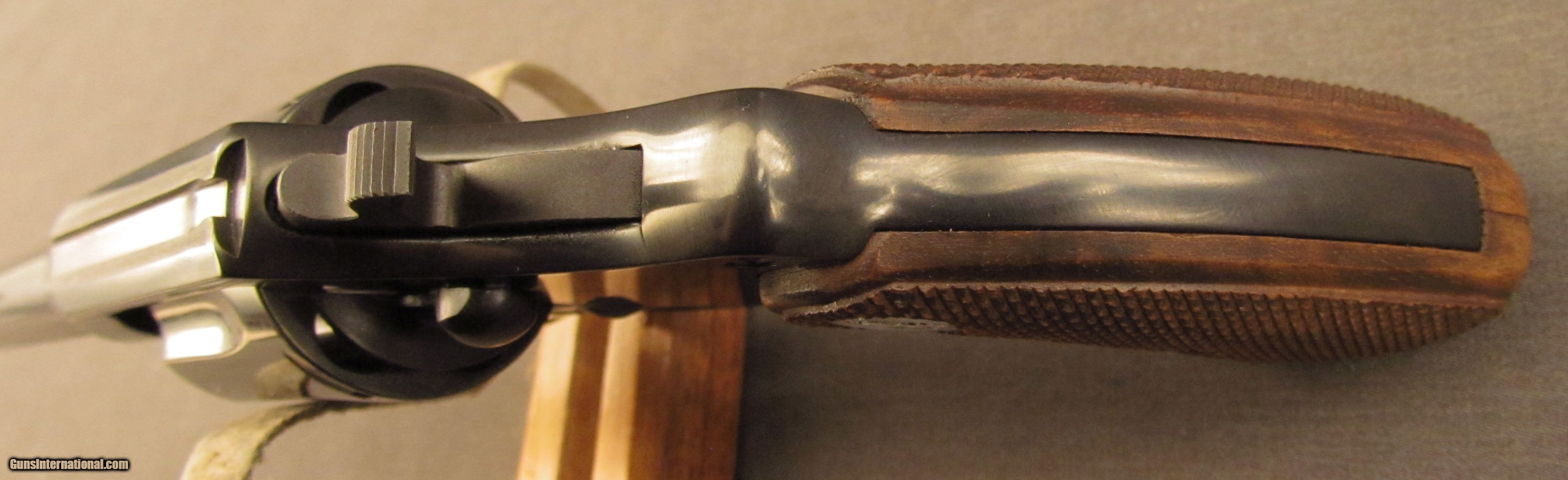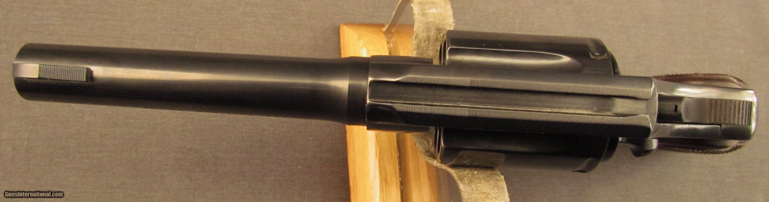 Description: Serial #A55433, .38 Special, 4” barrel with an excellent, bright bore. This is a 1970-made revolver that has retained 95-98% of the original blue finish with only some faint traces of silvering along a few of the high edges, a faint turn-ring along the cylinder, and a few small spots of cold blue on the left side of the barrel where the blue wore through. The checkered walnut medallion grips are in excellent shape with only some hints of use and very little flattening of the points. The lock-up is rock solid and the action functions flawlessly. This is an excellent small frame, double-action Colt revolver in excellent condition overall. FFL SOLD Manufacturer: Colt Model: Police Positive Serial Number: A55433 Caliber Info: .38 Spl Gauge Info: .38 Spl |