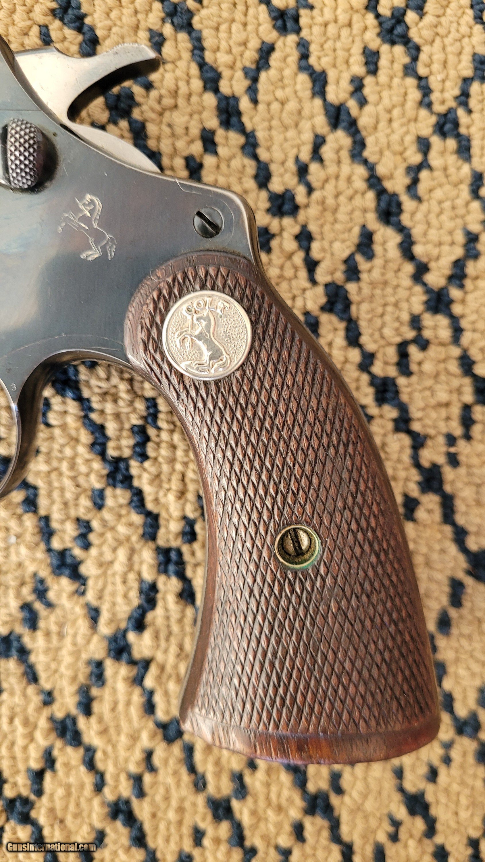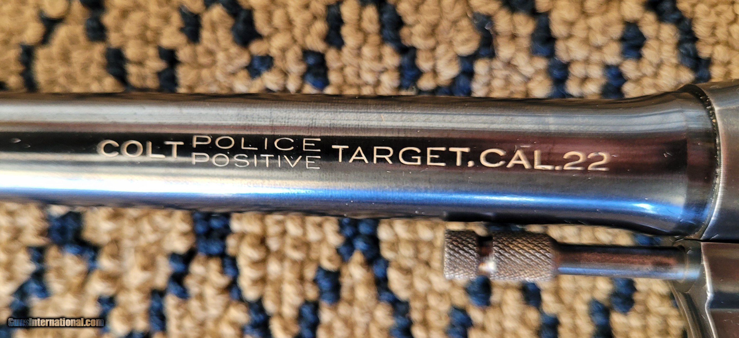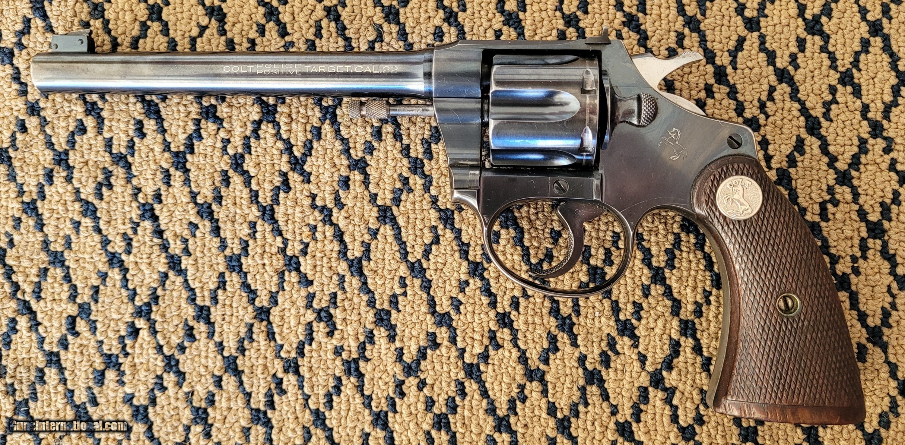 Description: Colt Police Positive Target .22 LR, made in 1931. This revolver sports a 6 inch barrel with adjustable front and rear sights ( see the pictures) that is well balanced for accurate rapid fire shooting. Blued steel with crosscut wood grips. Colt stamping on frame and emblems on grips are sharp and clear. Shipping and Insurance to your FFL is a flat $45. If you do not have a preferred FFL, then I can help you find one that will receive the shipment and process the transfer of ownership based on your zipcode. If you have any questions about this firearm, call, text, or email me . I always enjoy chatting with fellow shooting and hunting enthusiasts. Curio/Relic: Yes Handgun Caliber: .22 Long Rifle Manufacturer: Colt Model: Police Positive Target Serial Number: 39115 Barrel Length: 6 inch Chambers: 6 shot Condition: Very good Metal Condition: Excellent Wood Condition: Excellent Bore Condition: Excellent Action: SA / DA Finish: Blued Sights: Adjustable Manufacture Date: 1931 Item Location: Illinois Grips: Wood, crosscut Price: $895.00 Shipping: $45.00 Contact Seller |