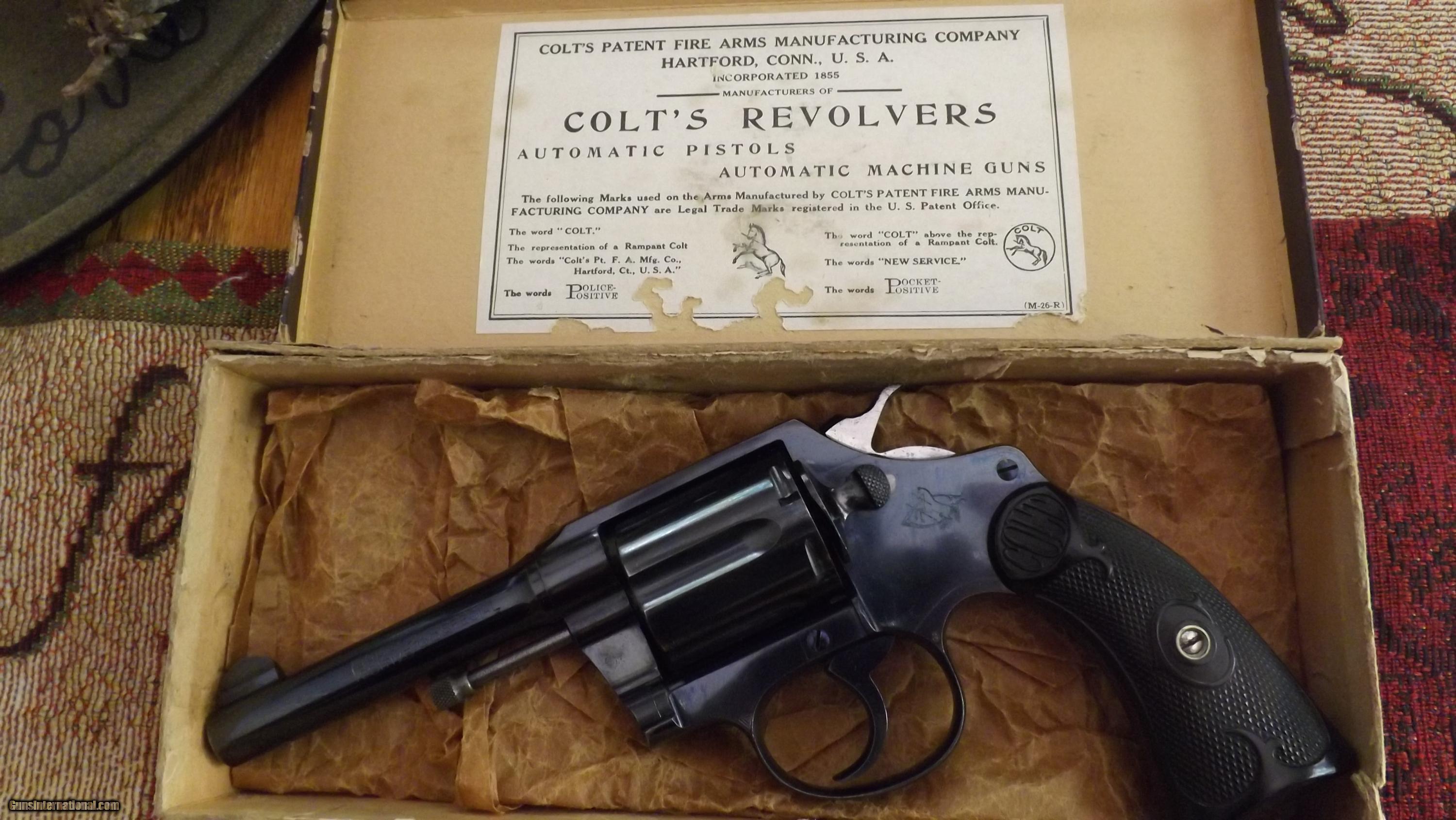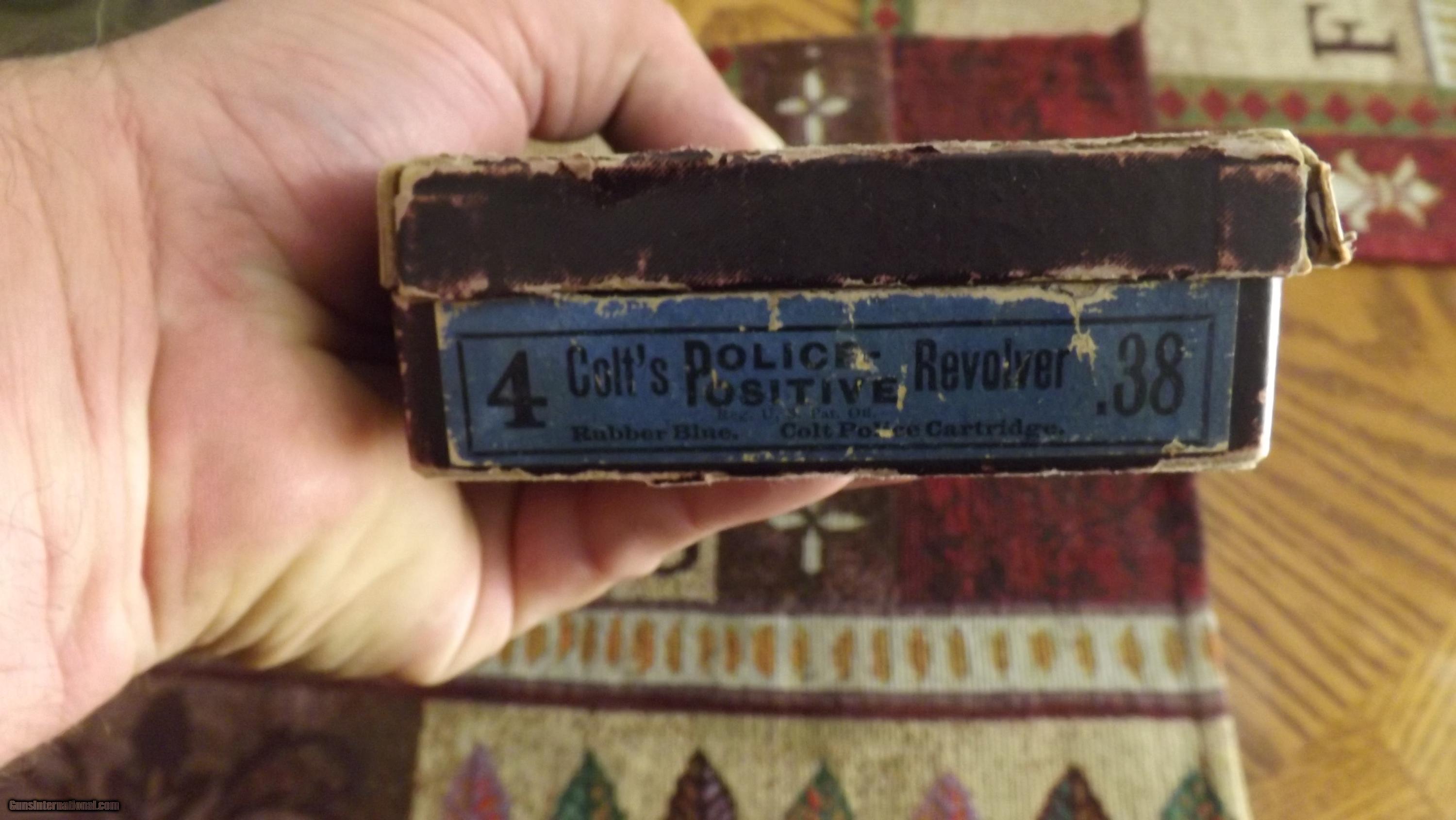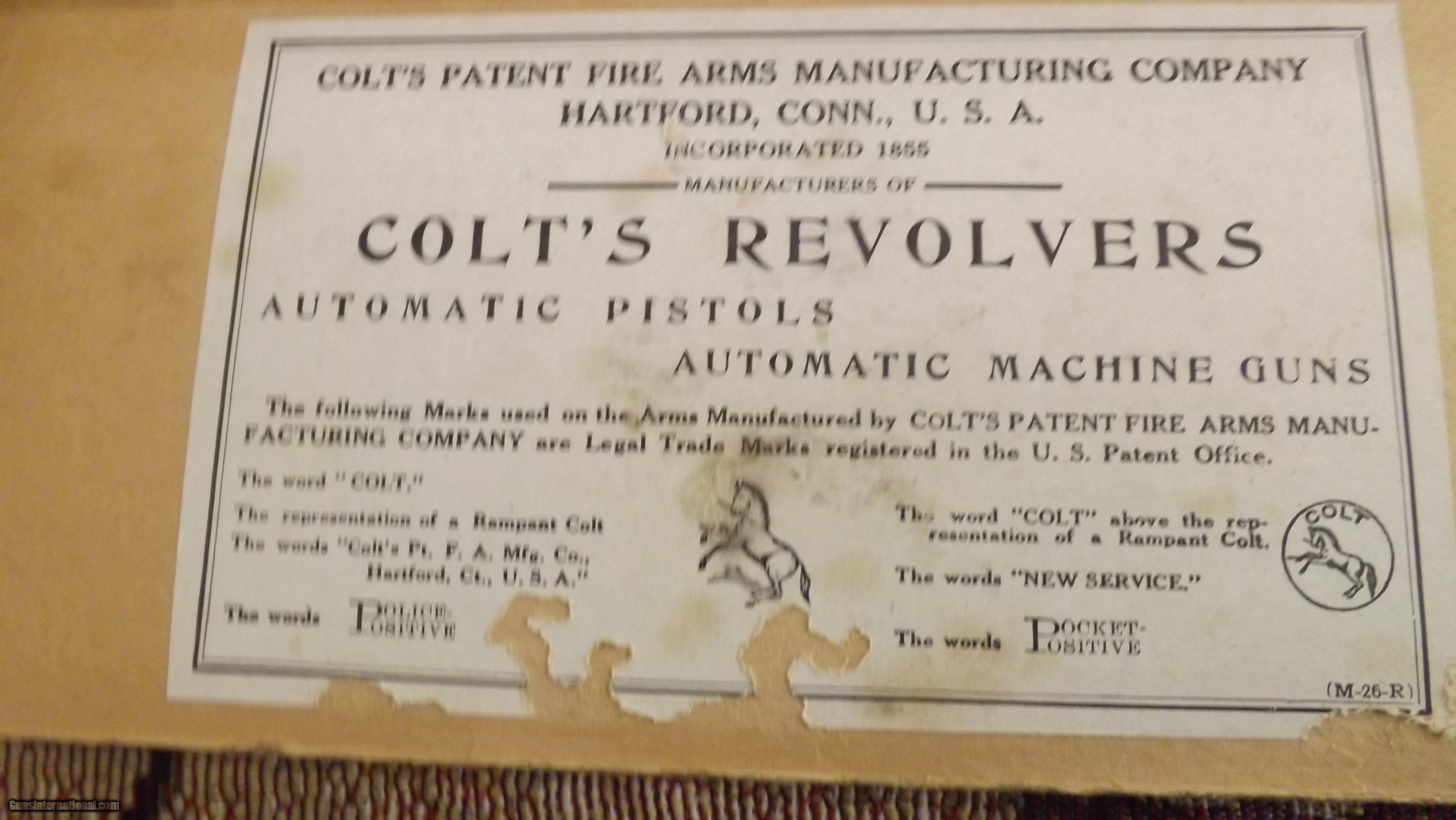 Description: NICE 1910 COLT POLICE POSITIVE WITH BOX. BOX IS IN OK SHAPE GUNS IN GREAT SHAPE SOME WEAR AND A COUPLE SMALL SPOTS. GRIPS ARE IN GREAT SHAPE. WEAR ON METAL AT THE GRIPS $ 35.00 shipping SALE PENDING SOLD Curio/Relic: Yes Manufacturer: COLT Model: POLICE POSITIVE Caliber Info: 38 SPL Condition: 89 % Metal Condition: 89% Bore Condition: GREAT |