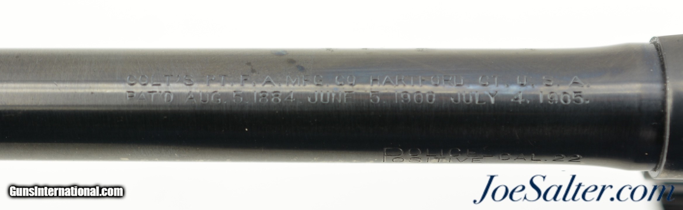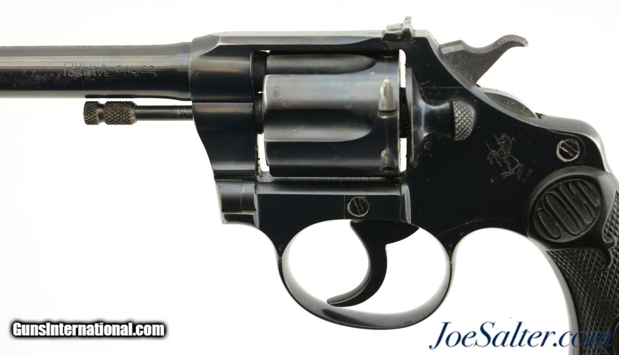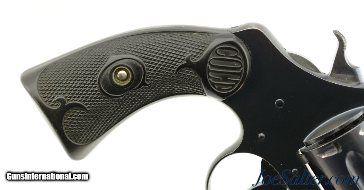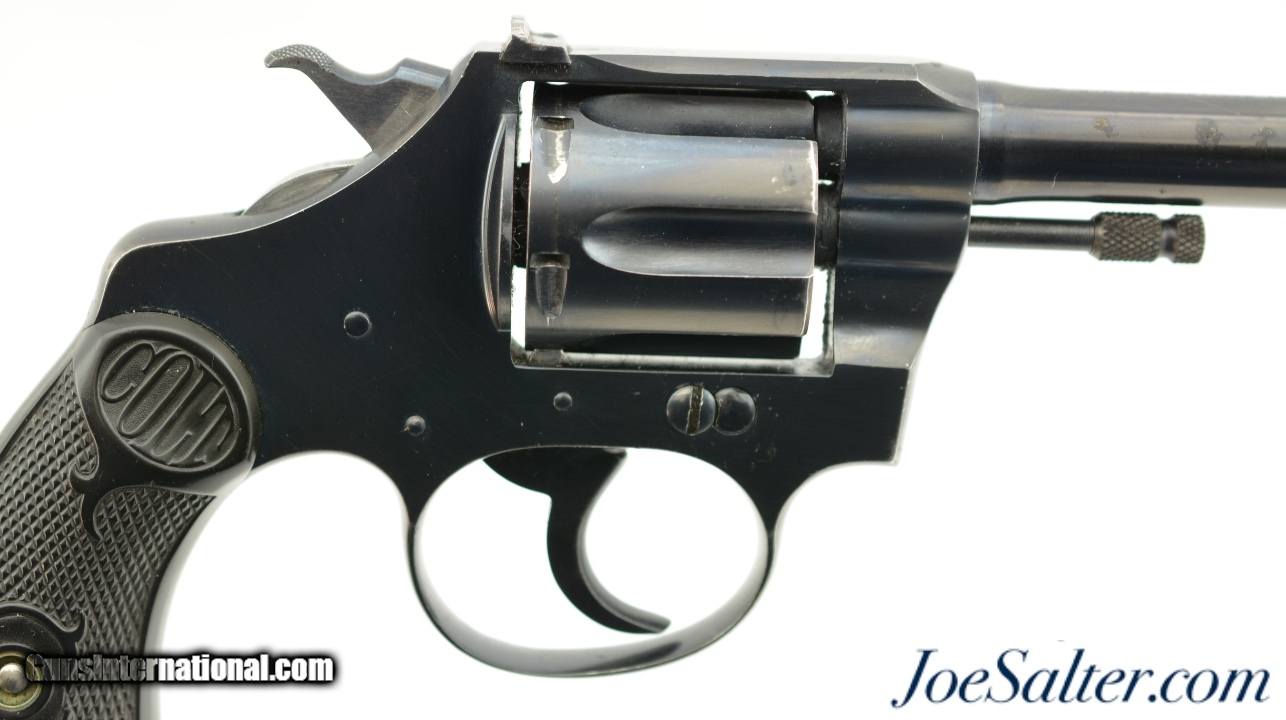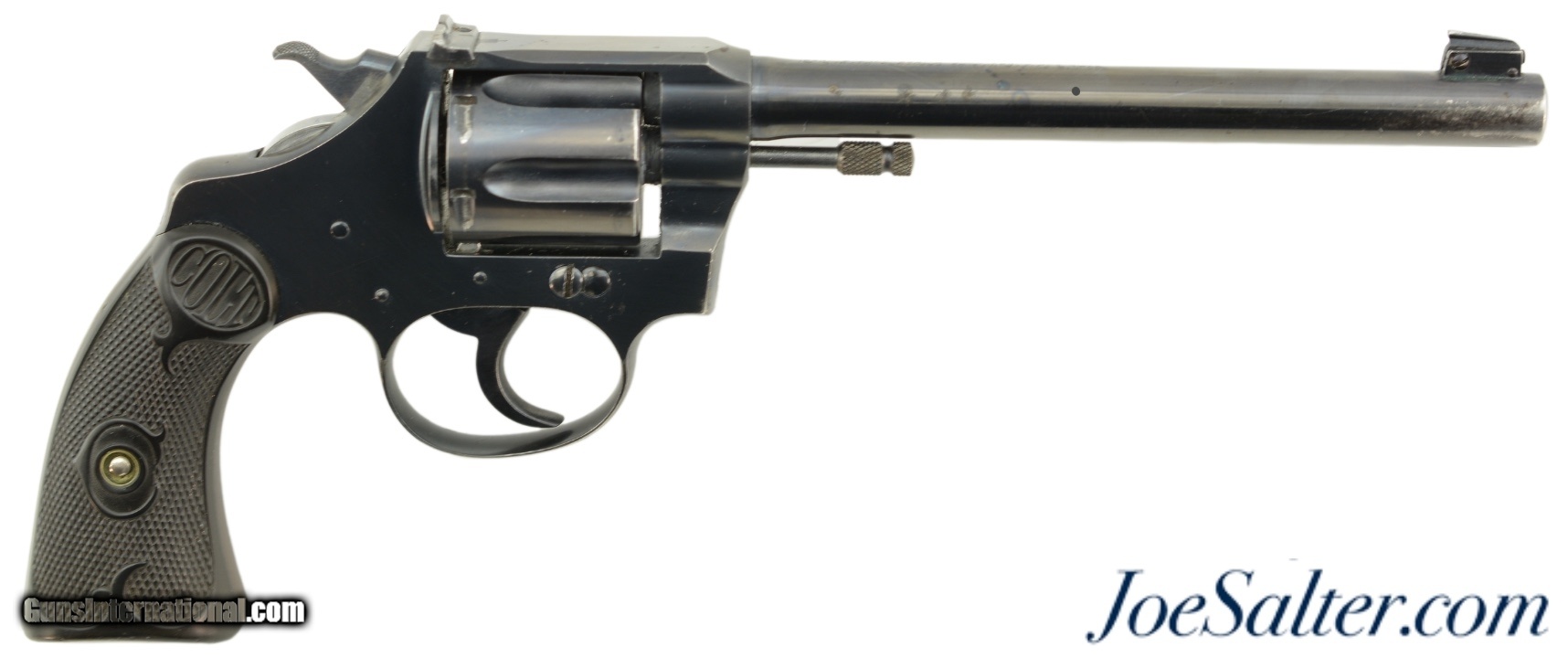 Description: Serial #21280, .22 LR, 6" barrel with an excellent, bright bore. This is a 1923-made revolver that retains 85-90% of the original bright blue finish with some silvering along the high edges and projections, a light turn-ring on the cylinder, and most of the loss occurring on the sides of the barrel at the muzzle, as well as along the gripstraps. The original target bead front and adjustable rea sights are still present. The checkered hard rubber Colt grips are in fine shape, with only minor handling marks and some mild flattening to the points. The lock-up is tight, and the action functions flawlessly. This is a fine small frame DA Colt overall. FFL or C&R SOLD Curio/Relic: Yes |