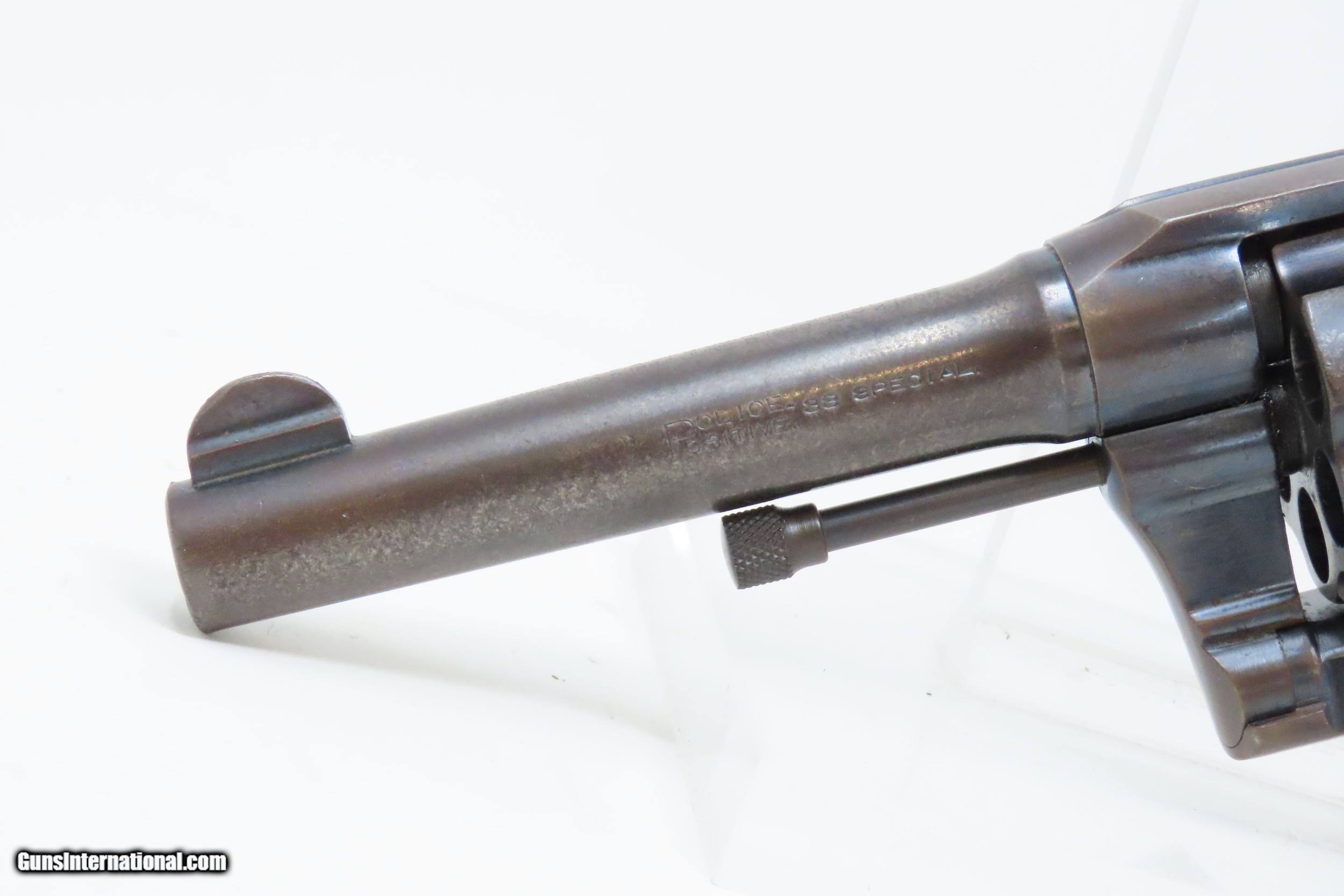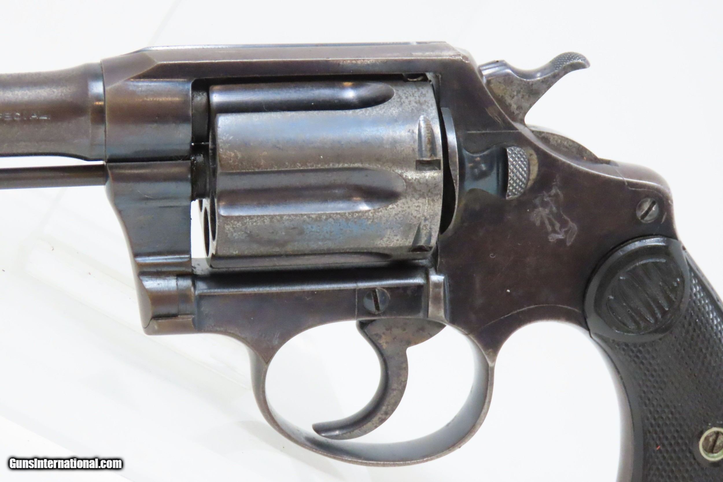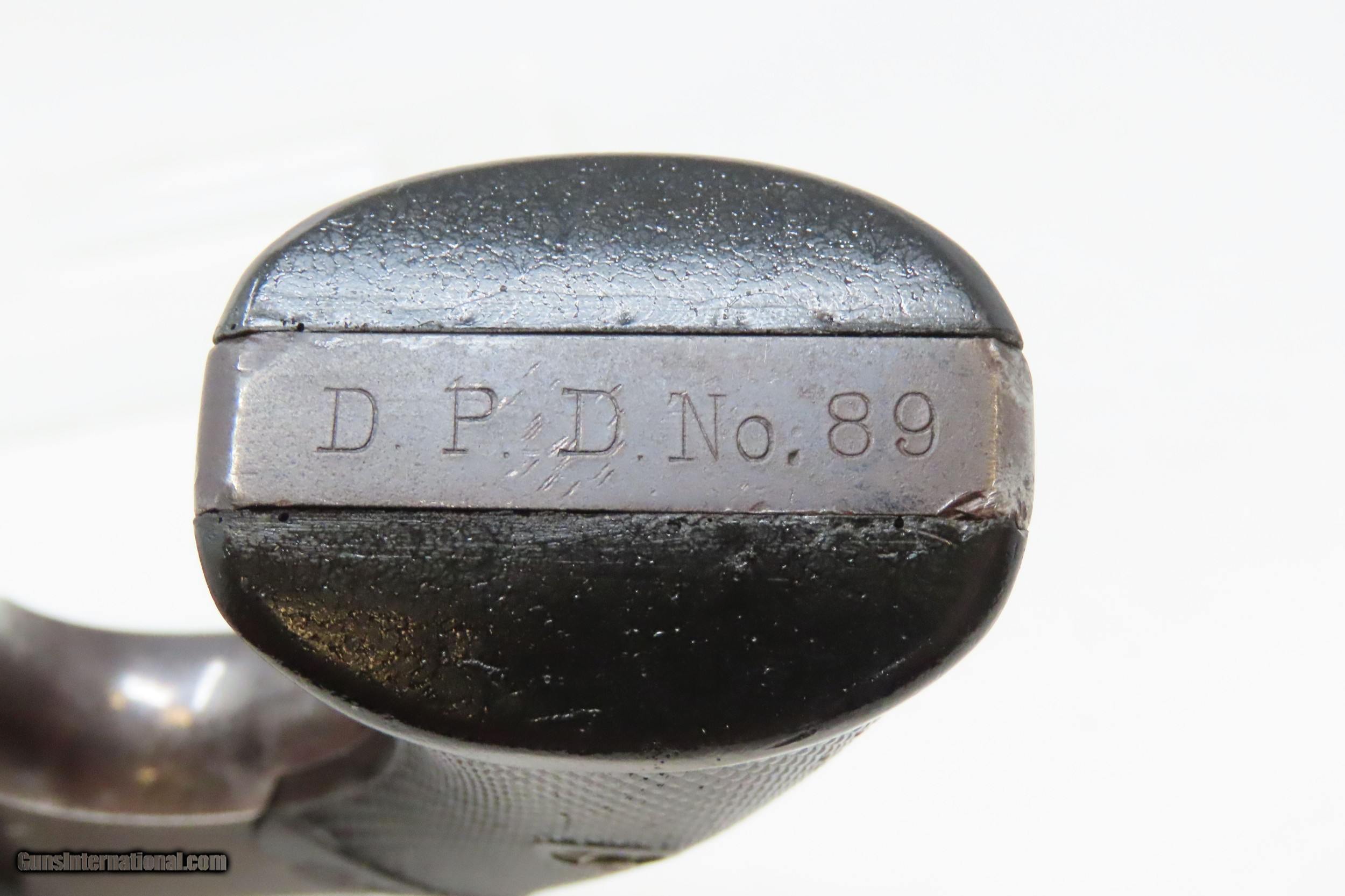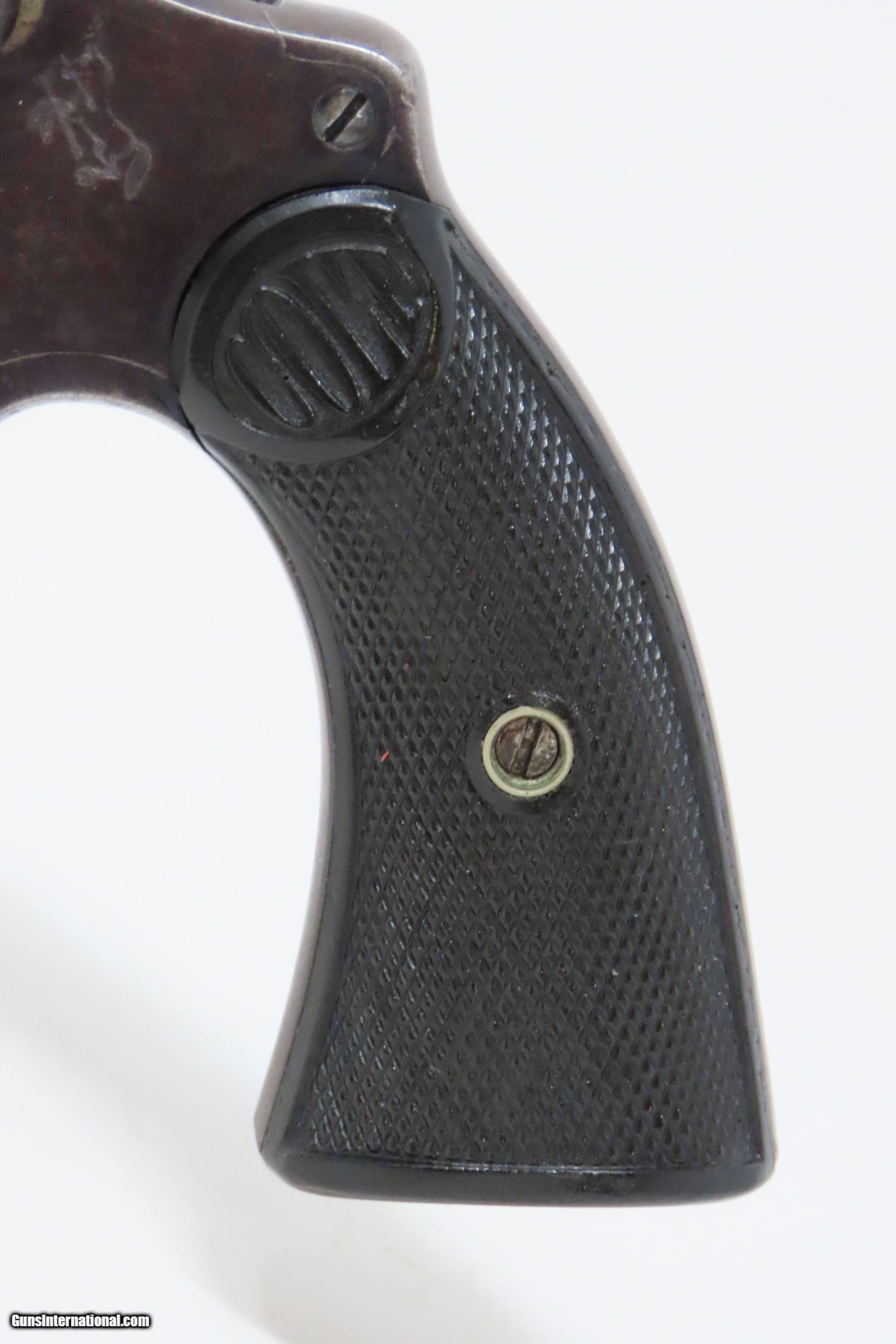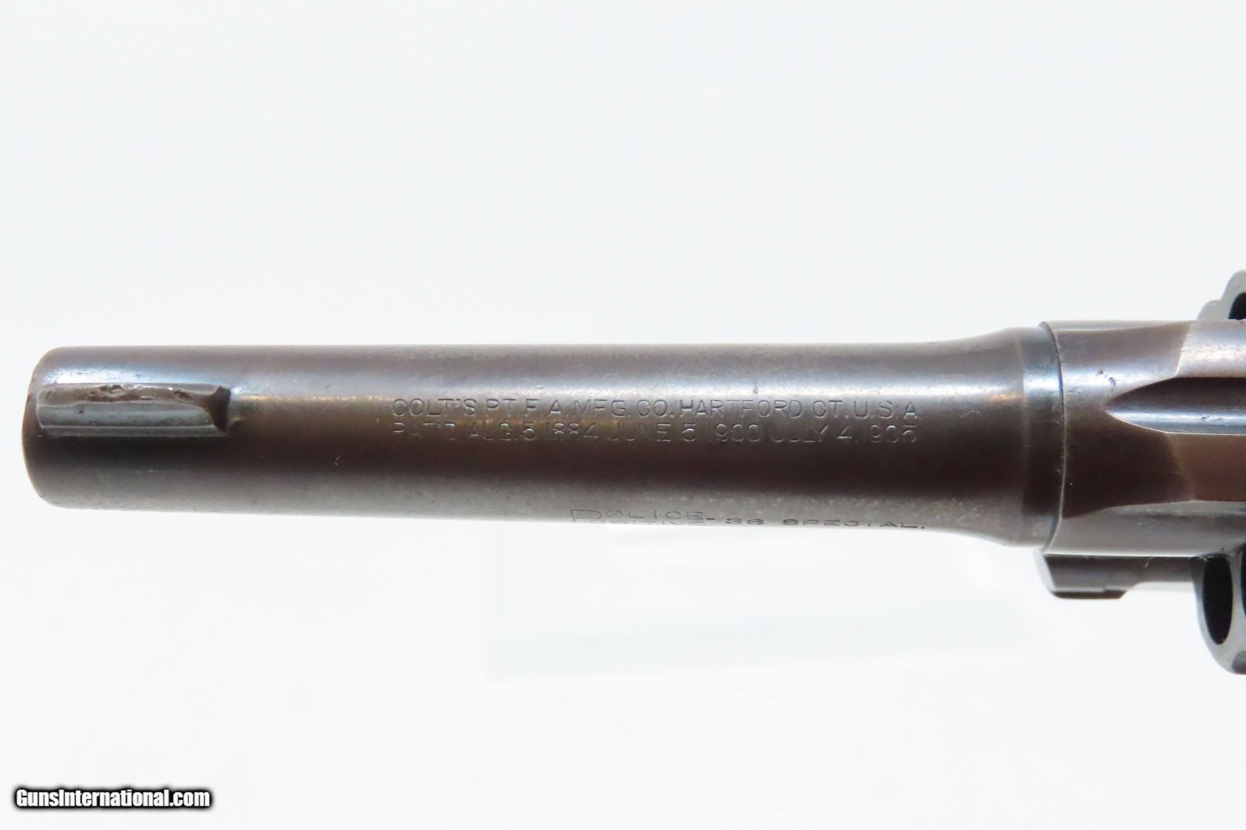 Description: DETROIT POLICE DEPT. Roaring Twenties COLT POLICE POSITIVE .38 Revolver C&R DPD c1915 mfr. LE Double Action Sidearm Here we present a C&R Detroit Police Department Issued Colt Police Positive, made in 1915 by the Colt Manufacturing Company in Hartford, Connecticut, with a production run from 1907 through 1947. This one is marked on the underside of the grip frame with “D.P.D” with an inventory number of “89”. The Colt Police Positive is a small-frame, double-action revolver featuring a six-round cylinder, chambered for either .32 or .38 caliber. It was also later offered in .22 caliber cartridges. Designed primarily for sale to federal, state, or local law enforcement agencies, the Police Positive was introduced into the overall firearms market by Colt's Manufacturing Company in 1905. The Colt Police Positive was an improvement of Colt's earlier “New Police” revolver, upgraded with an internal hammer block safety. The Police Positive was very successful venture for Colt. Along with the Colt Official Police, it dominated the law enforcement firearms market in the early 1900s. The Positive was itself incrementally modified in 1908, forming the basis for Colt's Police Positive Special model. The Colt Police Positive Special was a slight improvement of Colt's earlier Police Positive model with the only differences being a slightly lengthened cylinder and elongated and strengthened frame to allow the chambering of the longer, more powerful .32-20 Winchester Center Fire and .38 Special cartridges. The overall condition is fine. Original blued finish with fire blued accents on the trigger and hammer. Numbers match on frame and cylinder crane. The action is excellent in both double and single action. The bore is shiny with sharp rifling. The grips are replica replacements that are in near fine condition. A very neat piece of Detroit history that would have been in service during the Roaring Twenties! This firearm is classified as a Curio & Relic. Barrel is 4 inches. Caliber: .38 Special Overall condition as seen in photos. Very Fast. Very Safe. FREE SHIPPING. Will need to be sent to your local FFL or C&R licensee. This firearm is classified as a Curio & Relic. Guaranteed AUTHENTIC & Includes CERTIFICATE OF AUTHENTICITY. ancestryguns $1600 #227727 SOLD Curio/Relic: Yes |
