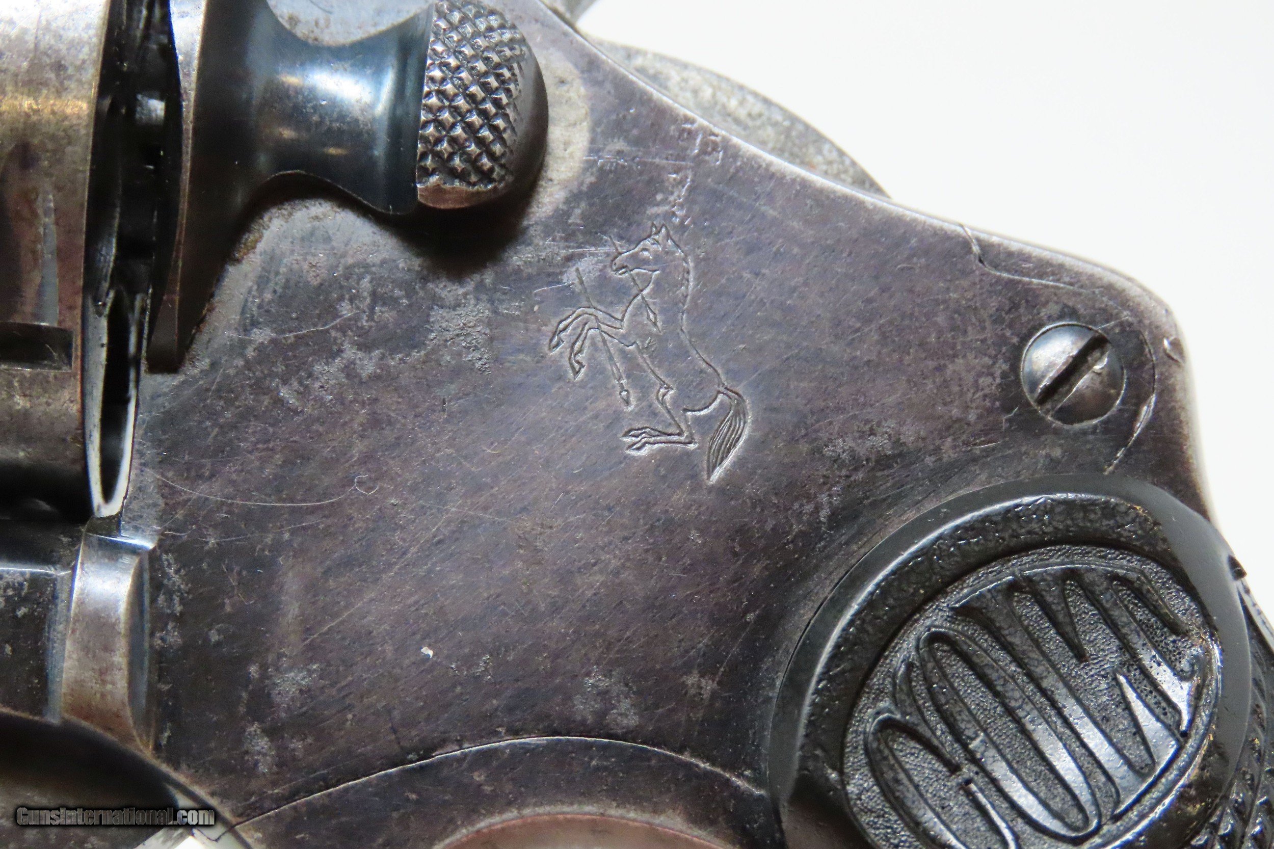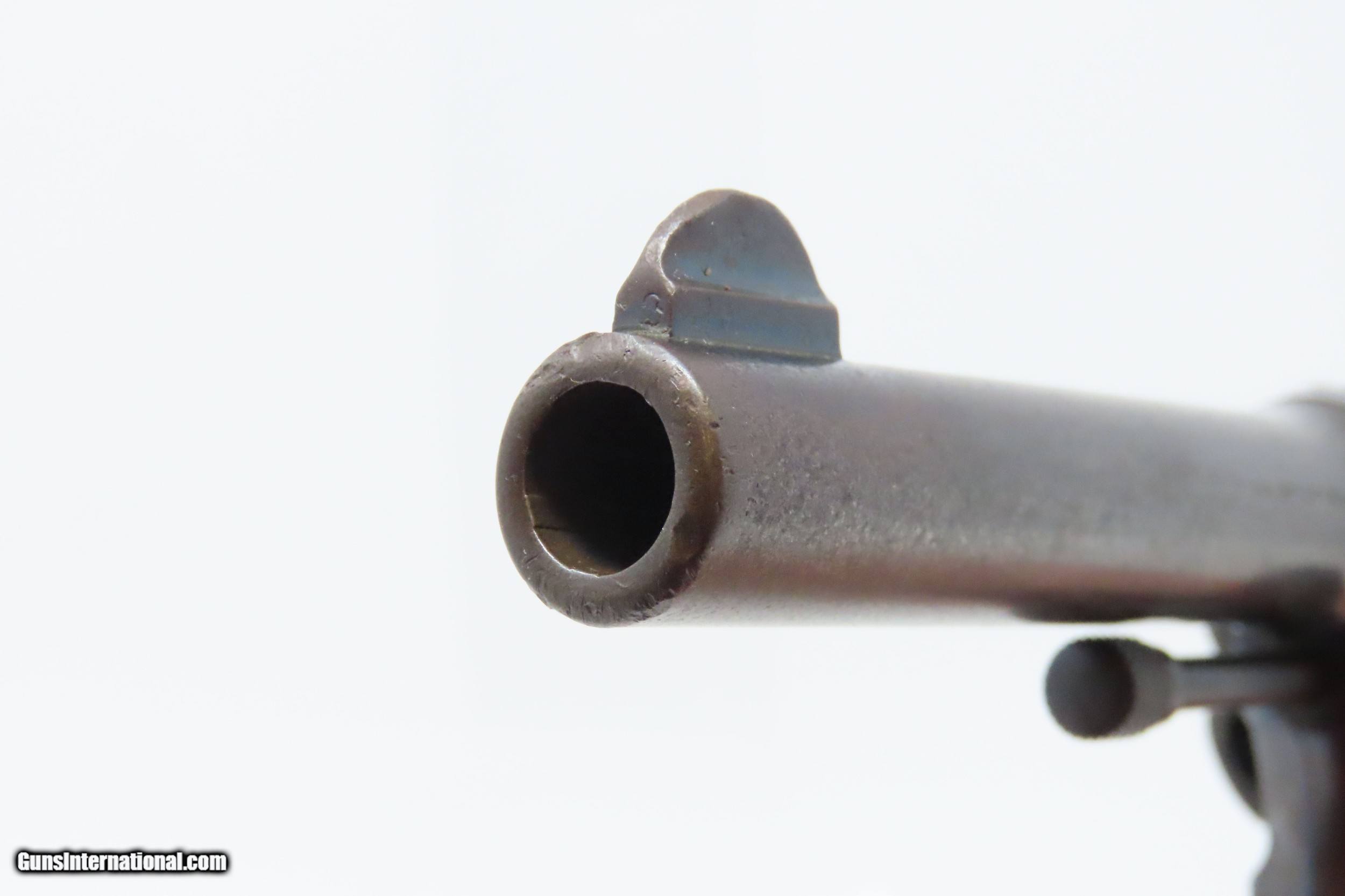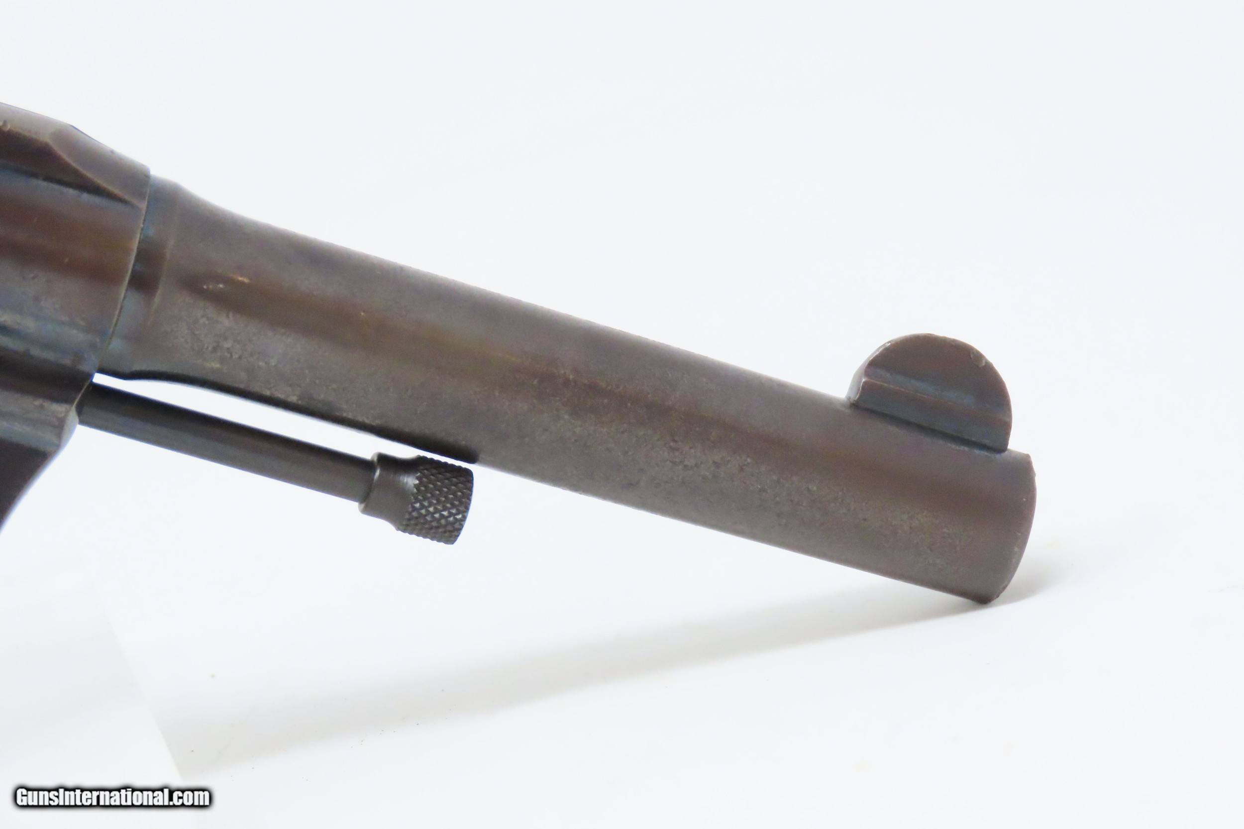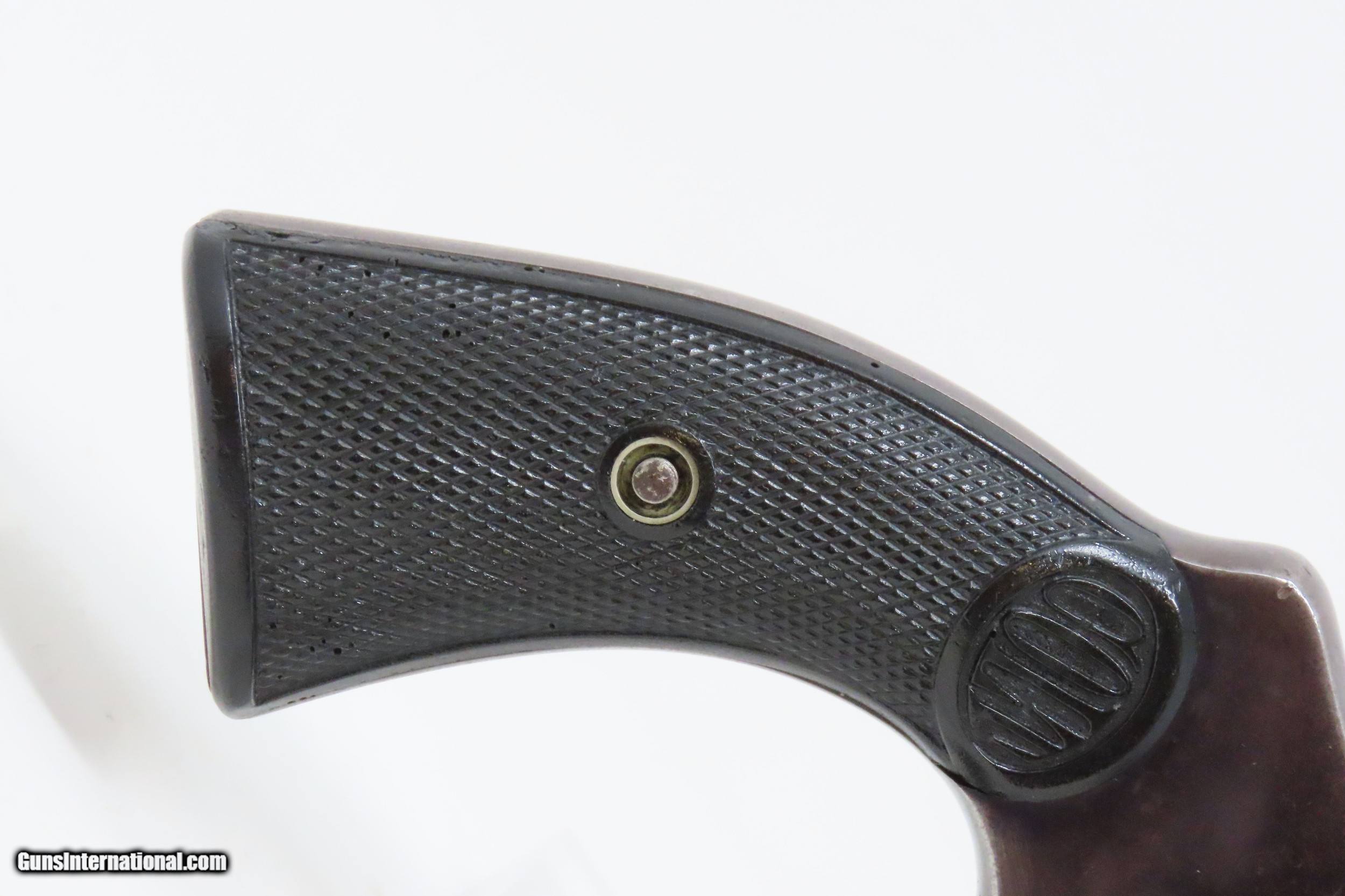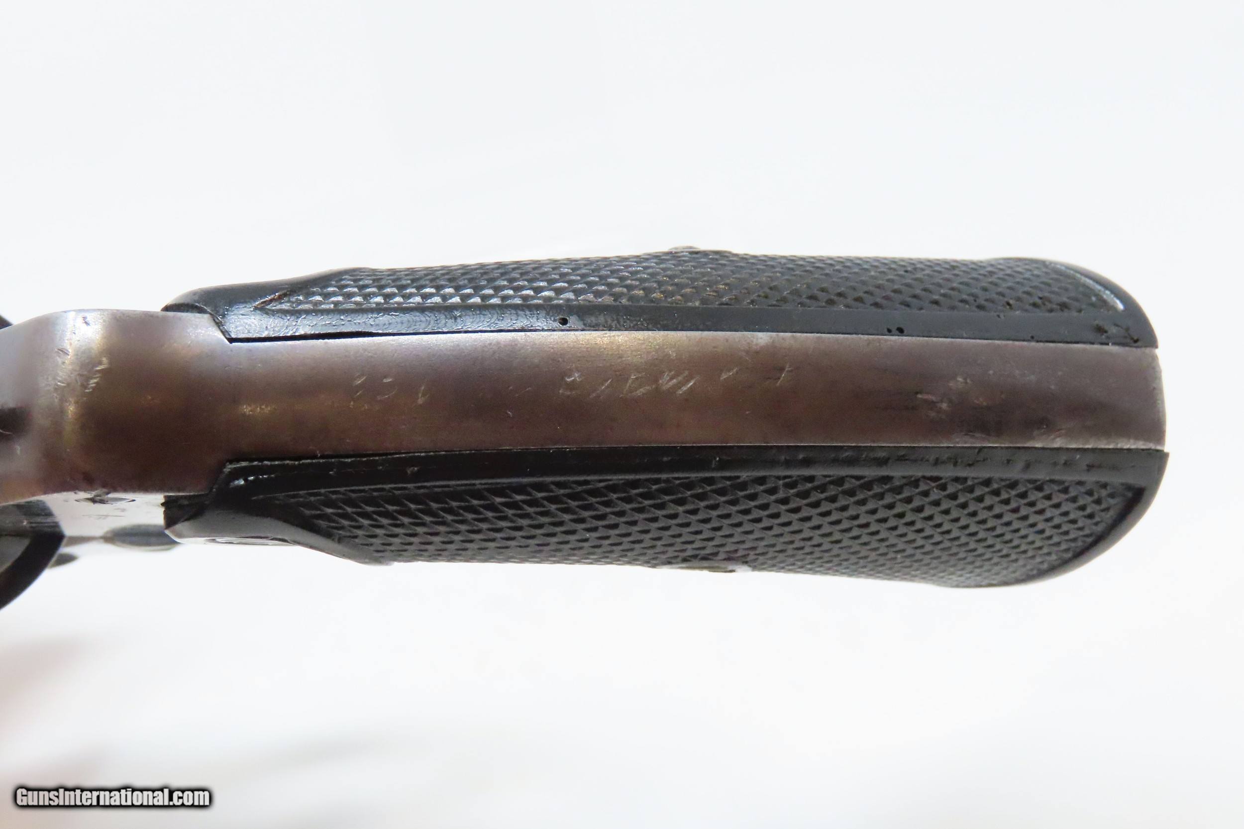 Description: DETROIT POLICE DEPT. Roaring Twenties COLT POLICE POSITIVE .38 Revolver C&R DPD c1915 mfr. LE Double Action Sidearm Here we present a C&R Detroit Police Department Issued Colt Police Positive, made in 1915 by the Colt Manufacturing Company in Hartford, Connecticut, with a production run from 1907 through 1947. This one is marked on the underside of the grip frame with “D.P.D” with an inventory number of “89”. The Colt Police Positive is a small-frame, double-action revolver featuring a six-round cylinder, chambered for either .32 or .38 caliber. It was also later offered in .22 caliber cartridges. Designed primarily for sale to federal, state, or local law enforcement agencies, the Police Positive was introduced into the overall firearms market by Colt's Manufacturing Company in 1905. The Colt Police Positive was an improvement of Colt's earlier “New Police” revolver, upgraded with an internal hammer block safety. The Police Positive was very successful venture for Colt. Along with the Colt Official Police, it dominated the law enforcement firearms market in the early 1900s. The Positive was itself incrementally modified in 1908, forming the basis for Colt's Police Positive Special model. The Colt Police Positive Special was a slight improvement of Colt's earlier Police Positive model with the only differences being a slightly lengthened cylinder and elongated and strengthened frame to allow the chambering of the longer, more powerful .32-20 Winchester Center Fire and .38 Special cartridges. The overall condition is fine. Original blued finish with fire blued accents on the trigger and hammer. Numbers match on frame and cylinder crane. The action is excellent in both double and single action. The bore is shiny with sharp rifling. The grips are replica replacements that are in near fine condition. A very neat piece of Detroit history that would have been in service during the Roaring Twenties! This firearm is classified as a Curio & Relic. Barrel is 4 inches. Caliber: .38 Special Overall condition as seen in photos. Very Fast. Very Safe. FREE SHIPPING. Will need to be sent to your local FFL or C&R licensee. This firearm is classified as a Curio & Relic. Guaranteed AUTHENTIC & Includes CERTIFICATE OF AUTHENTICITY. ancestryguns $1600 #227727 SOLD Curio/Relic: Yes |