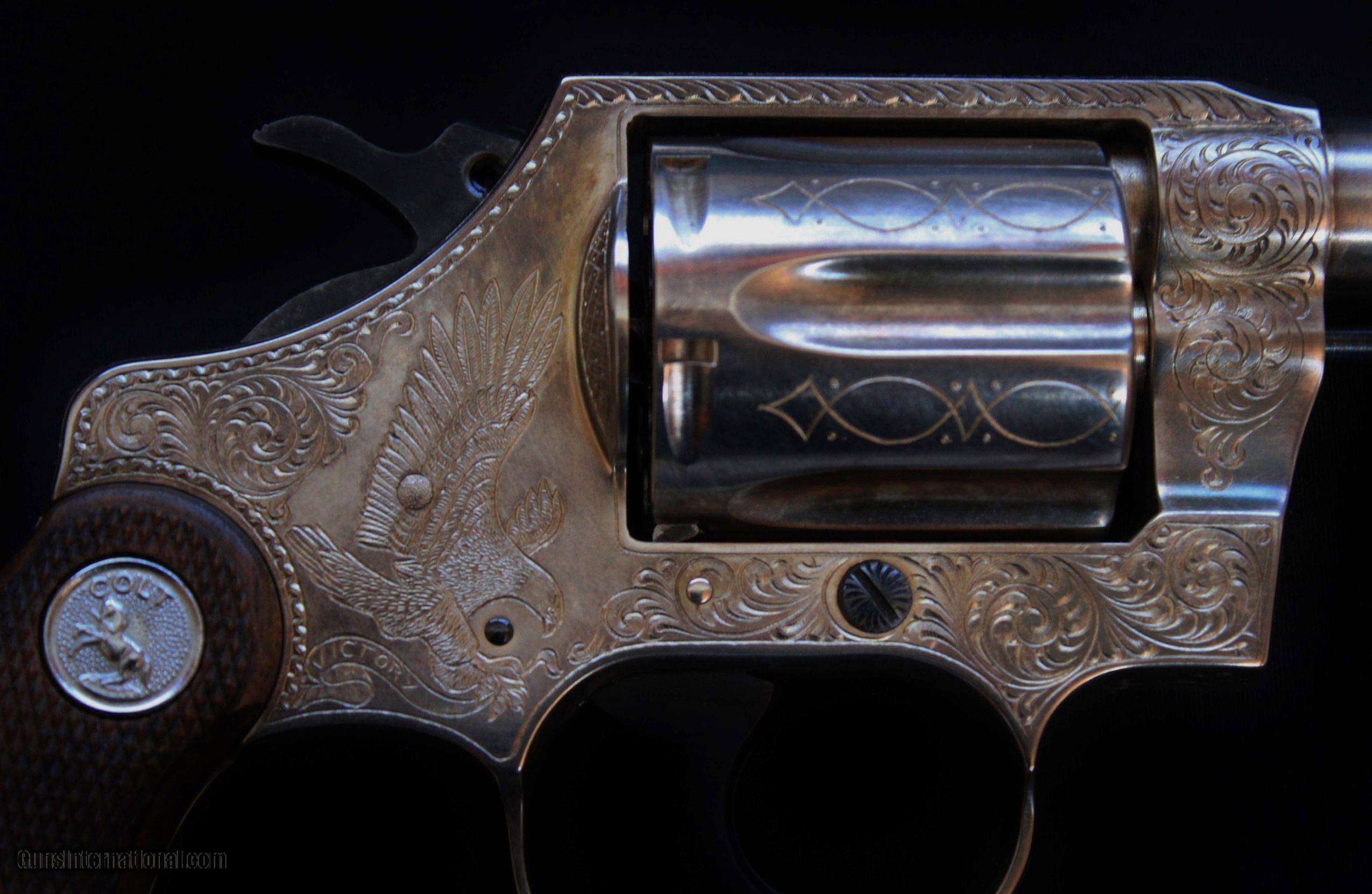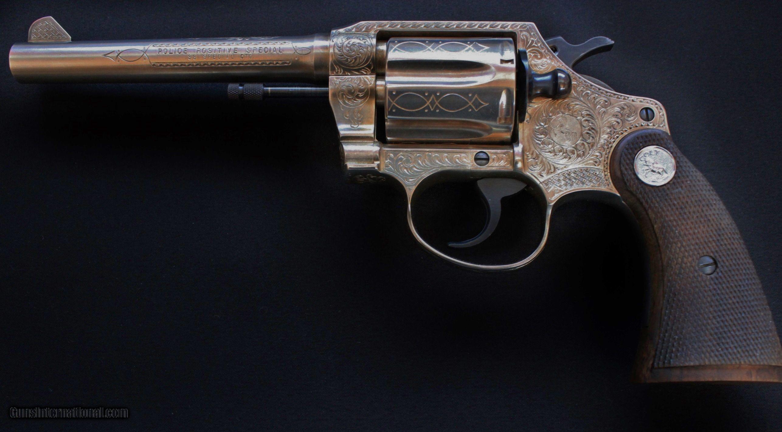 Description: John Adams engraved and restored .38 Spcl.POLICE POSITIVE SPECIAL Silver plated. Perfect bore. A real neat little Colt engraved by a former Colt Master engraver. SOLD Curio/Relic: Yes |