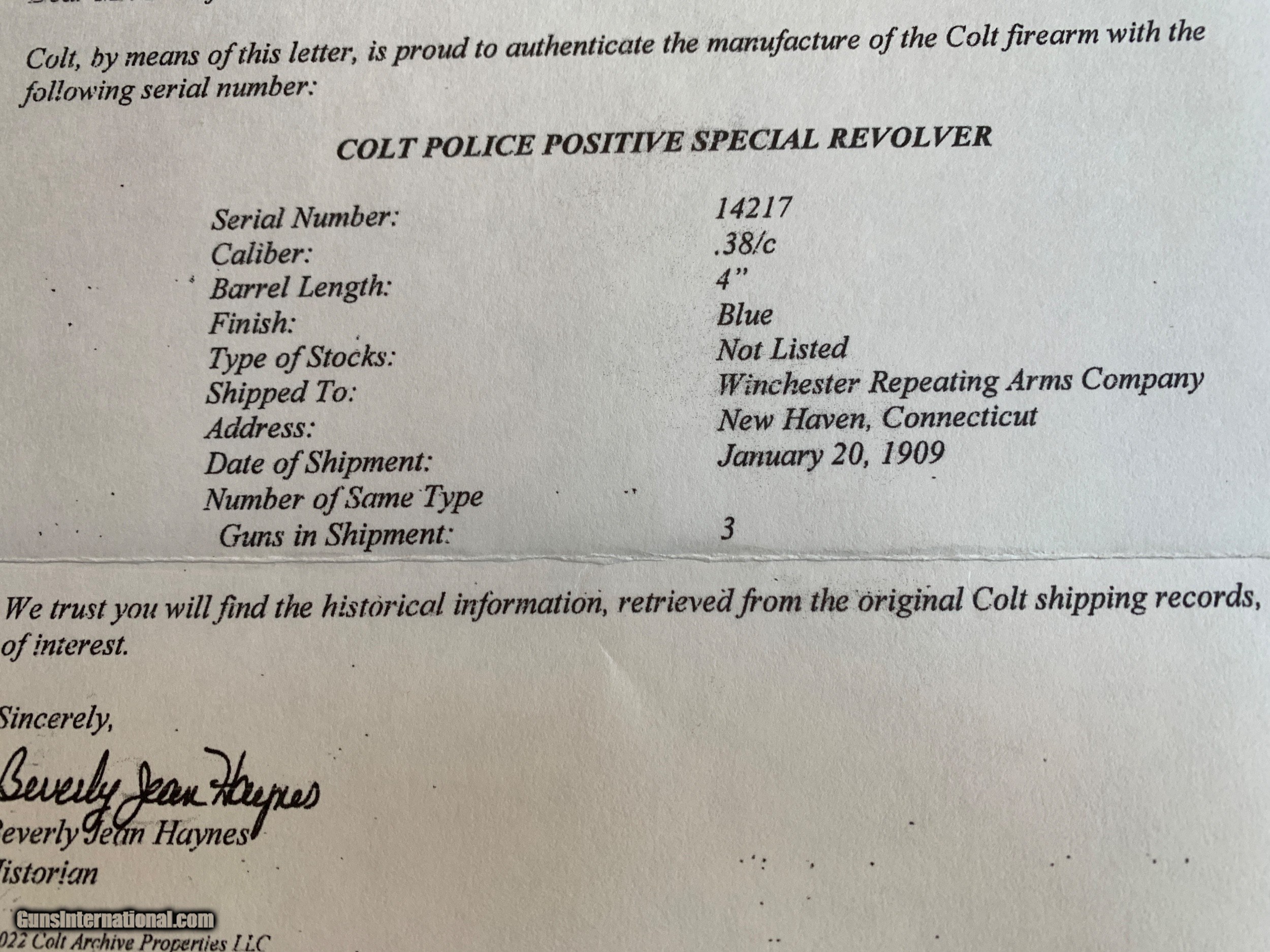 RARE Colt 1909 Police Positive owned by Winchester