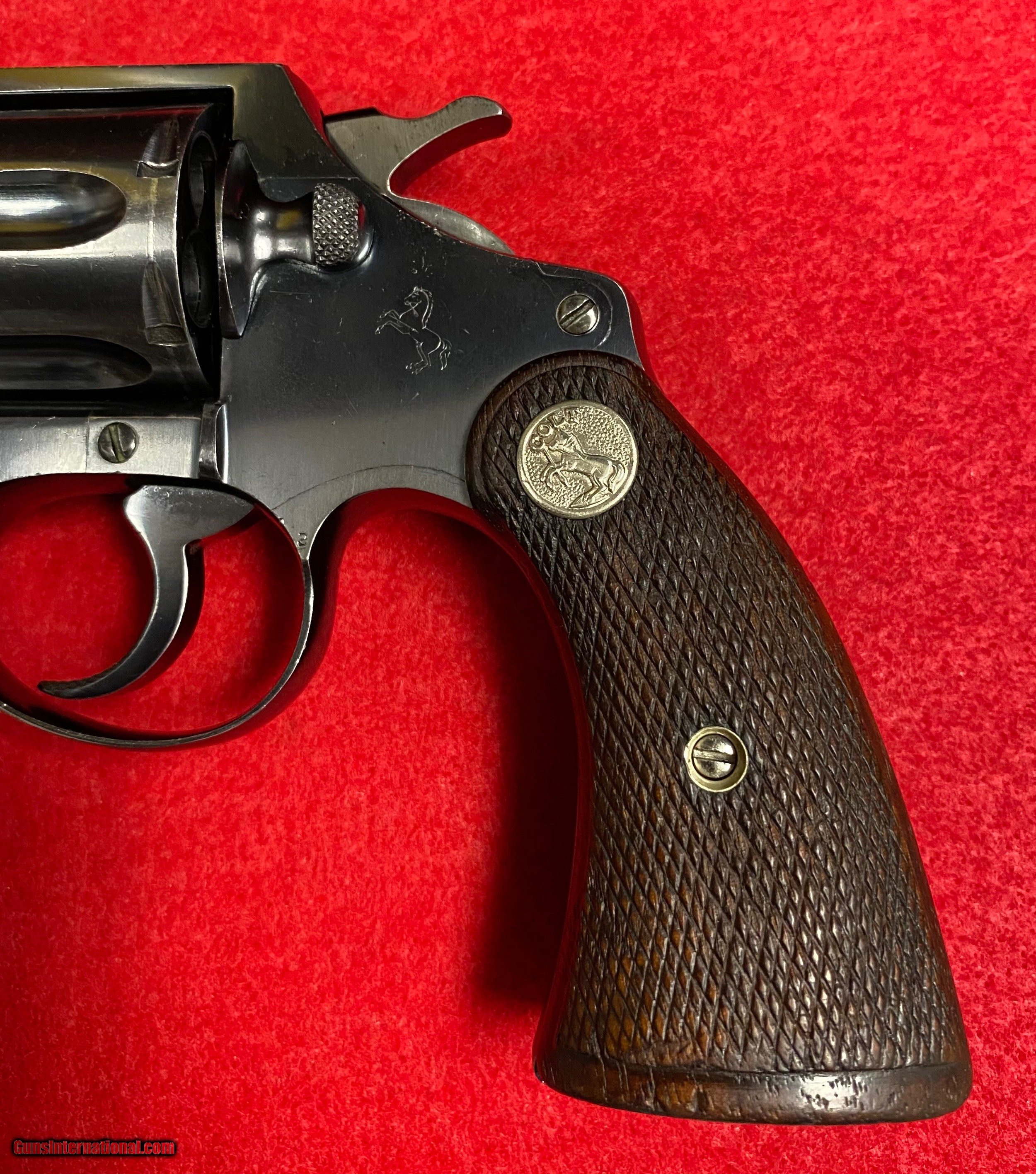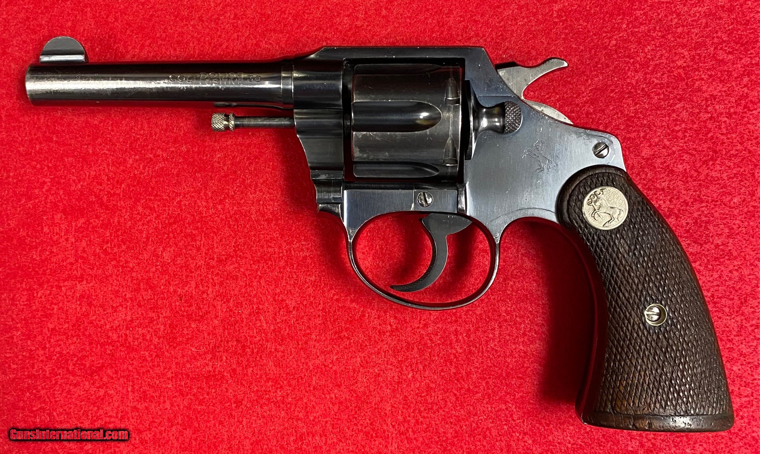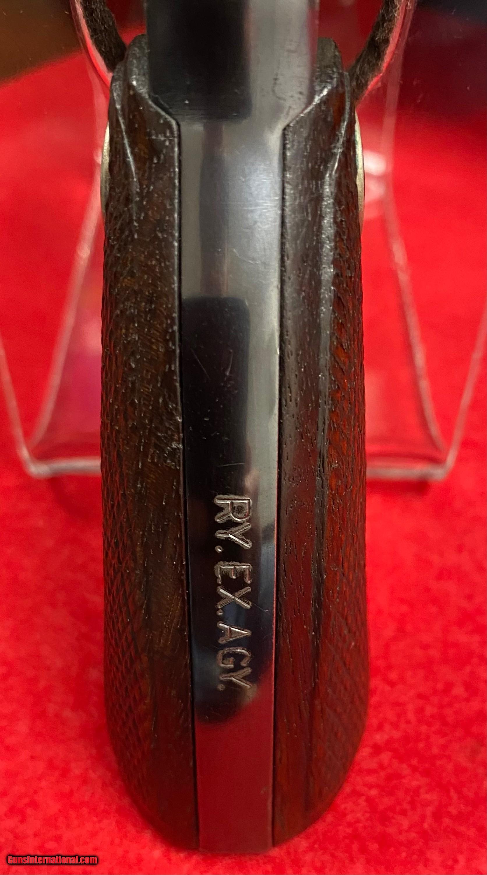 Description: Rare Colt Police Positive .38 Caliber with a 4" barrel and Railway Express Agency markings of RY. EX. AGY. on the back strap. Manufactured by Colt in 1930. Many Colt Police Positives were shipped to the Express Agencies back in the 1920's and 1930's. Railway Express purchased American Railway Express Company in 1929. This is an early production piece that was shipped shortly after that acquisition. Extremely nice collectible Colt that is now 92 years old with plenty of history throughout it's lifetime. Excellent mechanics with tight lock up. Bright bore. 95% original blue finish. Fantastic acquisition for any Colt enthusiast. This offering is a consignment piece. Colt Letter currently being processed and will be included in the sale. $35.00 insured shipping. SOLD Curio/Relic: Yes Handgun Caliber: .38 S&W (.38 Colt New Police, .38 Super Police) Manufacturer: Colt Model: Police Positive Serial Number: 334476 Barrel Length: 4” Chambers: Six Condition: Excellent Metal Condition: Excellent Wood Condition: Excellent Bore Condition: Excellent Action: DA Finish: Blued Sights: Fixed Manufacture Date: 1930 Item Location: WV |