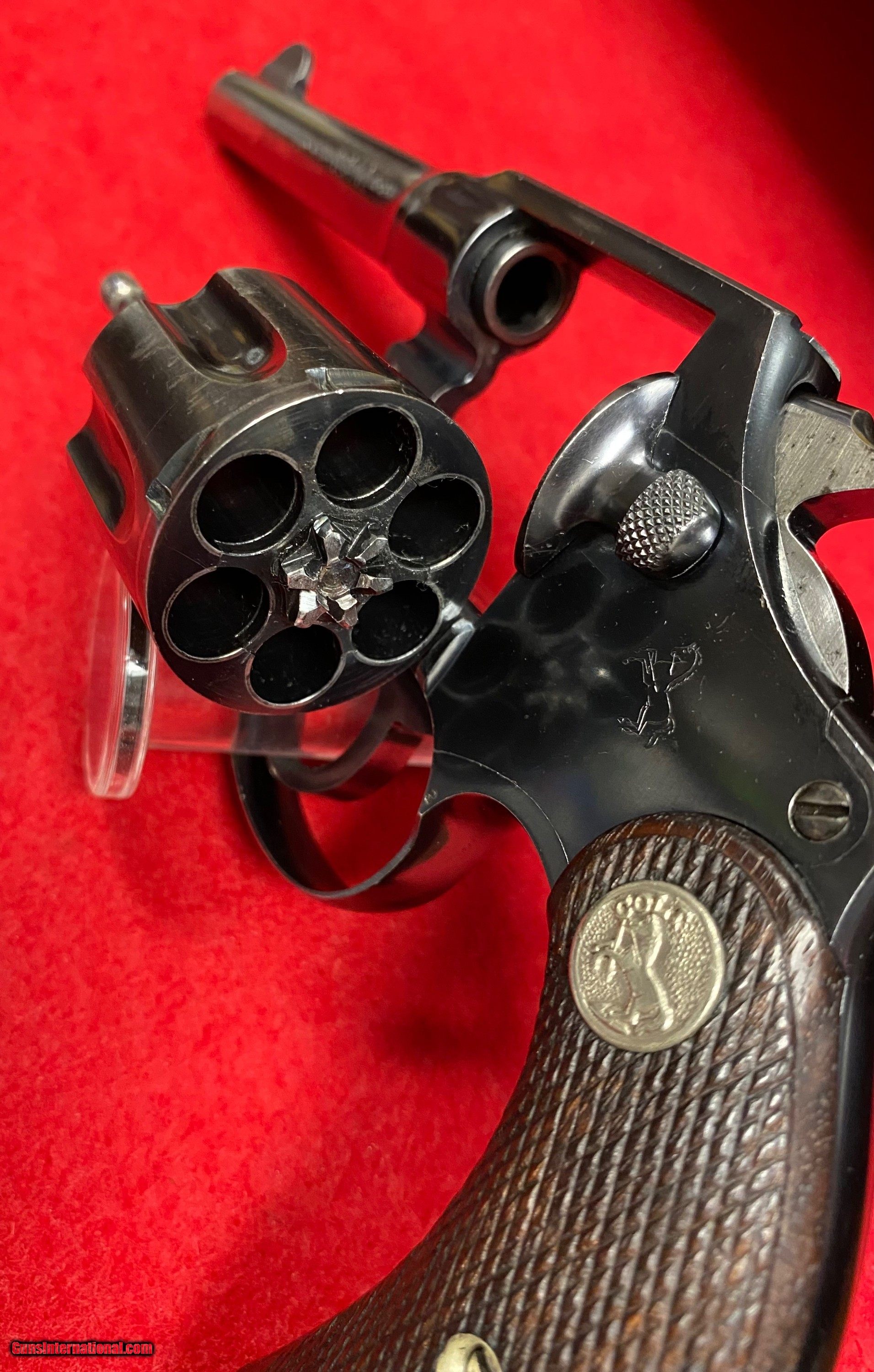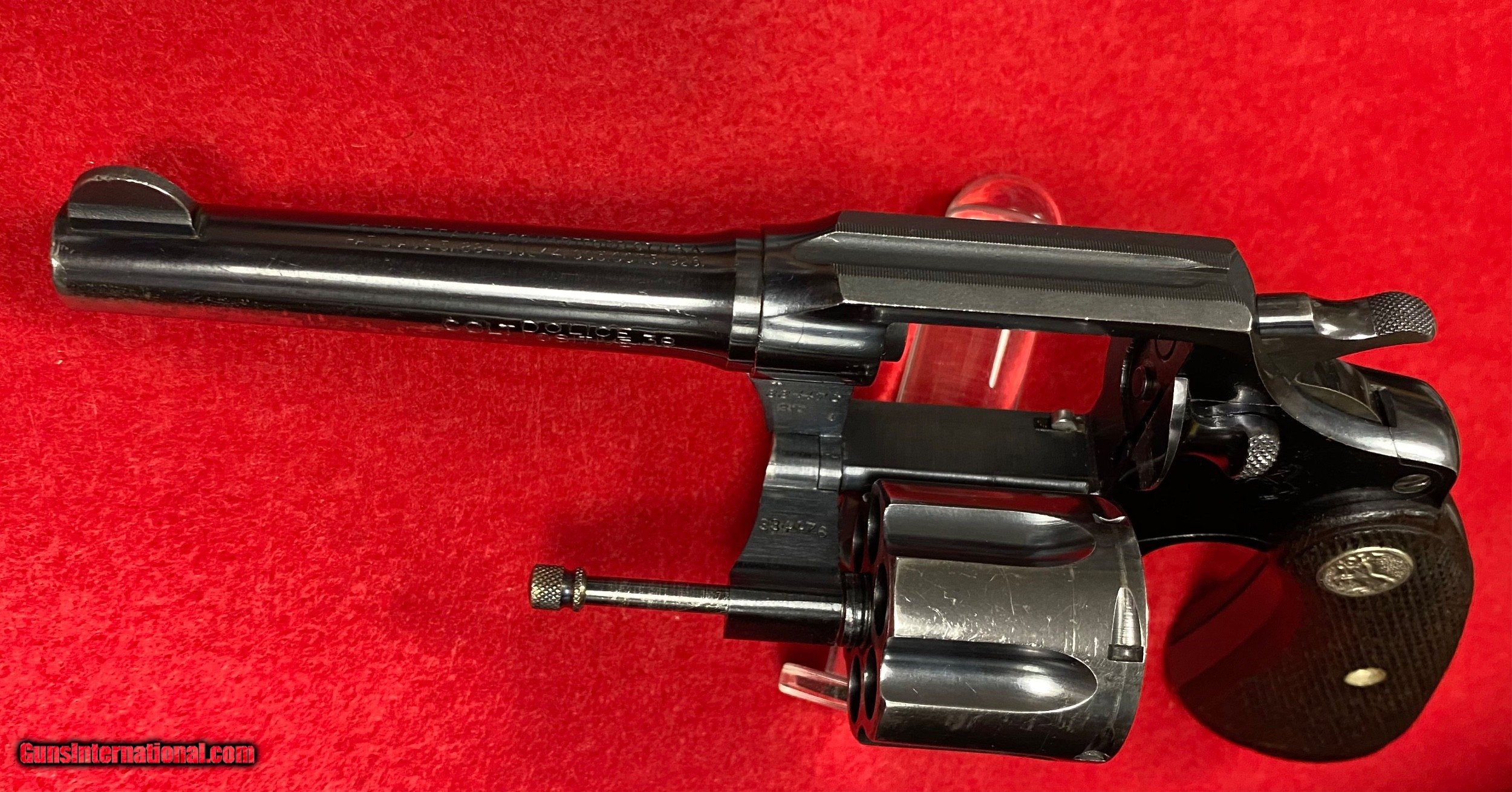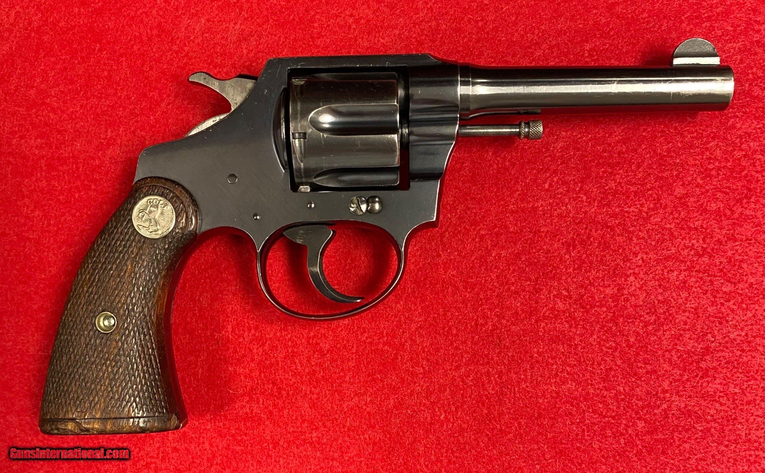 Description: Rare Colt Police Positive .38 Caliber with a 4" barrel and Railway Express Agency markings of RY. EX. AGY. on the back strap. Manufactured by Colt in 1930. Many Colt Police Positives were shipped to the Express Agencies back in the 1920's and 1930's. Railway Express purchased American Railway Express Company in 1929. This is an early production piece that was shipped shortly after that acquisition. Extremely nice collectible Colt that is now 92 years old with plenty of history throughout it's lifetime. Excellent mechanics with tight lock up. Bright bore. 95% original blue finish. Fantastic acquisition for any Colt enthusiast. This offering is a consignment piece. Colt Letter currently being processed and will be included in the sale. $35.00 insured shipping. SOLD Curio/Relic: Yes Handgun Caliber: .38 S&W (.38 Colt New Police, .38 Super Police) Manufacturer: Colt Model: Police Positive Serial Number: 334476 Barrel Length: 4” Chambers: Six Condition: Excellent Metal Condition: Excellent Wood Condition: Excellent Bore Condition: Excellent Action: DA Finish: Blued Sights: Fixed Manufacture Date: 1930 Item Location: WV |