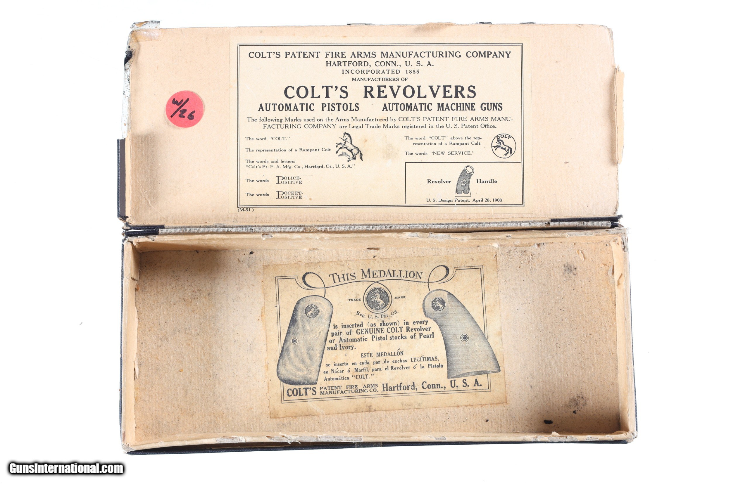 Description: Near excellent overall condition with a few peppery specks of oxidation, with factory box numbered to gun. Box rates poor with 3 tabs absent. Manufactured 1916. • Free Shipping, No Credit Card Fees. • Lay-a-way available for this firearm. • 1/3 Down, a 1/3 in 30 Days 1/3 in 60 Days. SOLD Curio/Relic: Yes Manufacturer: Colt Model: Police Positive Serial Number: 86248 Barrel Length: 4 |