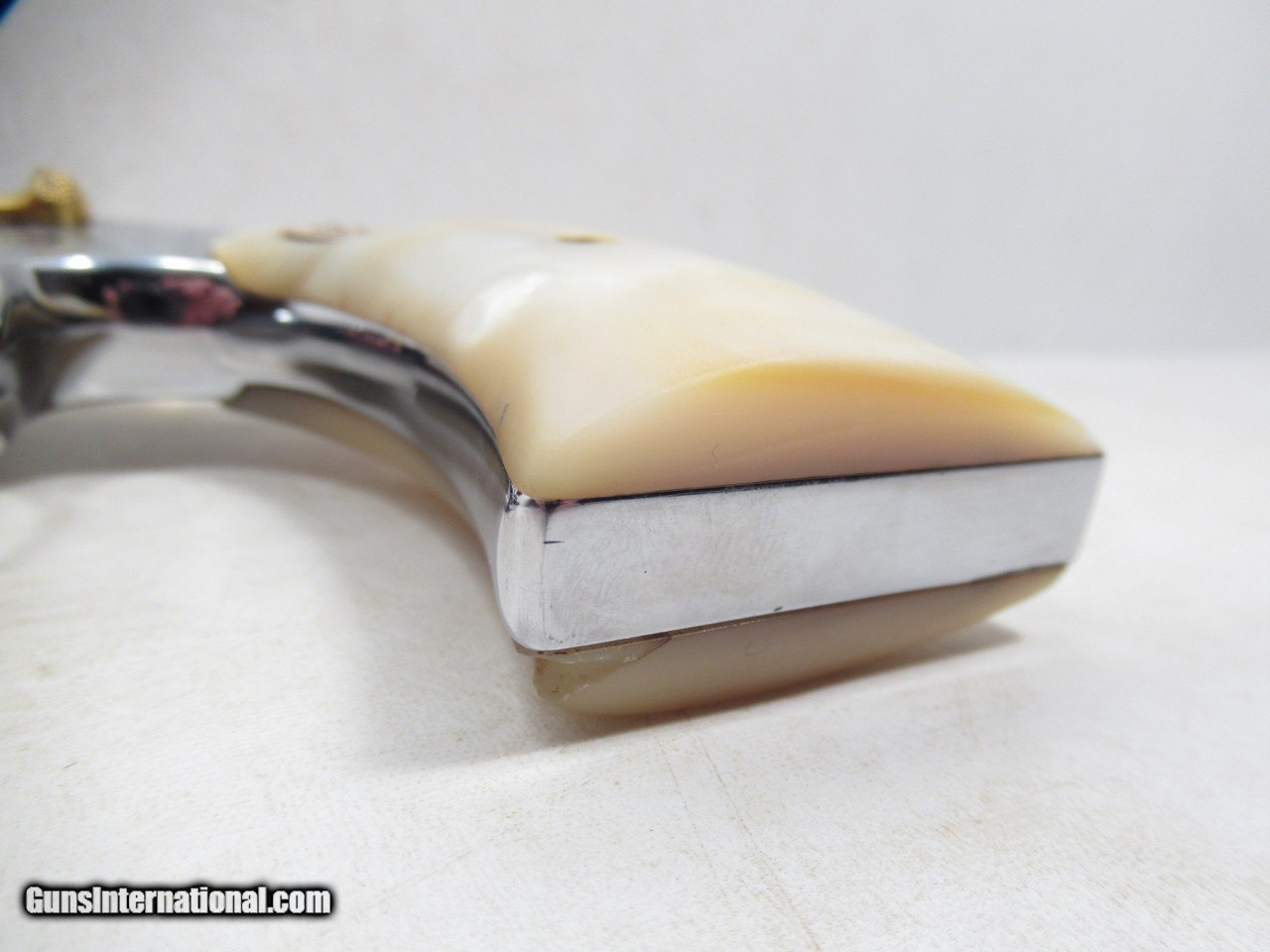 Description: Colt Police Positive Special Model Revolver; Serial No. 440974; Per Included Factory Letter: .32/20 Caliber with 4” Barrel; Blue Finish; Shipped to Wolf & Klar Whsle Sporting Goods Company of Ft. Worth, Texas on July 13, 1937 as a One Gun Shipment; Gold Accents; Perfect Action and Bore; Gold Inlays on Grips with 5-Point Gold Star with 5 Diamonds; See All Photos for Condition; No Texts; Call (254)541-5765 or Email Only; PERSONAL PROPERTY of Harold Wieser; NOTICE: We Do Not Do Any Consignments - All Items Listed are Owned by Us - NO SALES to New Jersey or New York City - Antiques Only to Massachusetts and California; Price: $2,975 + $45 S&H Via USPS PRIORITY MAIL; Payment Address: Harold Wieser - 1466 U.S. Hwy 77 - Rosebud, TX 76570; SEND PAYMENTS VIA USPS PRIORITY MAIL; BEWARE of SCAMS!!! – DO NOT SEND MONEY or CORRESPONDENTS ELECTRONICALLY UNLESS YOU HAVE SPOKEN to HAROLD WIESER FIRST! 254-541-5765 SOLD Manufacturer: Colt Model: Police Positive Spl. Serial Number: 440974 |