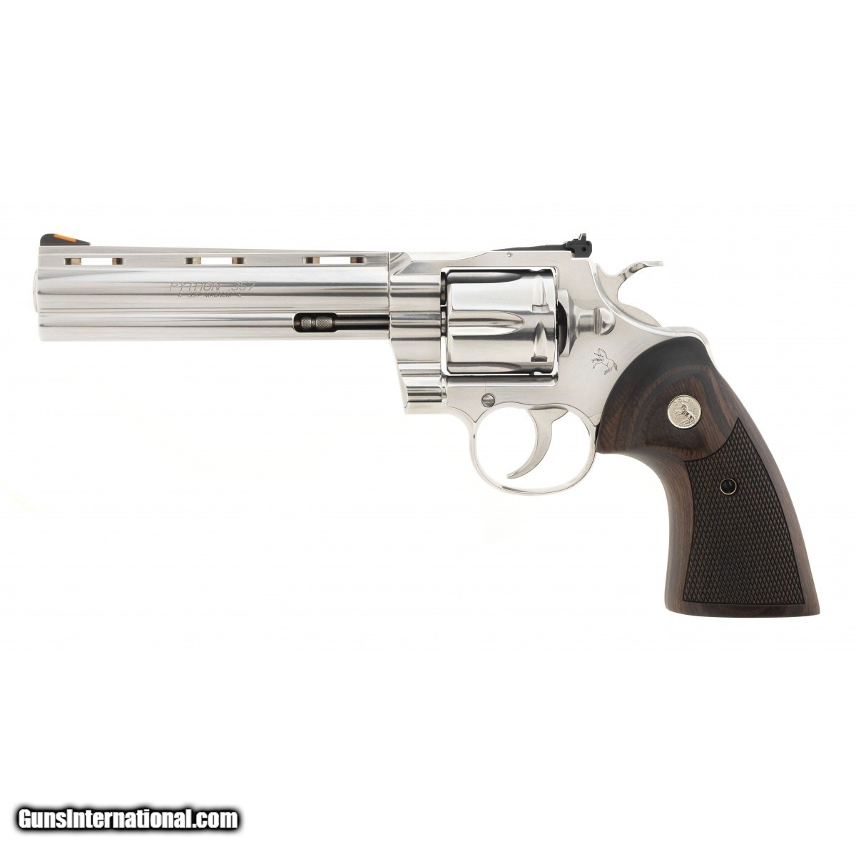 Description: " SN:PY218938. Double action revolver with a 6"" barrel and wood grips. In a stainless finish. Overall in excellent condition, with box. SOLD |