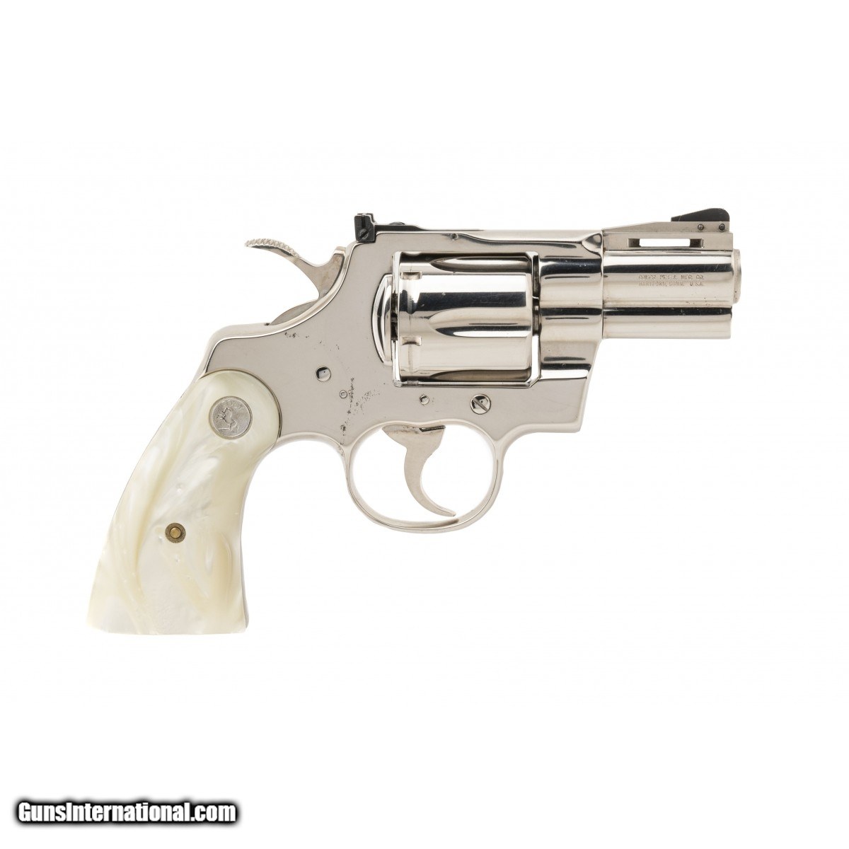 Description: " 2.5"" snubnose model with nickel finish, made in 1981. Has some light carry wear, overall very good condition with fancy pearlite grips. SOLD |