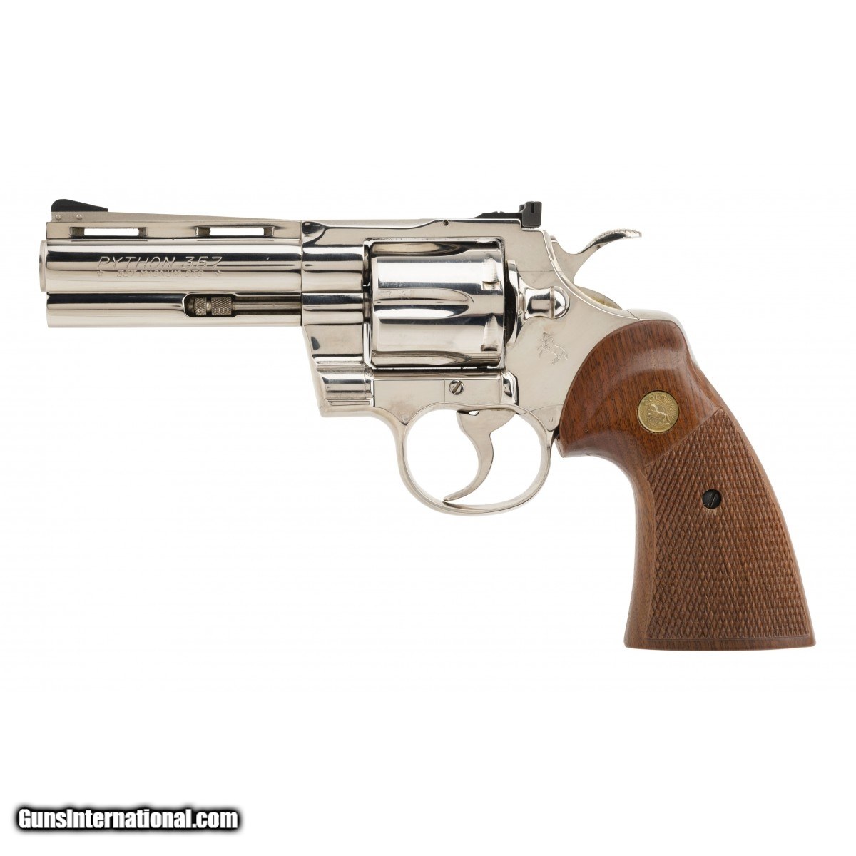 Description: " 4"" nickel model made in 1978. Has correct grips. Bore and action are excellent. The nickel has a bit of cloudiness in a few spots, overall excellent condition. SOLD |