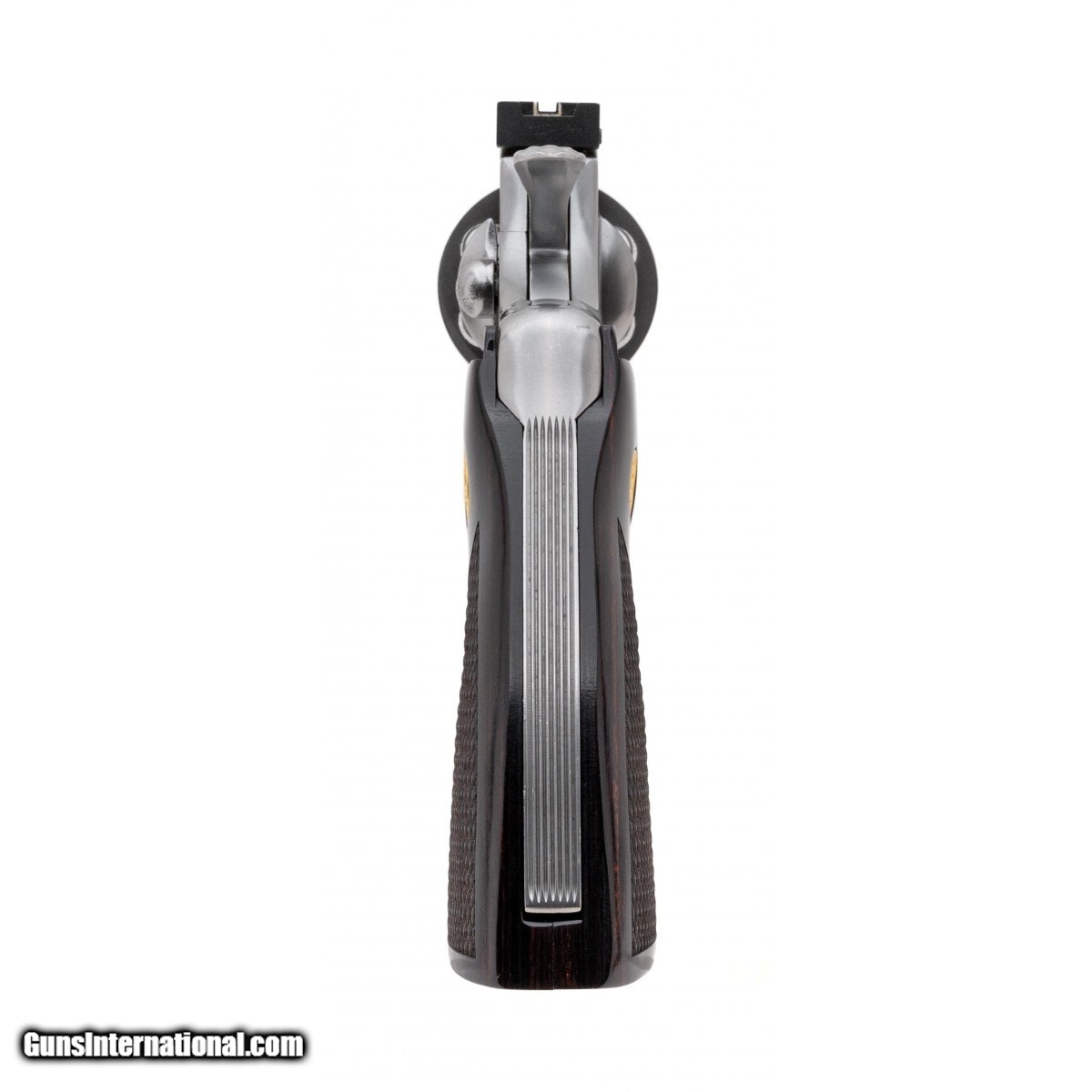 Description: " SN:T40058. Manufactured circa 1985, .357 magnum with a 4"" barrel. Bore is in excellent condition. Stainless steel framed revolver with walnut target grips with colt medallion and adjustable rear sights. Overall condition is Very good. (Consignment) SOLD |