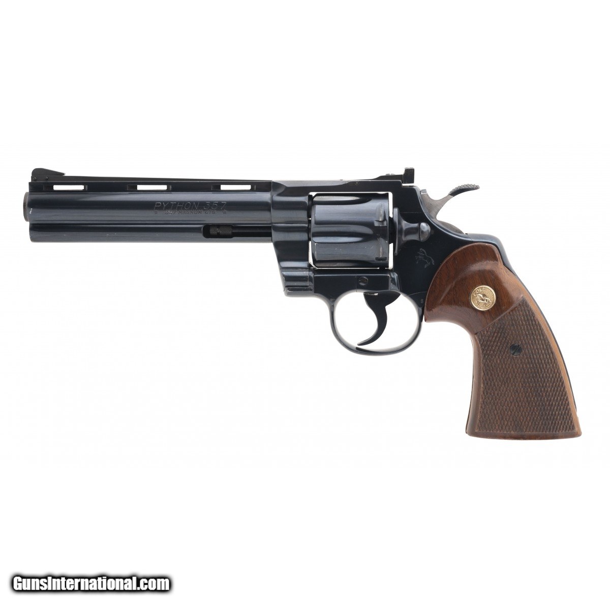 Description: " SN: K34809. Made in 1981, .357 Magnum, 6"" barrel. The bore is excellent. Has 99% of its blue and the grips are in very good condition with small spots of wear on the toe and heel. Overall very good condition. SOLD |