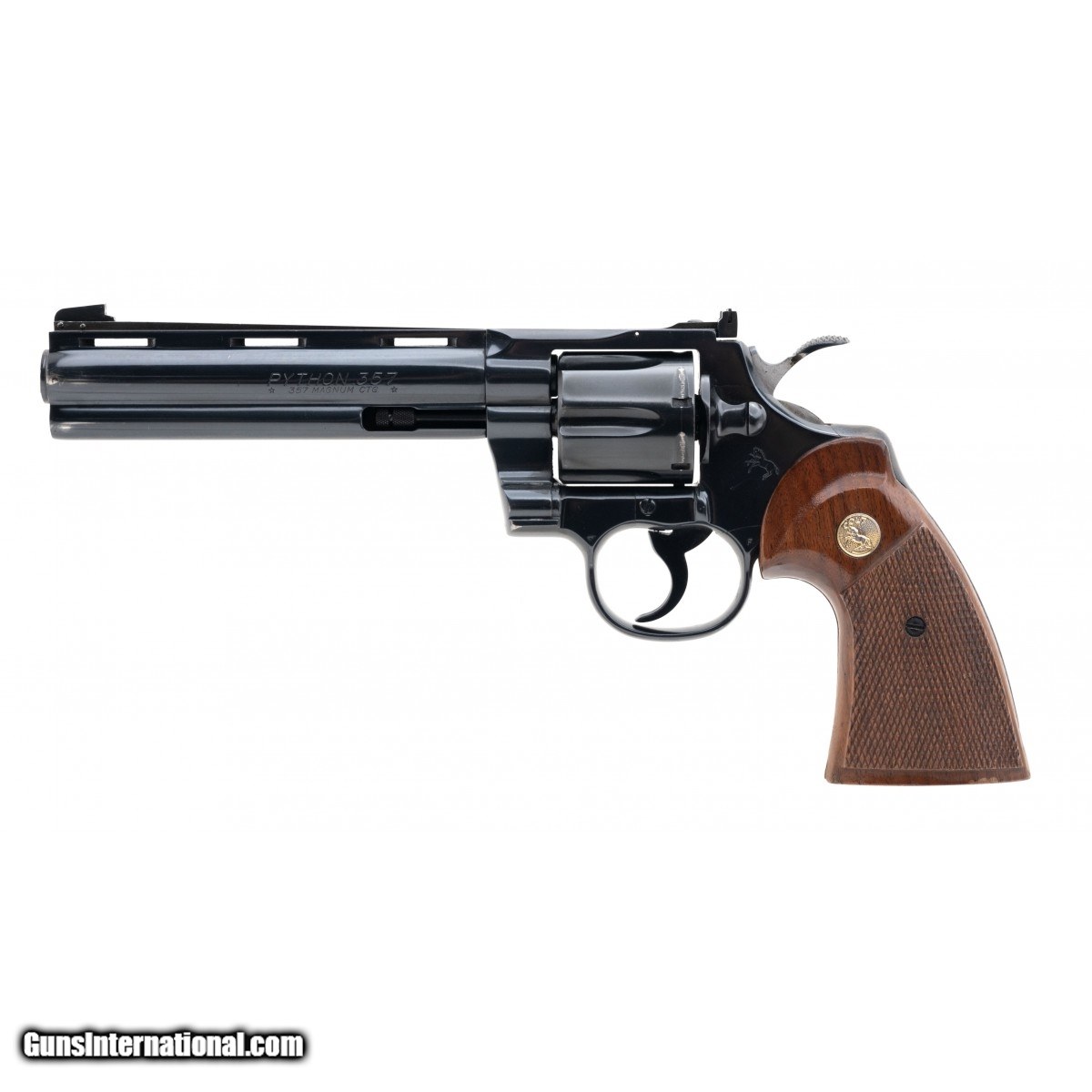 Description: " SN: V91053. Made in 1979, .357 Magnum caliber with a 6"" barrel. Blued Snake gun in very good condition with some muzzle wear. The grips have a small chip out of them. SOLD |