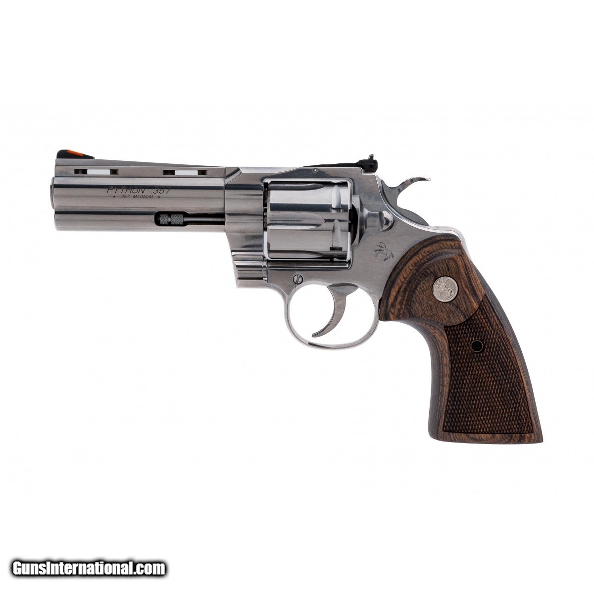 SN:PY005628. Modern production, .357 Magnum 4.25"" Barrel. Bore is excellent. Stainless steel frame revolver with vent rib, adjustable sights, and walnut grips. Overall condition is excellent. Comes in box.