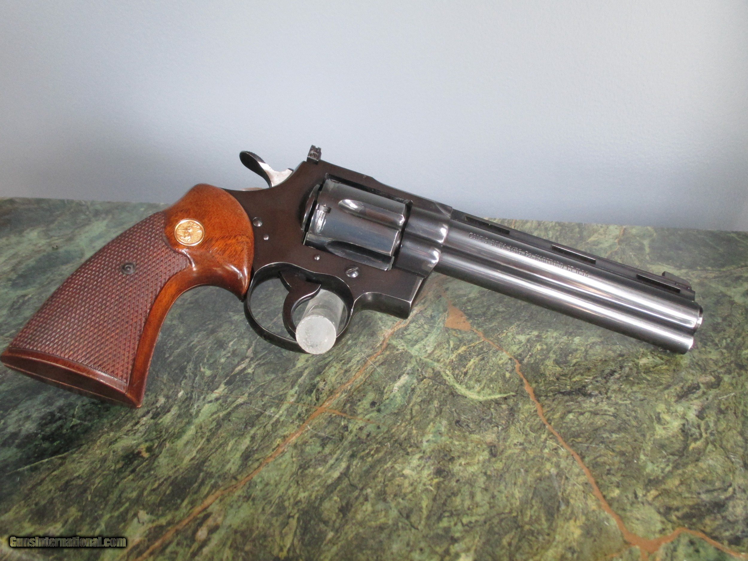 Description: Minty Colt Python 6 inch blue 357 cal second owner absolutely zero finish issues other than a faint cylinder turn mark. Stallion Firearms 810-922-4279. Payment Bank or Credit Union checks held to clear. $3,849.00 $45 to ship to your FFL. No text ! Calls before 7 pm est. always leave a message. SOLD |