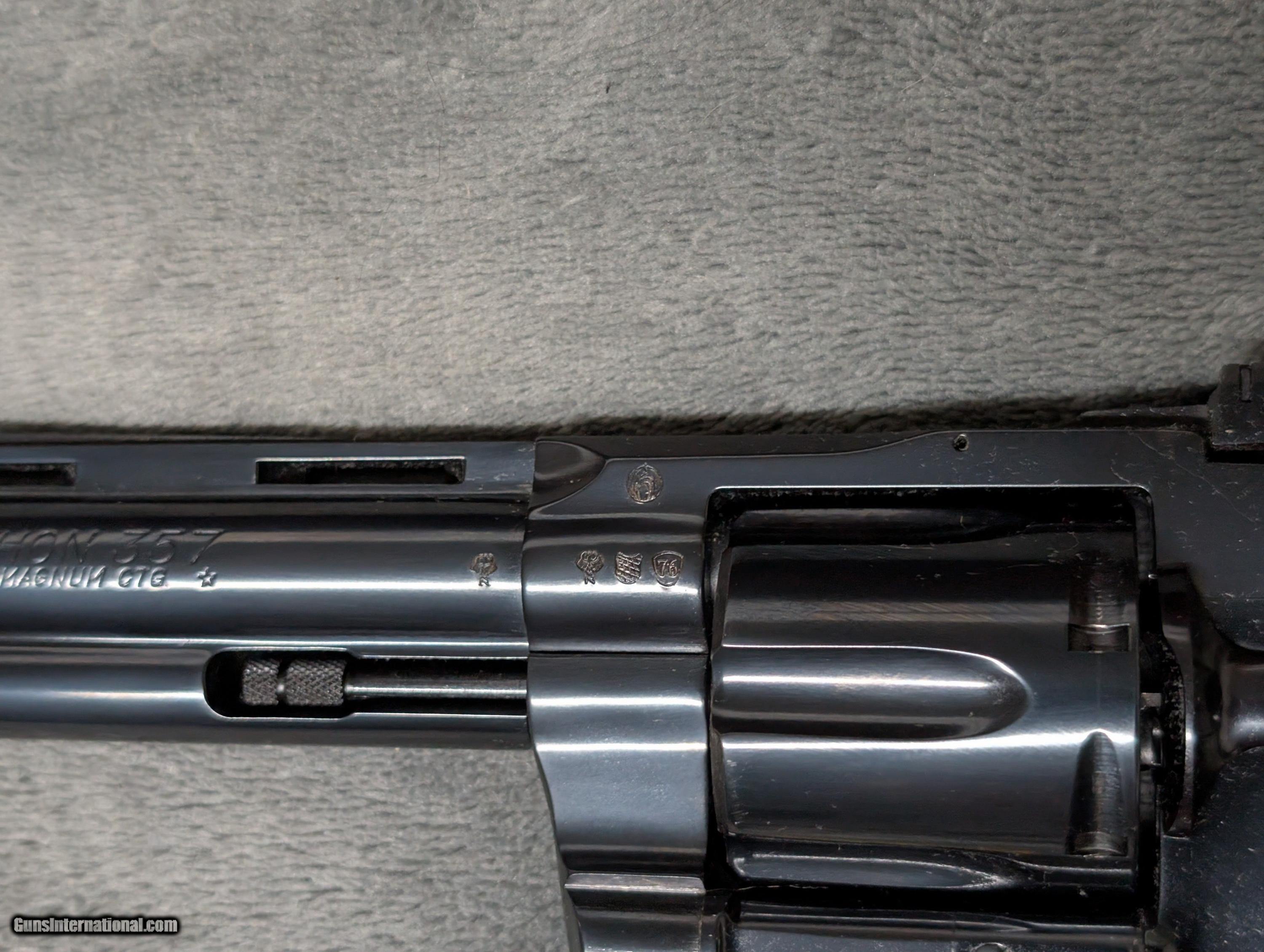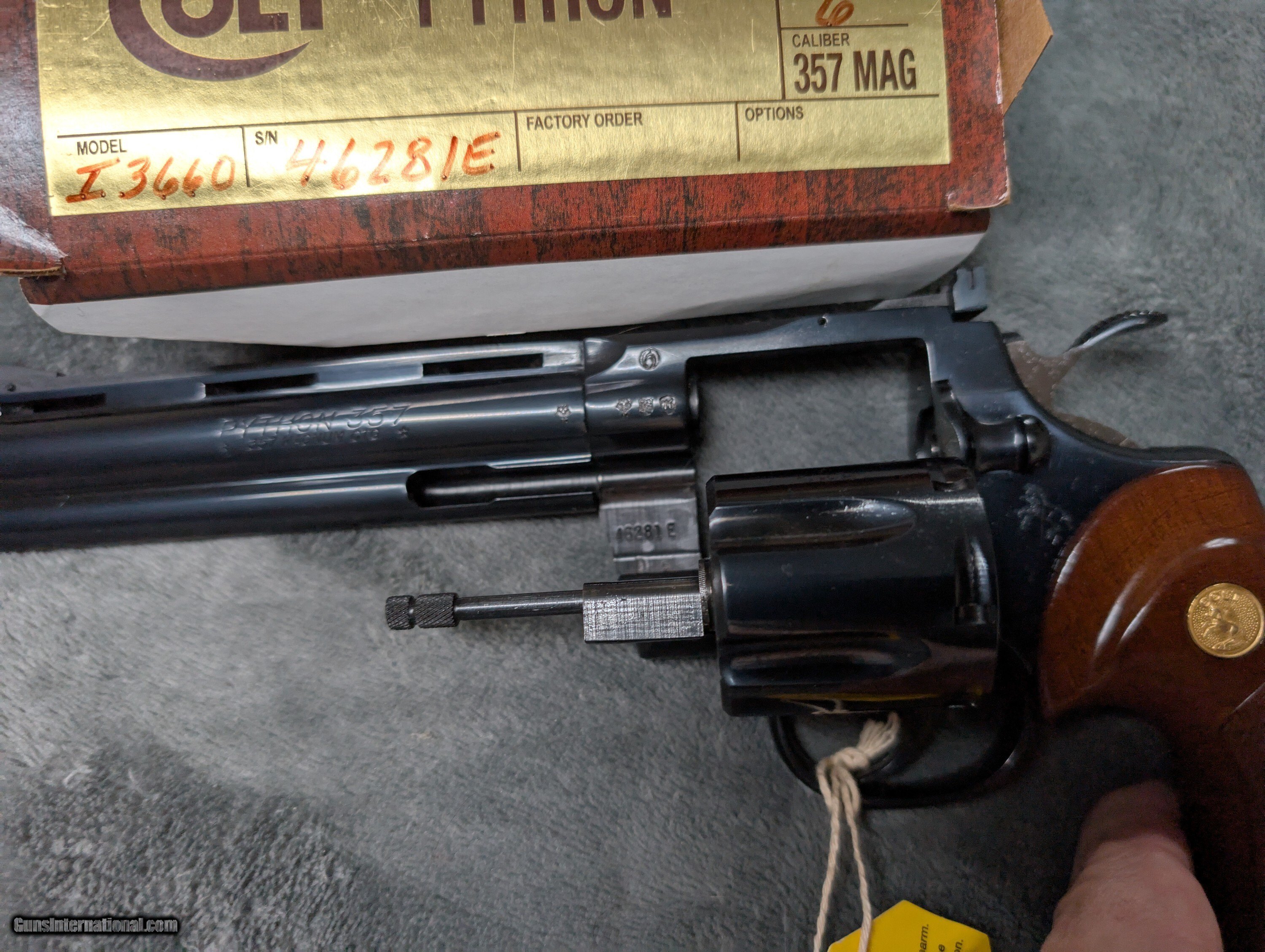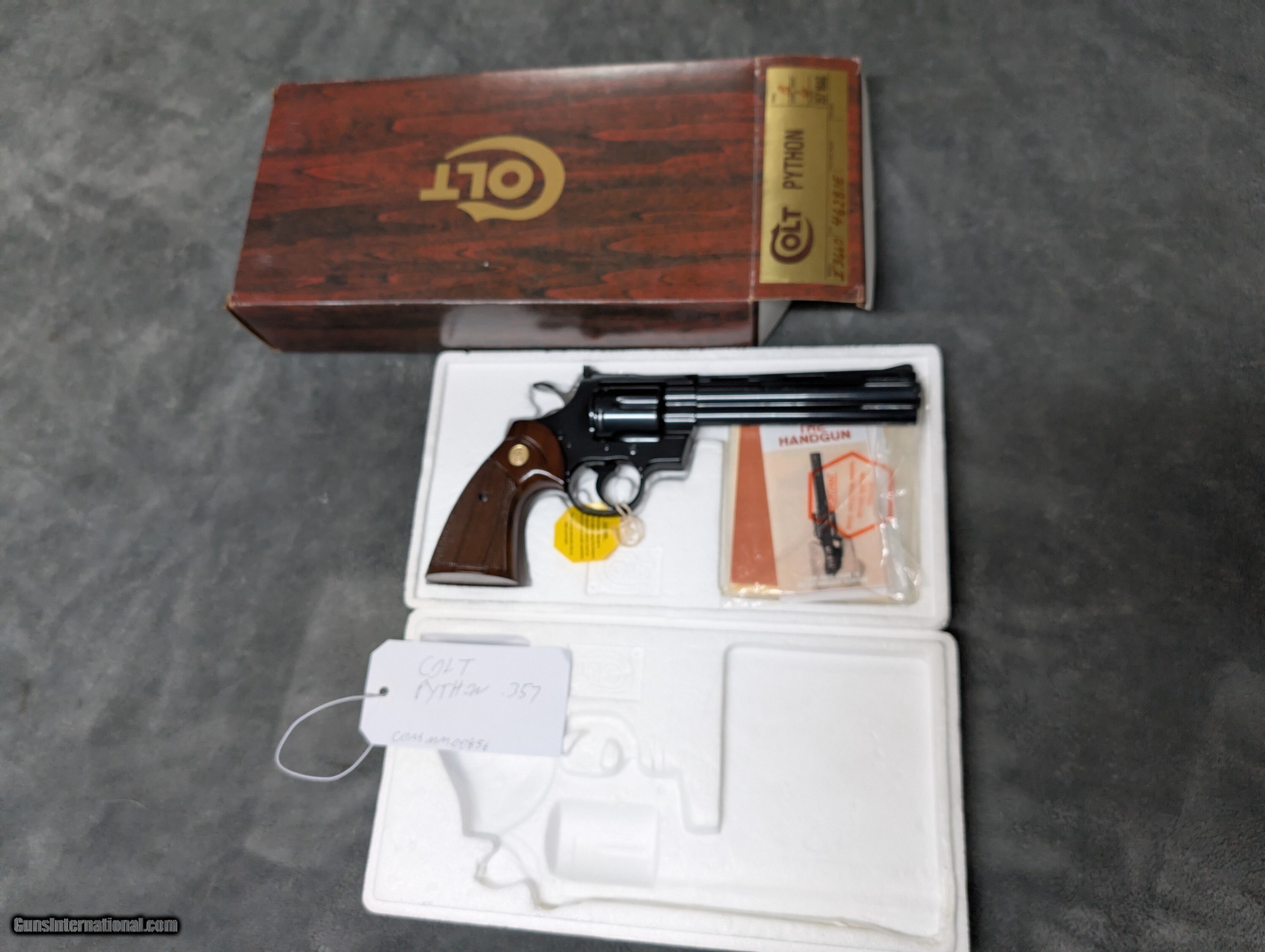 1976 COLT PYTHON 357 MAG WITH 6" BARREL IN ALMOST EXCELLENT / UNFIRED CONDITION, GERMAN PROOFED