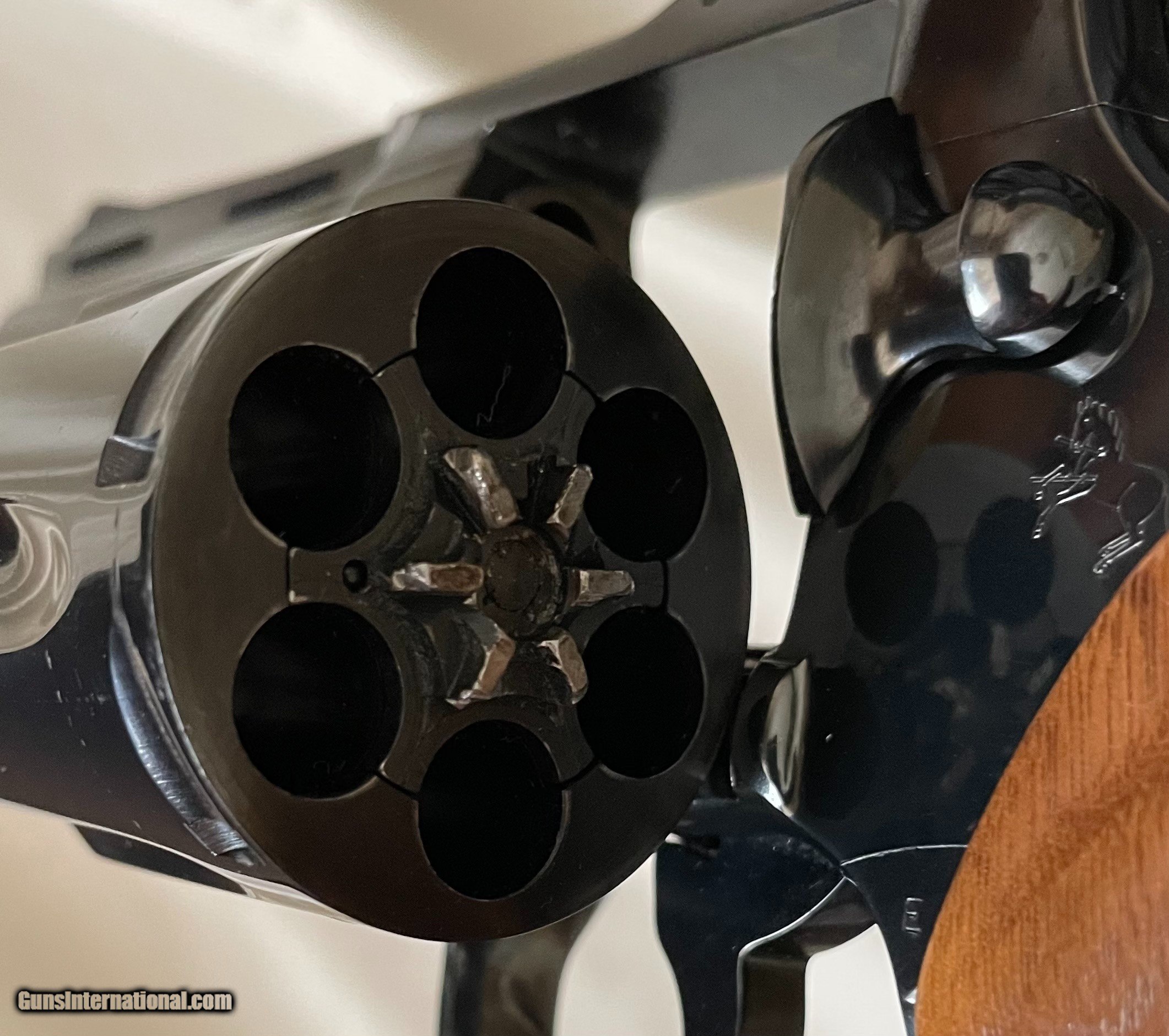 Description: 1979 Colt python with a 4" barrel. Factory python target grips. The revolver has imperfections the finish as pictured but the mechanics are spot on. Perfect timing on every hole and dead tight lockup. Very smooth action. Please review pictures for a more accurate account of condition. No box or documents. I DO SHIP FROM A LOCAL FFL! ABSOLUTELY NO SHIPPING TO CALIFORNIA OR ANY OTHER STATE WITH SIMILAR RESTRICTIONS. PLEASE KNOW YOUR STATE AND LOCAL LAWS BEFORE . We DO NOT ship outside the continental United States. I am new to Guns International but I've been selling for some time on Gun Brokker and have an impeccable reputation and feedback rating. I am "Gun Emporium" on that site. SOLD |
