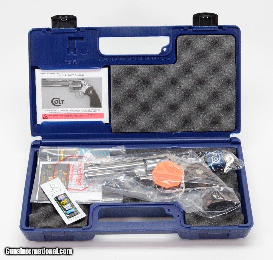 Description: BRAND NEW 2020-2021 Colt Python .357 Mag SP4WTS 4.25 Inch. In Blue Hard Case AVAILABLE FOR PURCHASE AT OUR ON-LINE STORE The 2020-2021 Python features modern stainless steel alloys and a re-designed rear sight. Thirty percent more steel beneath the rear adjustable target sight gives you a stronger revolver and more robust shooting experience. A recessed target crown, user-interchangeable front sight, and Walnut grip with the iconic Colt medallion make this a gun you’ll want to shoot AND show off. The Python is chambered in .357 Magnum and also accommodates 38 Special cartridges. The Serial Number of the revolver is PY212113. The photos in this ad are stock and thus the serial number on it does not reflect the one on the revolver you will be receiving. SPECIFICATIONS