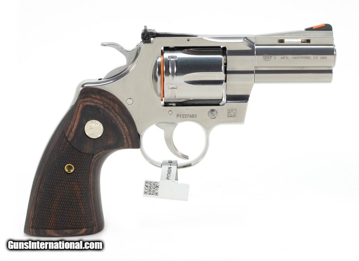 Description: BRAND NEW 2020 Colt Python .357 Mag SP3WTS 3 Inch. In Blue Hard Case. AVAILABLE FOR PURCHASE AT OUR ON-LINE STORE We are proud to offer a selection of the NEW 2020 Colt Python. In Stock! The Python is back! Building on Colt’s Snake Gun legacy, the legendary double-action revolver returns in stainless steel in 3", 4.25” and 6” barrel lengths. The 2020 Python features modern stainless steel alloys and a re-designed rear sight. Thirty percent more steel beneath the rear adjustable target sight gives you a stronger revolver and more robust shooting experience. A recessed target crown, user-interchangeable front sight, and Walnut grip with the iconic Colt medallion make this a gun you’ll want to shoot AND show off! The photos in this ad may be stock and thus the serial number on the firearm may not reflect the one on the revolver you will be receiving. The Serial Number for this revolver is, PY236869
