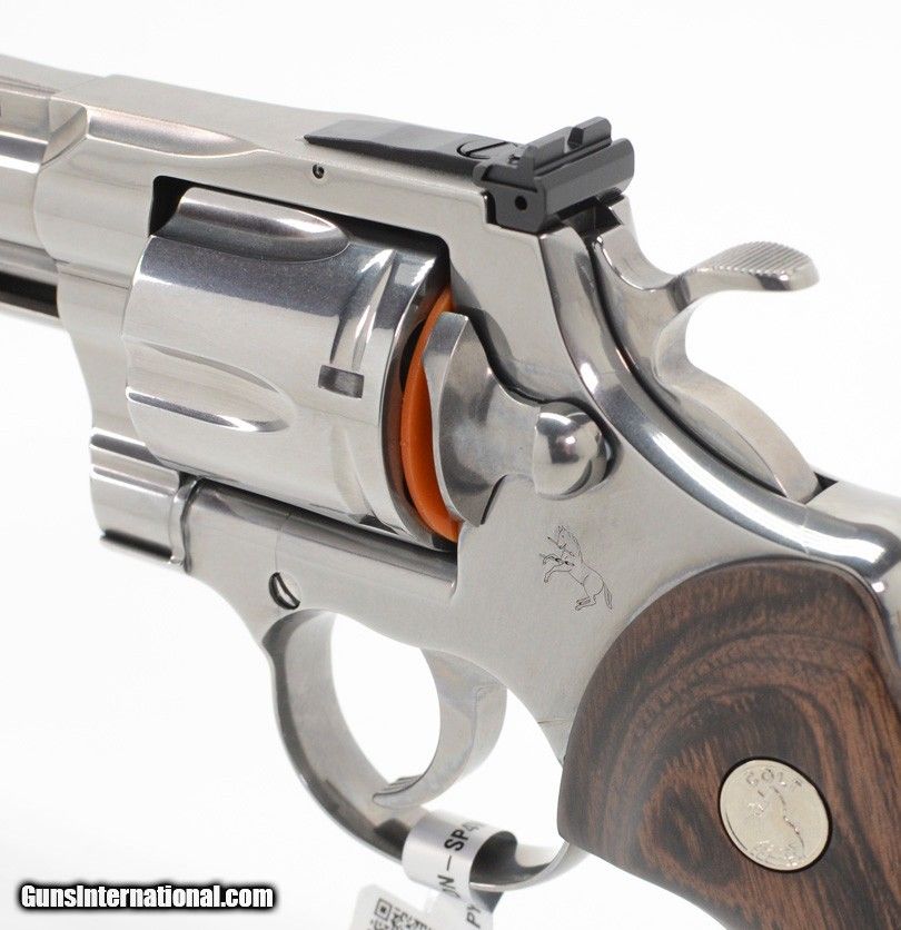 Description: BRAND NEW 2020 Colt Python .357 Mag SP4WTS 4.25 Inch. In Blue Hard Case We are proud to offer a selection of the NEW 2020 Colt Python. In Stock! The Python is back. Building on Colt’s Snake Gun legacy, the legendary double-action revolver returns in stainless steel in 4.25” and 6” barrel lengths. The 2020 Python features modern stainless steel alloys and a re-designed rear sight. Thirty percent more steel beneath the rear adjustable target sight gives you a stronger revolver and more robust shooting experience. A recessed target crown, user-interchangeable front sight, and Walnut grip with the iconic Colt medallion make this a gun you’ll want to shoot AND show off. The Python is chambered in .357 Magnum and also accommodates 38 Special cartridges. The Serial Number of the revolver is PY012423. The photos in this ad are stock and thus the serial number on it does not reflect the one on the revolver you will be receiving. SPECIFICATIONS