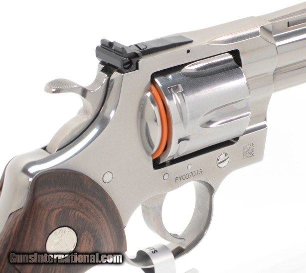 Description: BRAND NEW 2020 Colt Python .357 Mag SP4WTS 4.25 Inch. In Blue Hard Case We are proud to offer a selection of the NEW 2020 Colt Python. In Stock! The Python is back. Building on Colt’s Snake Gun legacy, the legendary double-action revolver returns in stainless steel in 4.25” and 6” barrel lengths. The 2020 Python features modern stainless steel alloys and a re-designed rear sight. Thirty percent more steel beneath the rear adjustable target sight gives you a stronger revolver and more robust shooting experience. A recessed target crown, user-interchangeable front sight, and Walnut grip with the iconic Colt medallion make this a gun you’ll want to shoot AND show off. The Python is chambered in .357 Magnum and also accommodates 38 Special cartridges. The Serial Number of the revolver is PY018101. The photos in this ad are stock and thus the serial number on it does not reflect the one on the revolver you will be receiving. SPECIFICATIONS