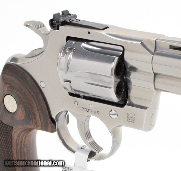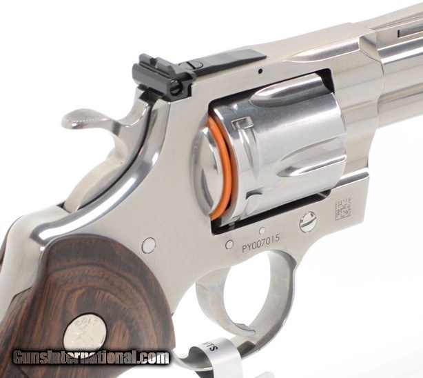 Description: BRAND NEW 2020 Colt Python .357 Mag SP4WTS 4.25 Inch. In Blue Hard Case AVAILABLE FOR PURCHASE AT OUR ON-LINE STORE The 2020 Python features modern stainless steel alloys and a re-designed rear sight. Thirty percent more steel beneath the rear adjustable target sight gives you a stronger revolver and more robust shooting experience. A recessed target crown, user-interchangeable front sight, and Walnut grip with the iconic Colt medallion make this a gun you’ll want to shoot AND show off. The Python is chambered in .357 Magnum and also accommodates 38 Special cartridges. The Serial Number of the revolver is PY246630. The photos in this ad are stock and thus the serial number on it does not reflect the one on the revolver you will be receiving. SPECIFICATIONS