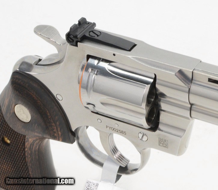 Description: BRAND NEW 2020 Colt Python .357 Mag SP6WTS 6 Inch. In Blue Hard Case AVAILABLE FOR PURCHASE AT OUR ON-LINE STORE We are proud to offer a selection of the NEW 2020 Colt Python. In Stock! The Python is back! Building on Colt’s Snake Gun legacy, the legendary double-action revolver returns in stainless steel in 4.25” and 6” barrel lengths. The 2020 Python features modern stainless steel alloys and a re-designed rear sight. Thirty percent more steel beneath the rear adjustable target sight gives you a stronger revolver and more robust shooting experience. A recessed target crown, user-interchangeable front sight, and Walnut grip with the iconic Colt medallion make this a gun you’ll want to shoot AND show off! The Serial Number of the revolver is PY021831. The photos in this ad are stock and thus the serial number on it does not reflect the one on the revolver you will be receiving. SPECIFICATIONS