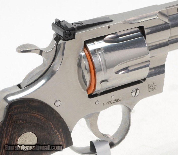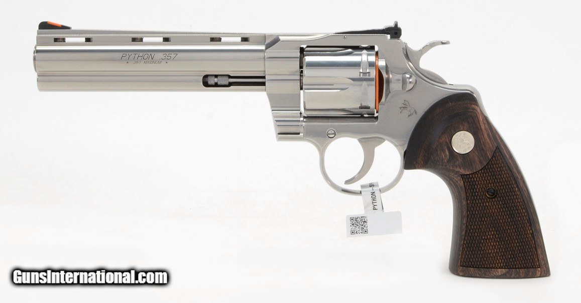 Description: BRAND NEW 2020 Colt Python .357 Mag SP6WTS 6 Inch. In Blue Hard Case AVAILABLE FOR PURCHASE AT OUR ON-LINE STORE We are proud to offer a selection of the NEW 2020 Colt Python. In Stock! The Python is back! Building on Colt’s Snake Gun legacy, the legendary double-action revolver returns in stainless steel in 4.25” and 6” barrel lengths. The 2020 Python features modern stainless steel alloys and a re-designed rear sight. Thirty percent more steel beneath the rear adjustable target sight gives you a stronger revolver and more robust shooting experience. A recessed target crown, user-interchangeable front sight, and Walnut grip with the iconic Colt medallion make this a gun you’ll want to shoot AND show off! The Serial Number of the revolver is PY021895. The photos in this ad are stock and thus the serial number on it does not reflect the one on the revolver you will be receiving. SPECIFICATIONS