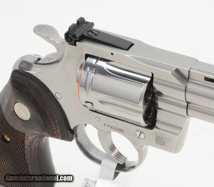 Description: BRAND NEW 2020 Colt Python .357 Mag SP6WTS 6 Inch. In Blue Hard Case AVAILABLE FOR PURCHASE AT OUR ON-LINE STORE We are proud to offer a selection of the NEW 2020 Colt Python. In Stock! The Python is back! Building on Colt’s Snake Gun legacy, the legendary double-action revolver returns in stainless steel in 4.25” and 6” barrel lengths. The 2020 Python features modern stainless steel alloys and a re-designed rear sight. Thirty percent more steel beneath the rear adjustable target sight gives you a stronger revolver and more robust shooting experience. A recessed target crown, user-interchangeable front sight, and Walnut grip with the iconic Colt medallion make this a gun you’ll want to shoot AND show off! The Serial Number of the revolver is PY014900. The photos in this ad are stock and thus the serial number on it does not reflect the one on the revolver you will be receiving. SPECIFICATIONS
