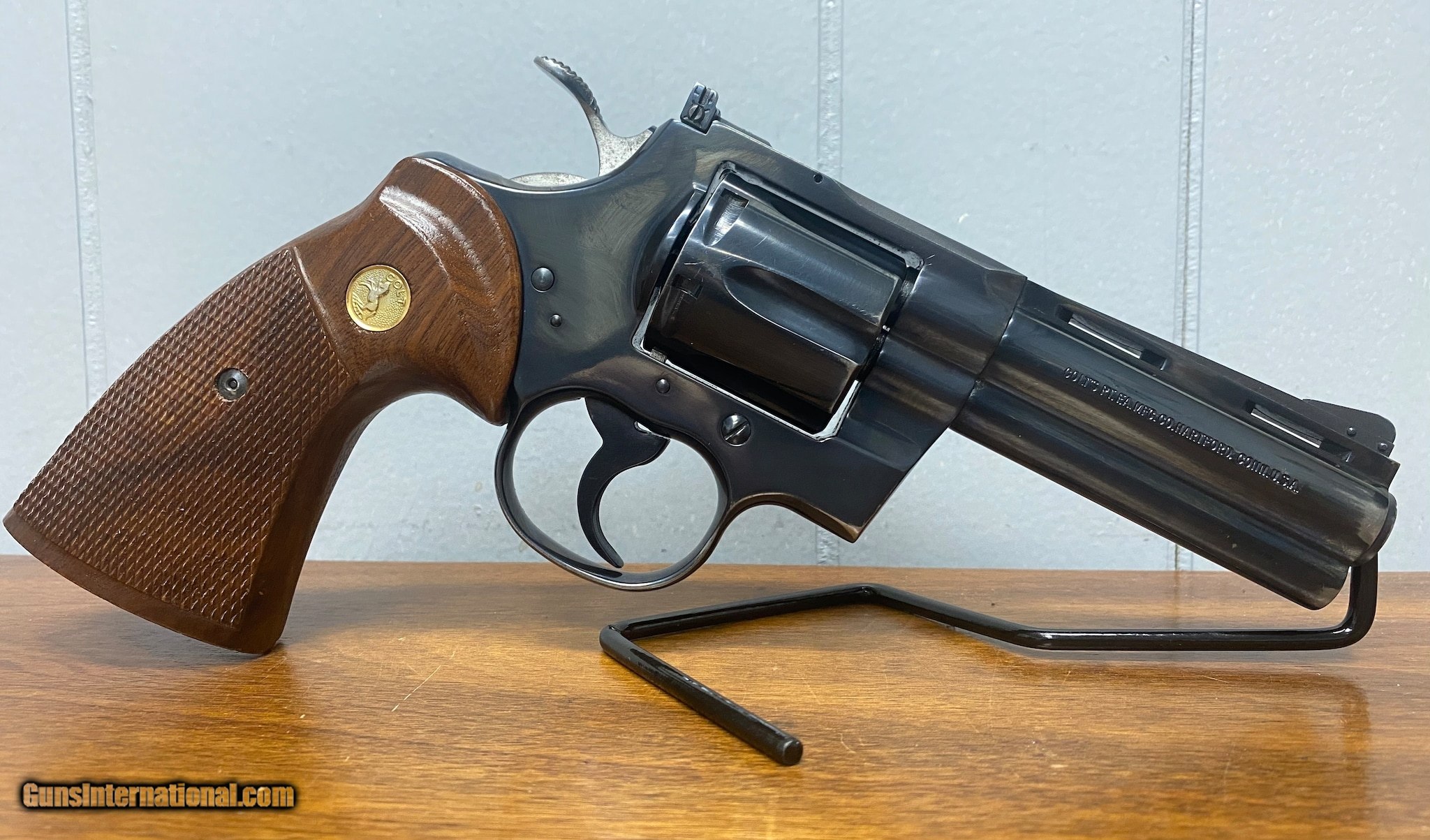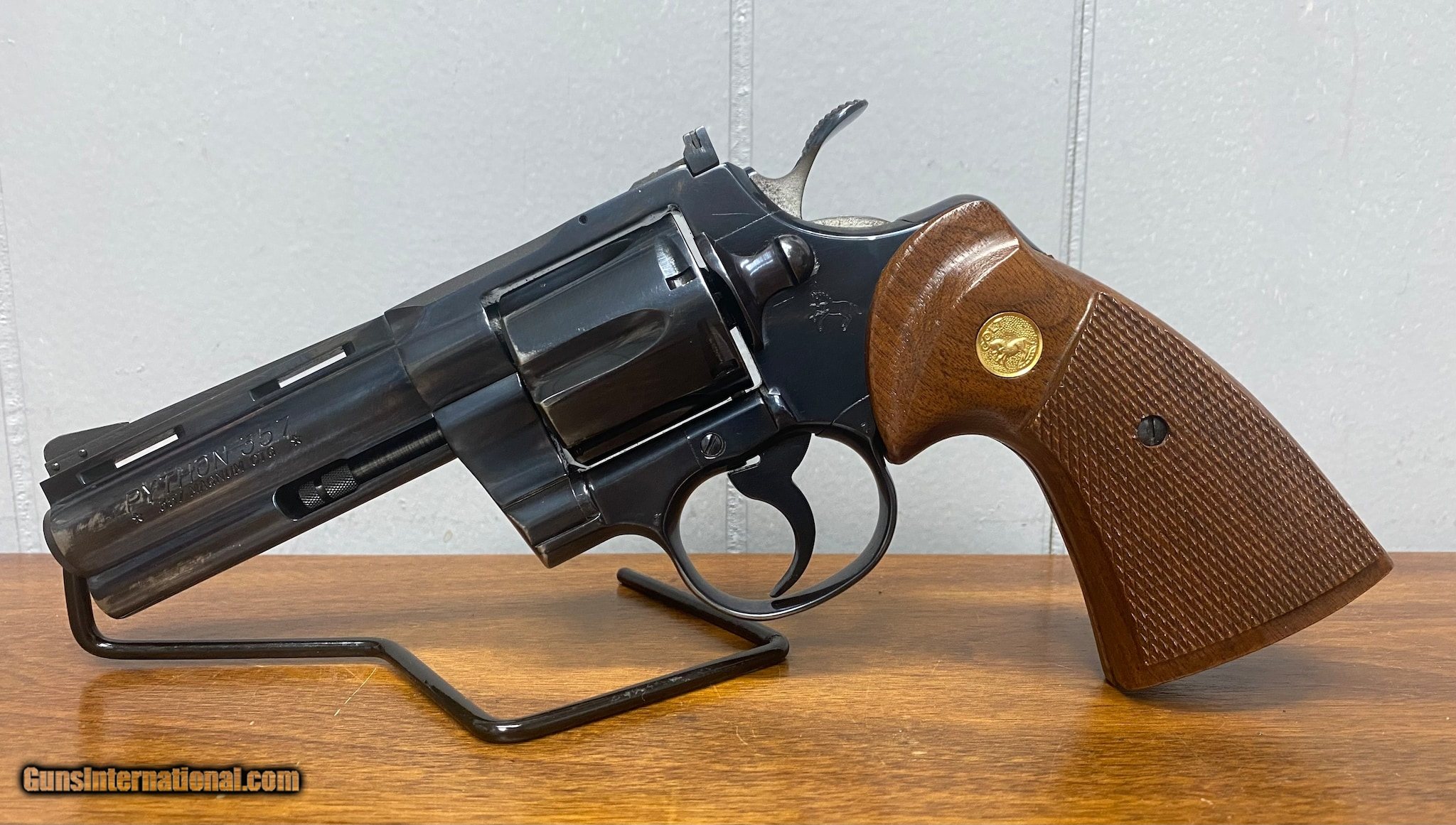 Description: Guns Listing ID: 1212231 Original 1975 Colt Python chambered in .357 Mag, with a 4” barrel and blued finish. SOLD Manufacturer: COLT Model: 1975 Python Caliber Info: .357 MAG Condition: Used - Non-Certified Barrels: 4 BARREL Finish: BLUED |